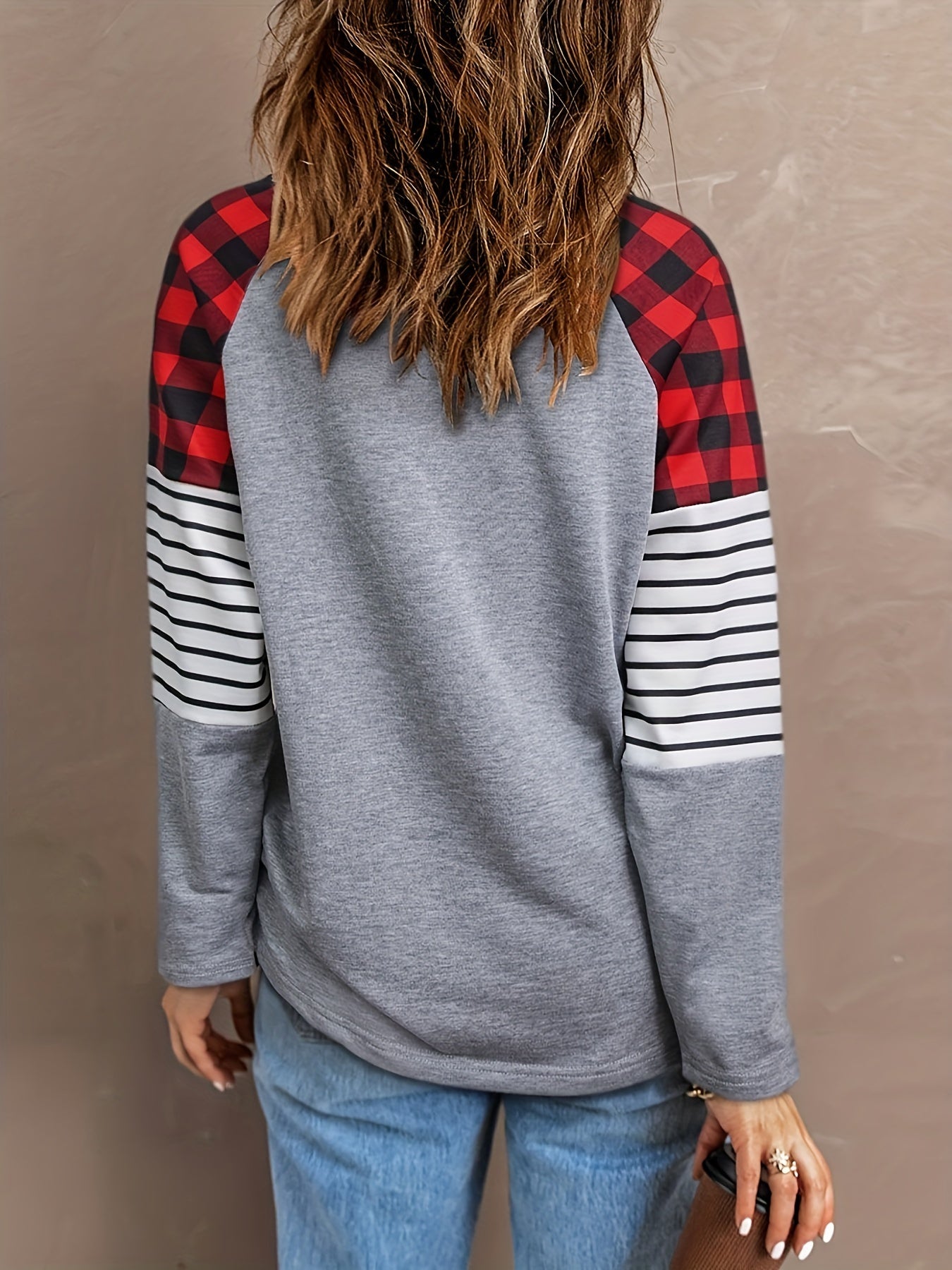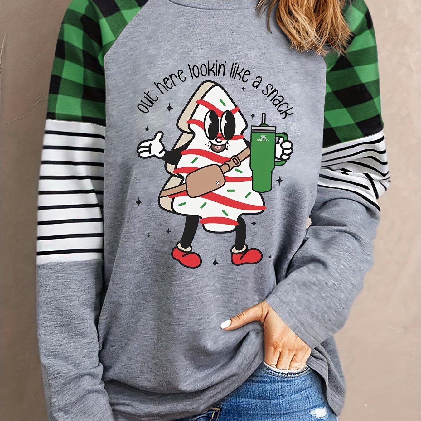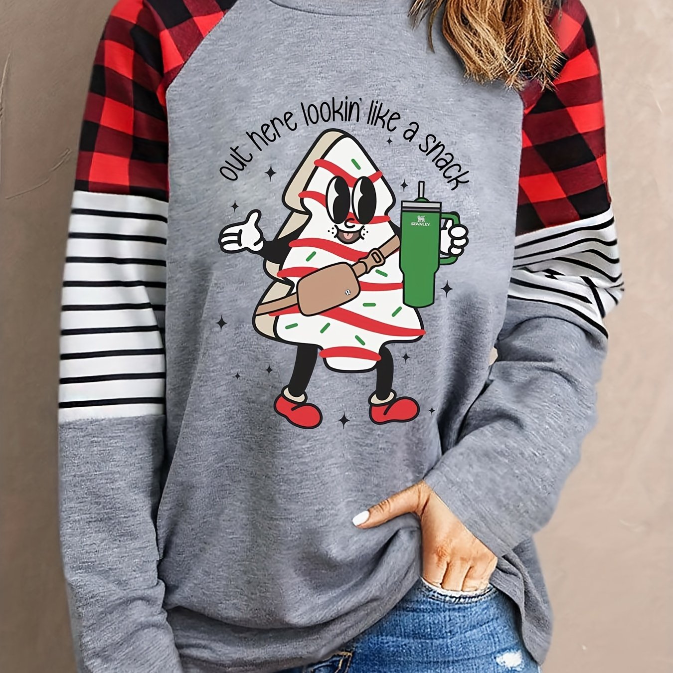 Festive Vibes: Christmas Graphic Print Crew Neck T-Shirt, Your Perfect Spring-Fall Women's Casual Long Sleeve Top