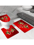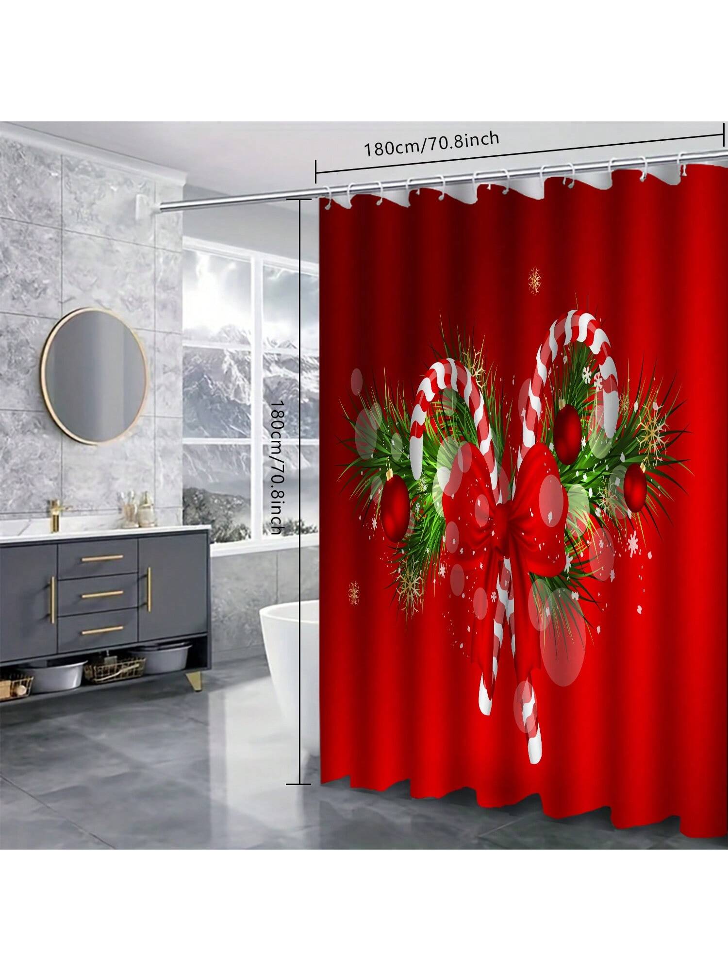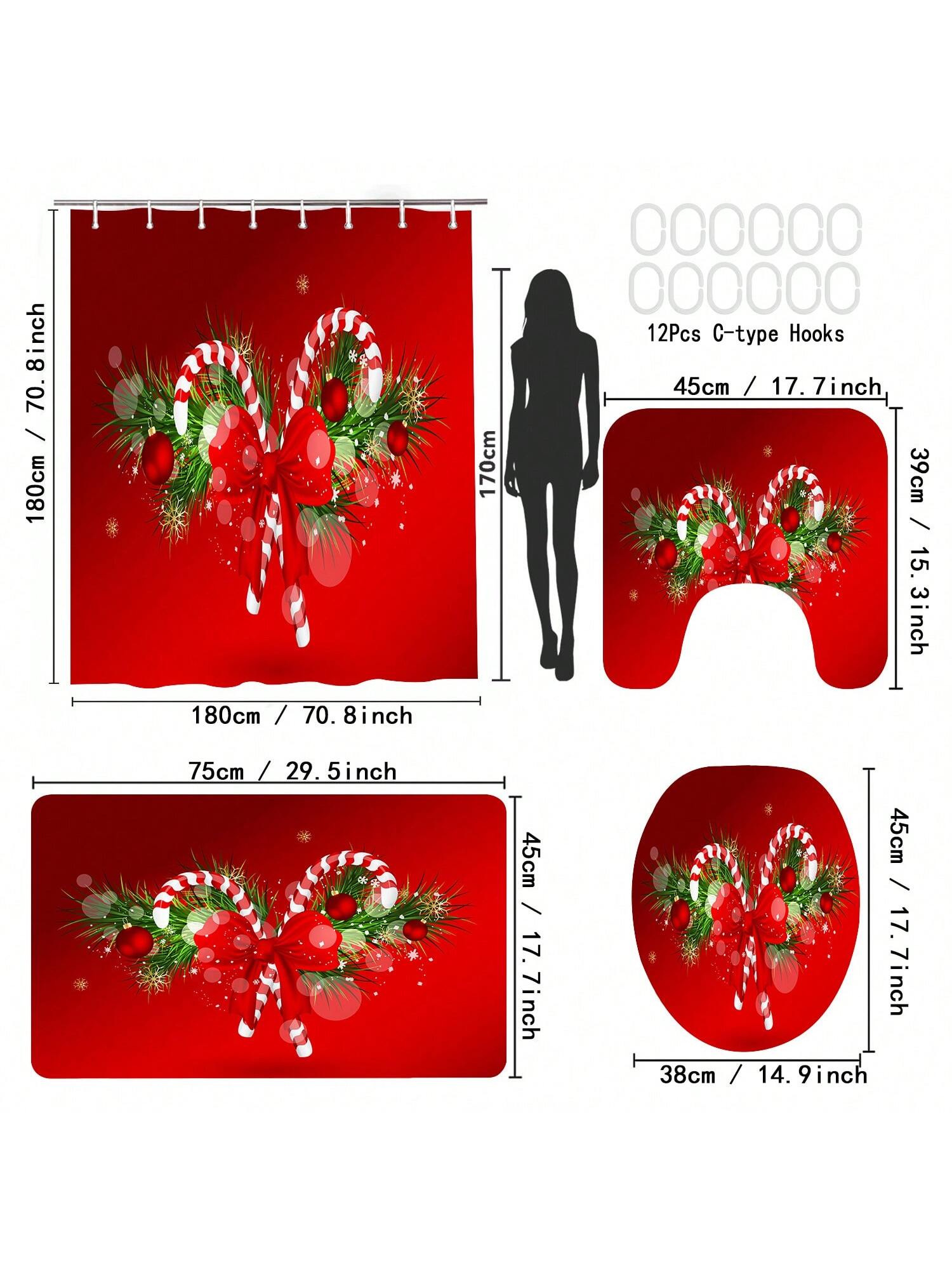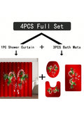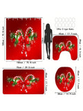 Festive Winter Wonderland: 4-Piece Christmas Shower Curtain Set with Snowman, Tree & Free Hooks