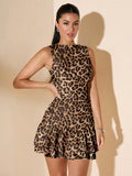 Fierce Yet Fabulous: Leopard Print Sleeveless Mini Dress with Ruched Hem