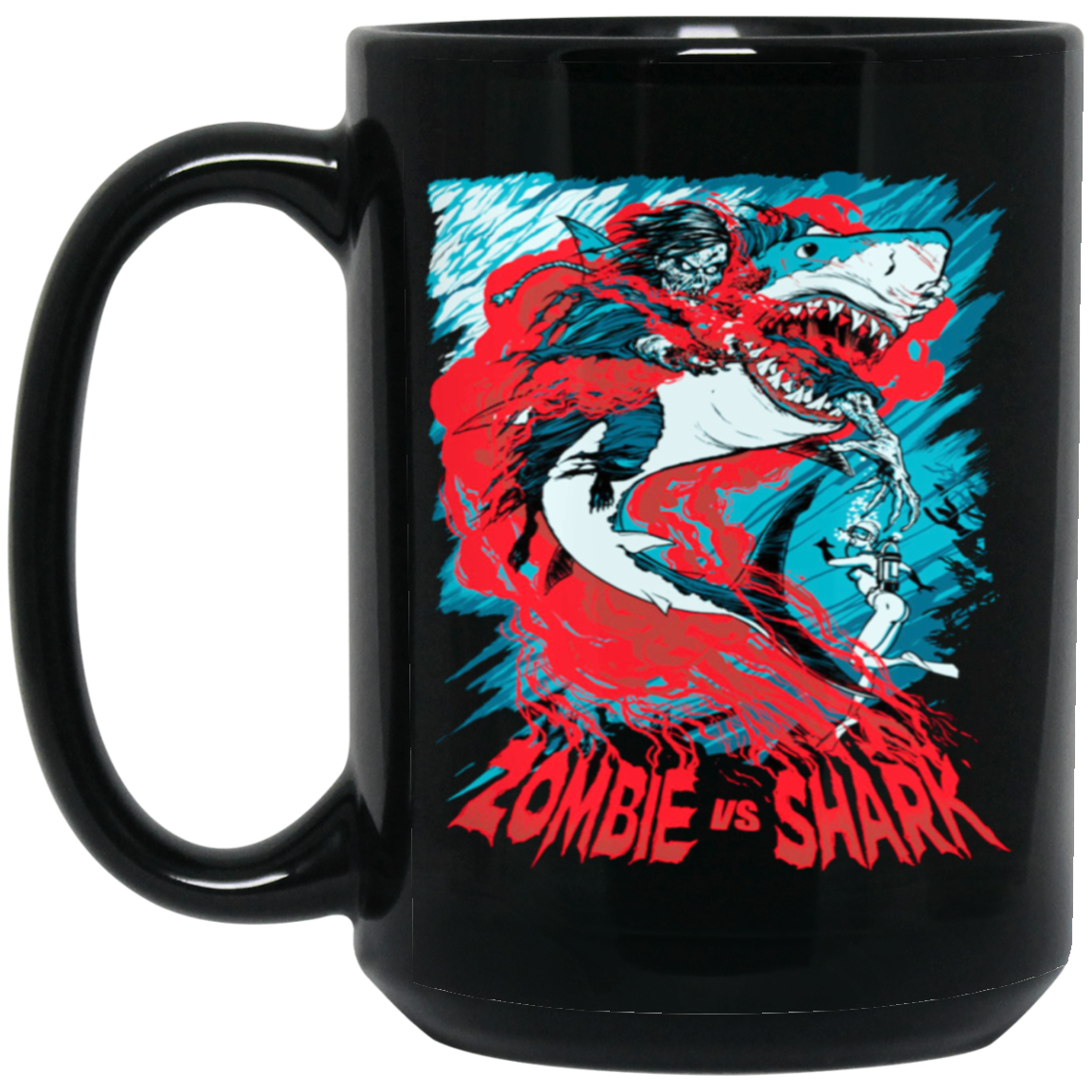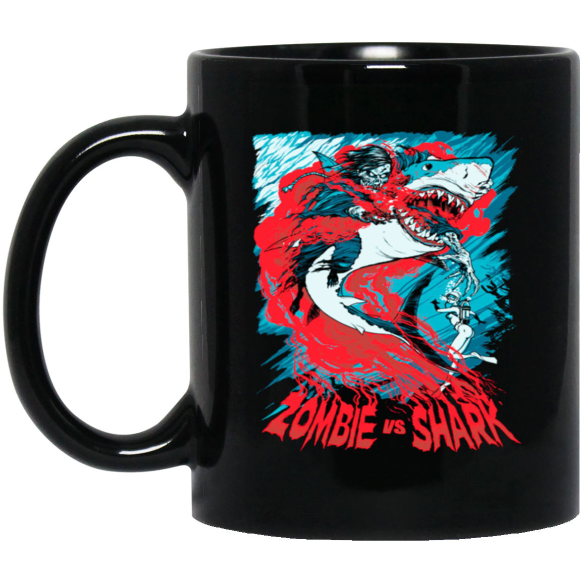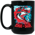 Fight Shark Vs Zombie, Zombie Fight Shark, Horror Gift, Scare Zombie Black Mug