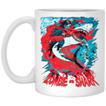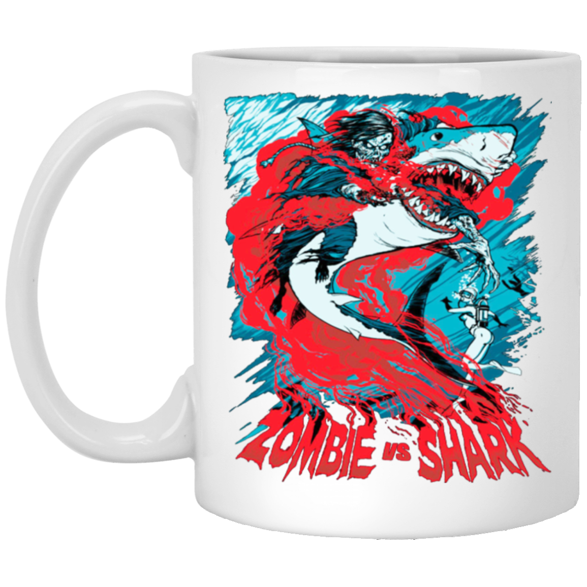 Fight Shark Vs Zombie, Zombie Fight Shark, Horror Gift, Scare Zombie White Mug