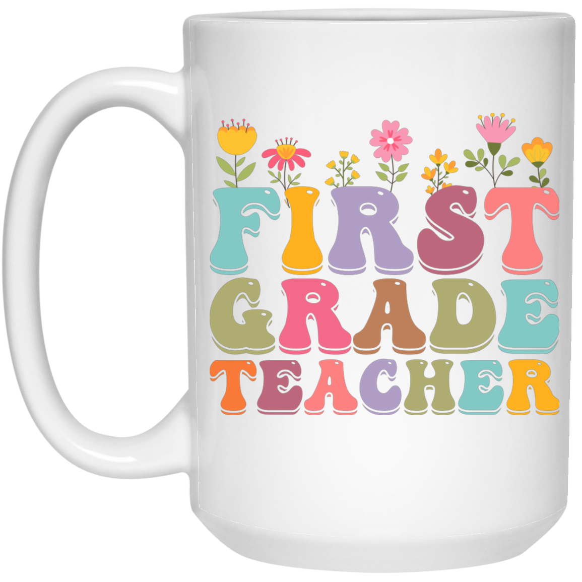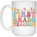 First Grade Teacher, Teacher, Groovy Style, Flower, Nursery Design White Mug
