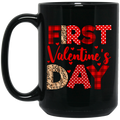 First Valentine's Day, Cute Valentine, Heart Pattern Black Mug