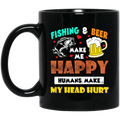 Fishing And Beer Make Me Happy, Humans Make My Head Hurt Black Mug