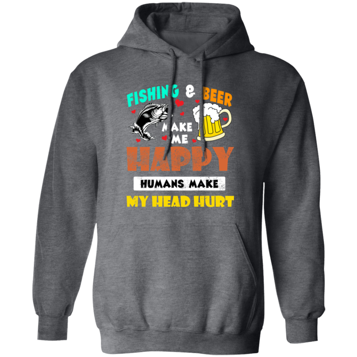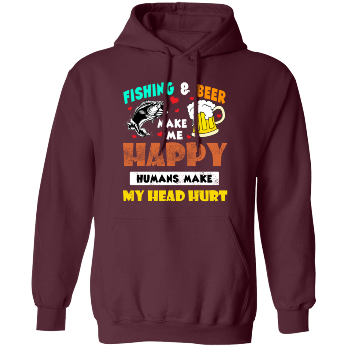 Fishing And Beer Make Me Happy, Humans Make My Head Hurt Pullover Hoodie