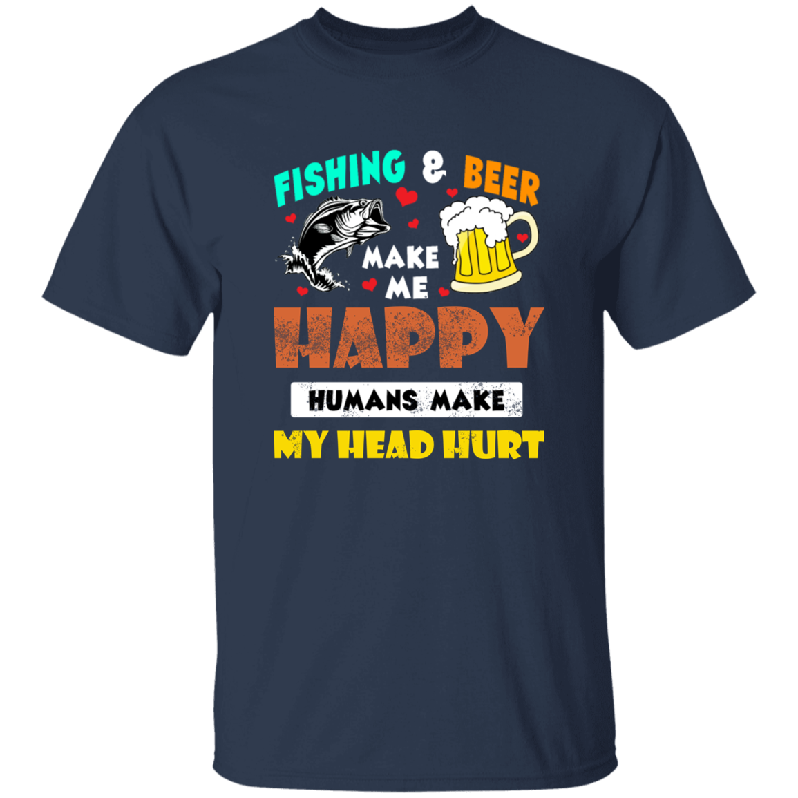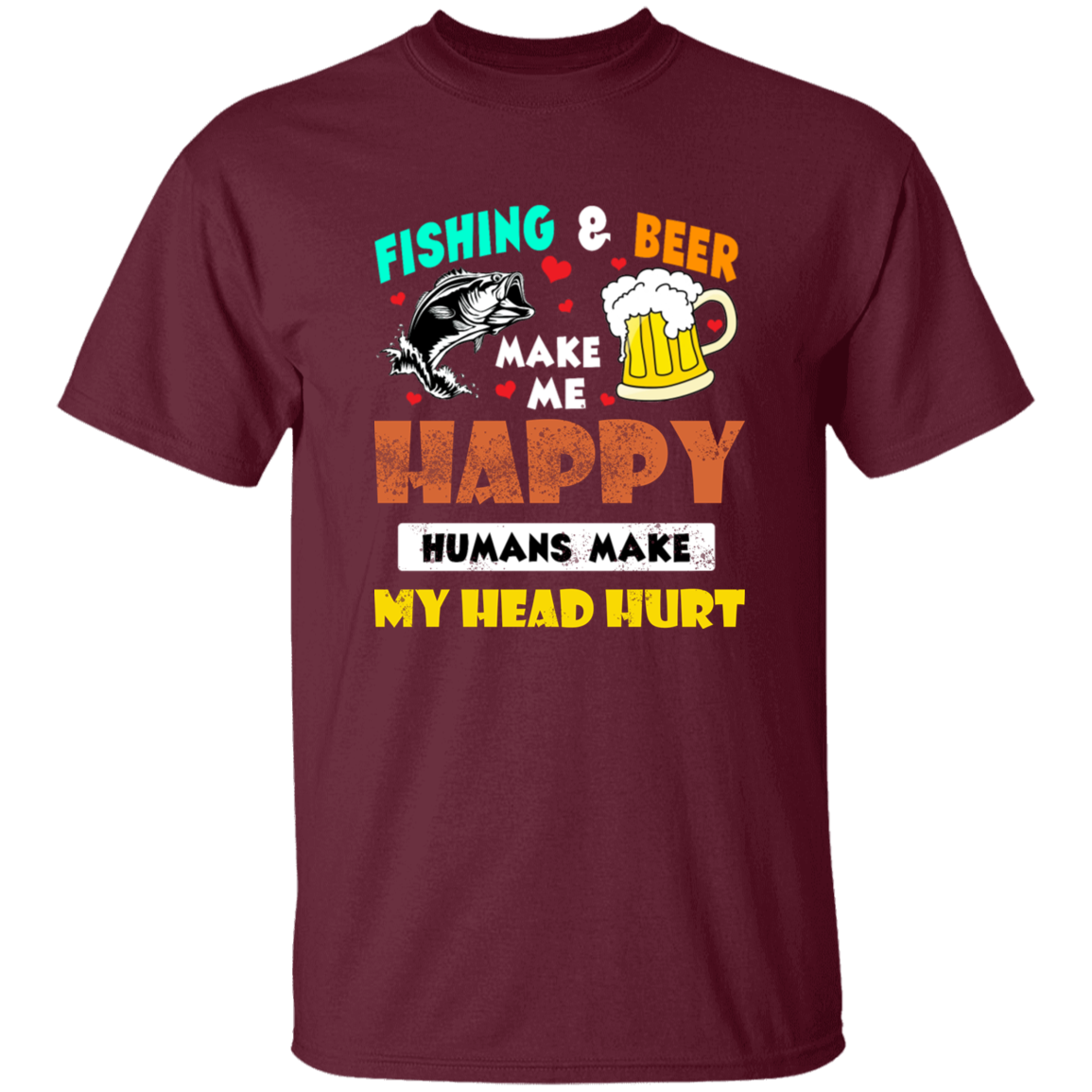 Fishing And Beer Make Me Happy, Humans Make My Head Hurt Unisex T-Shirt