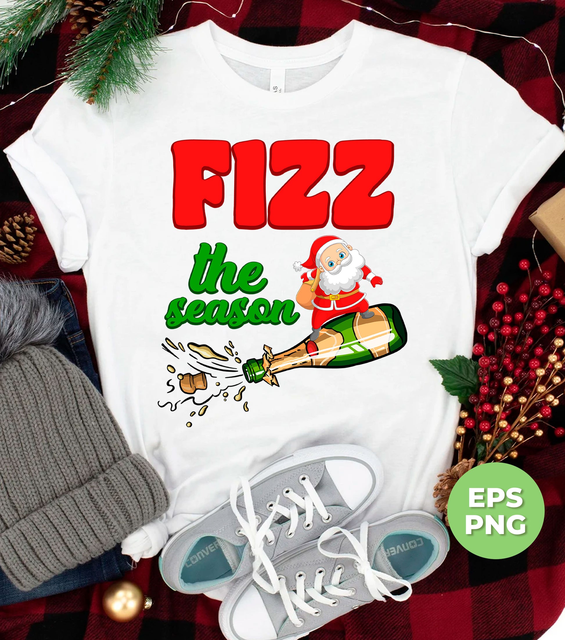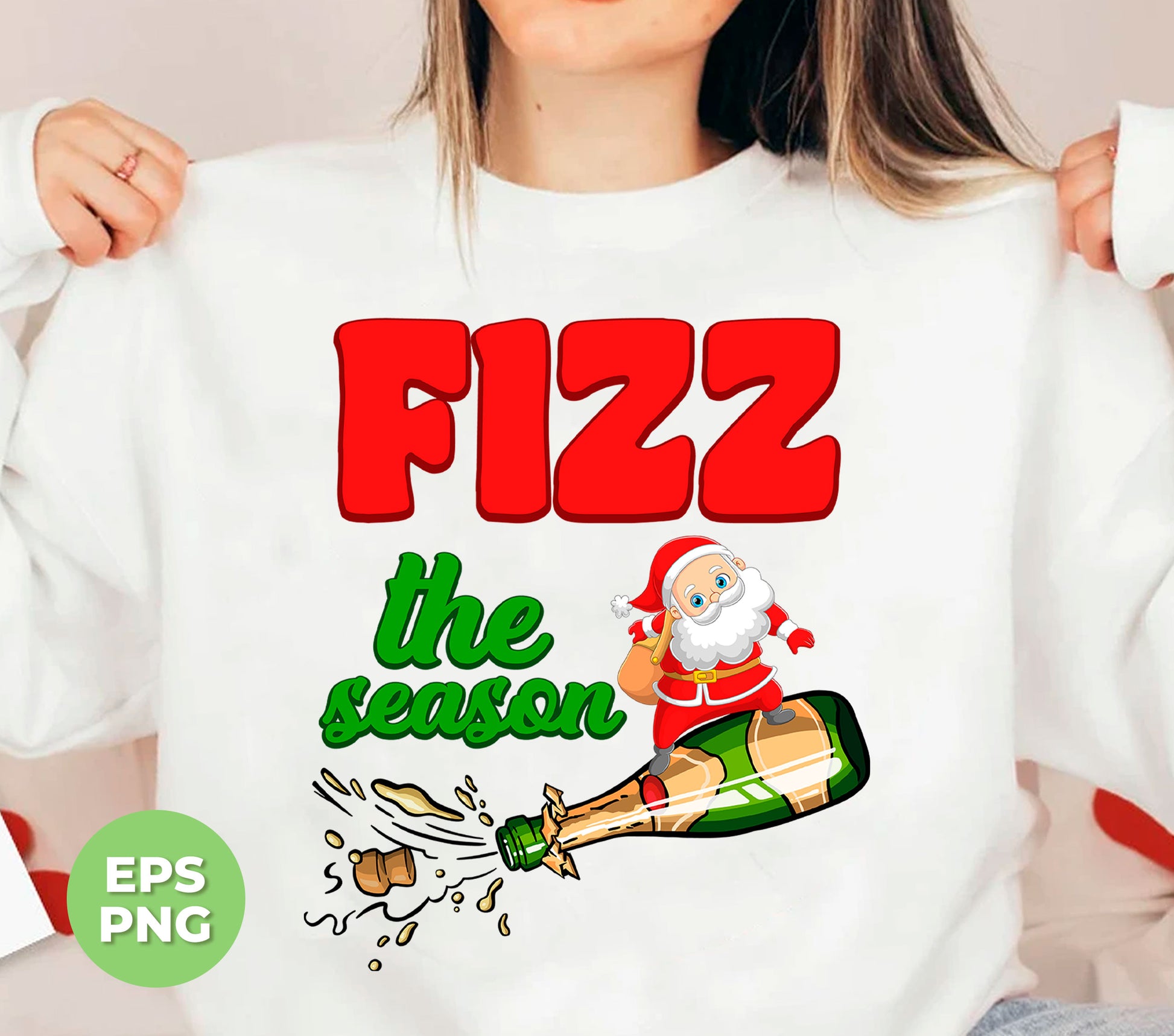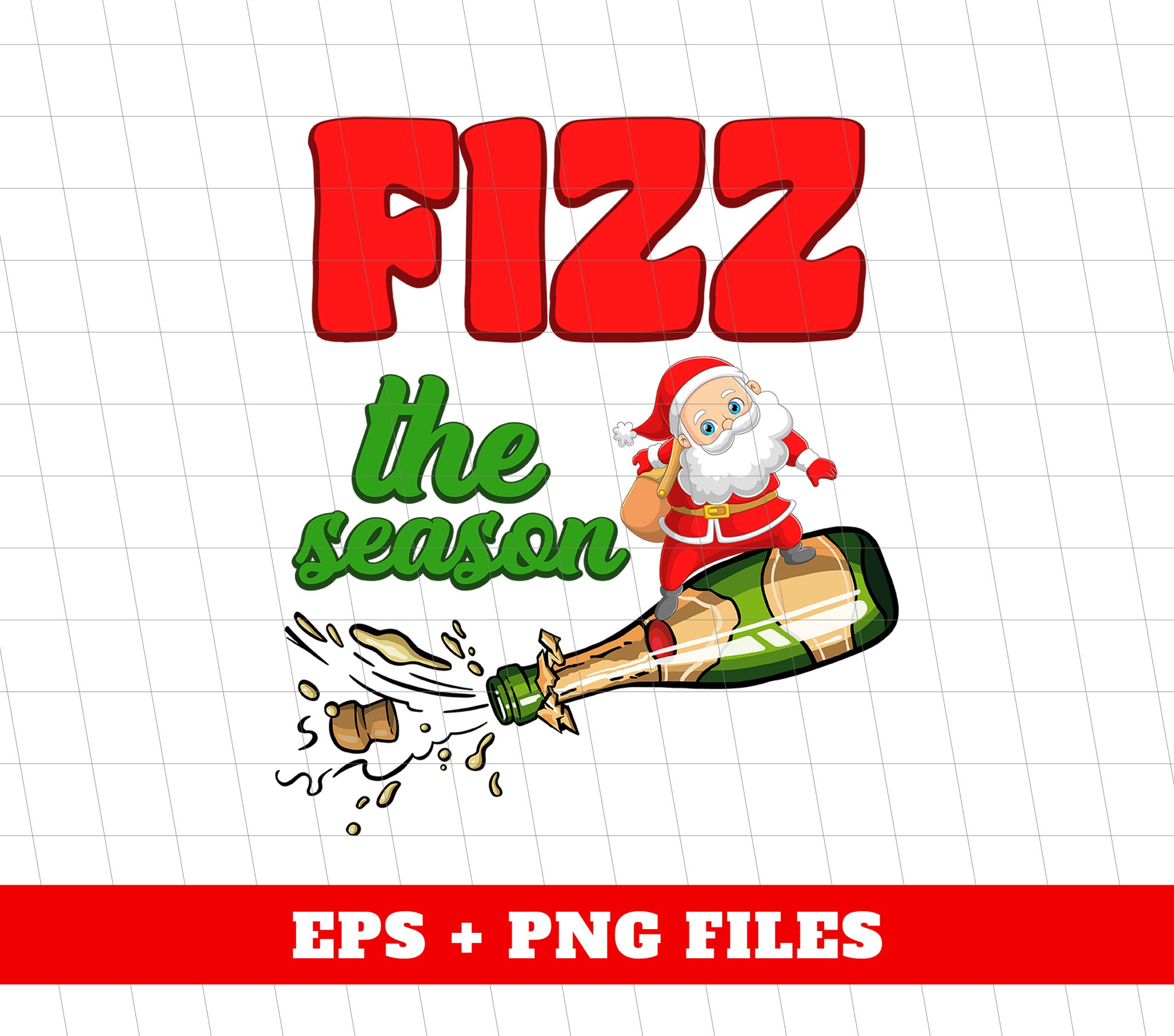 Fizz The Season, Santa Skiing By Champagne Bottle, Trendy Christmas, Png Sublimation