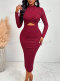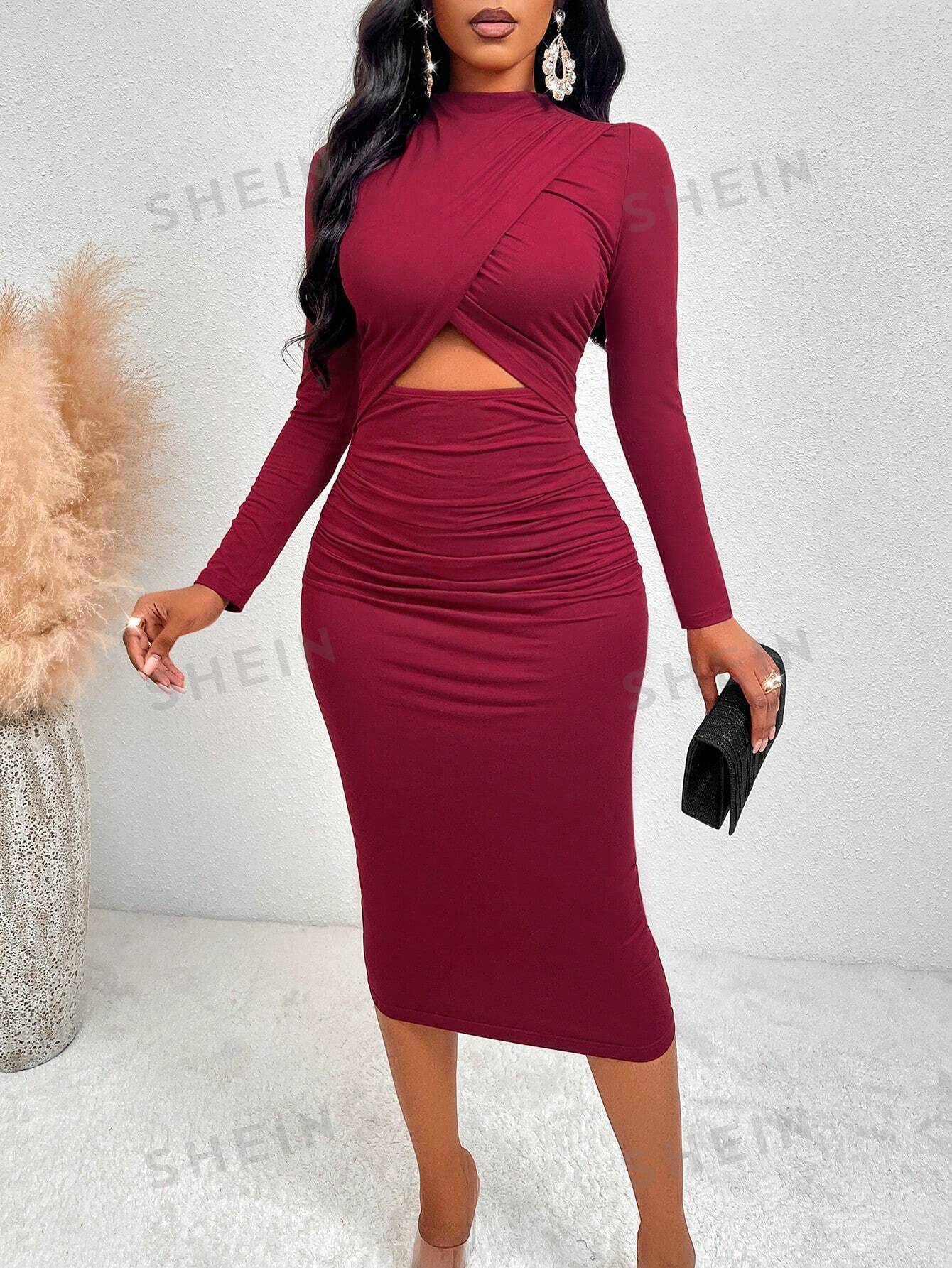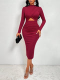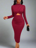 Flaunt Your Figure in Mock Neck Cut-Out Ruched Bodycon Dress