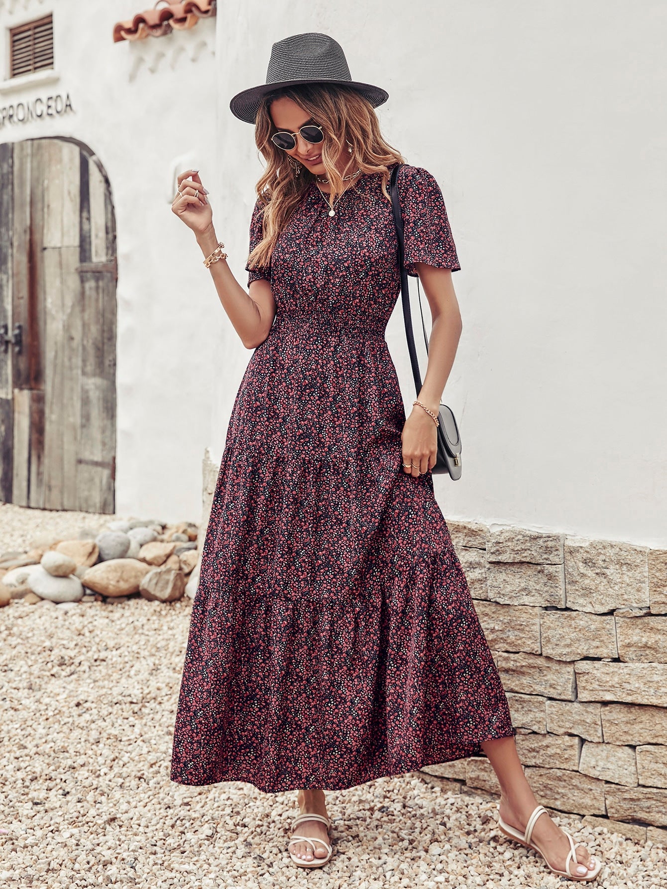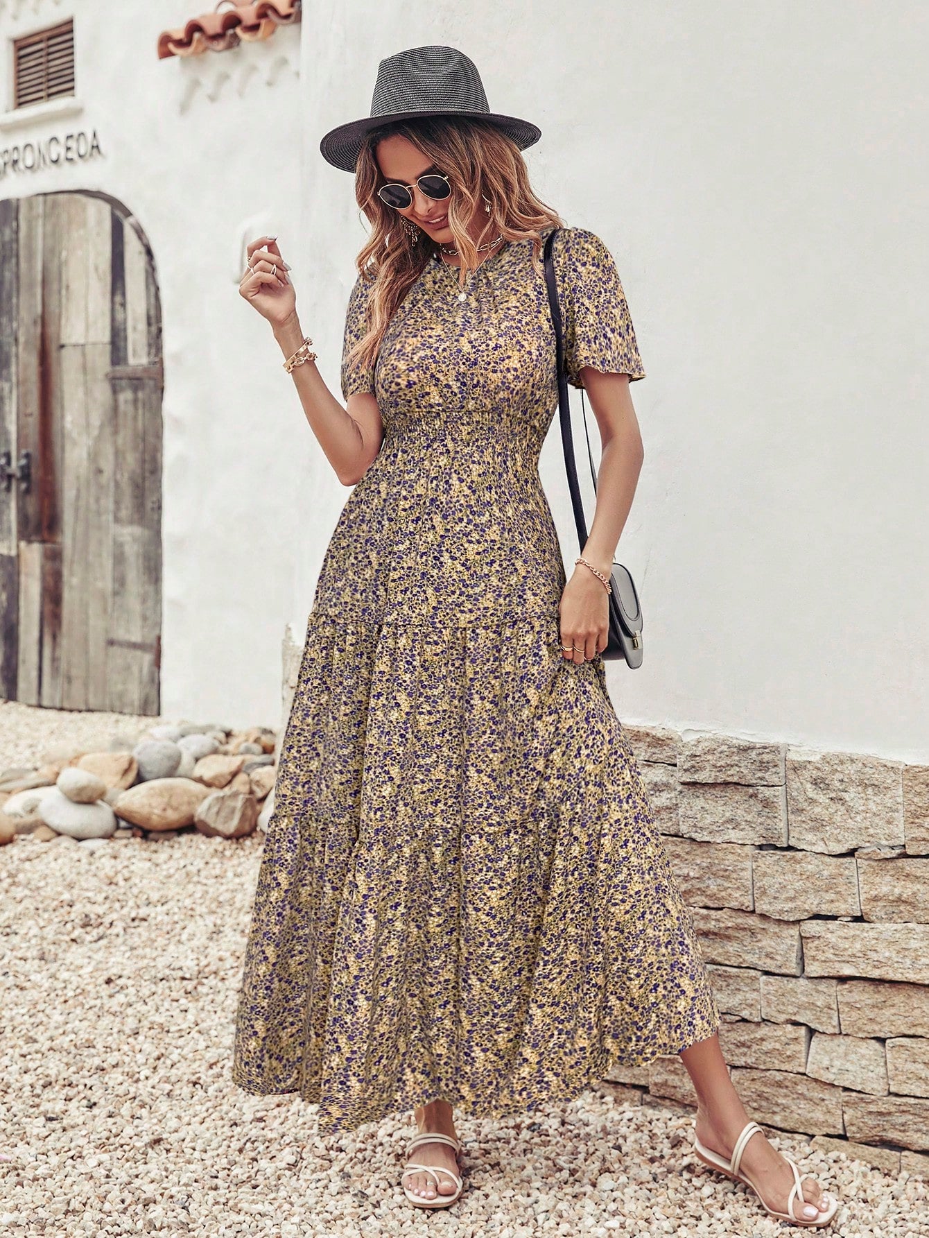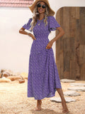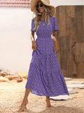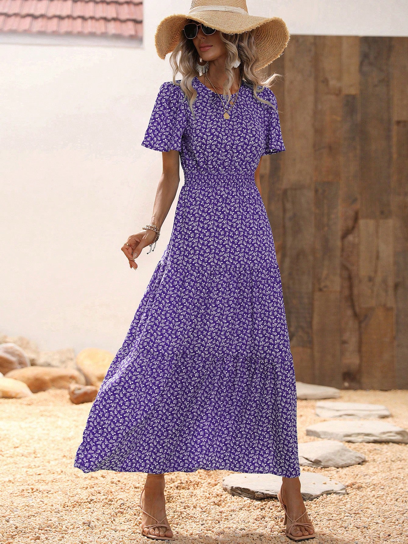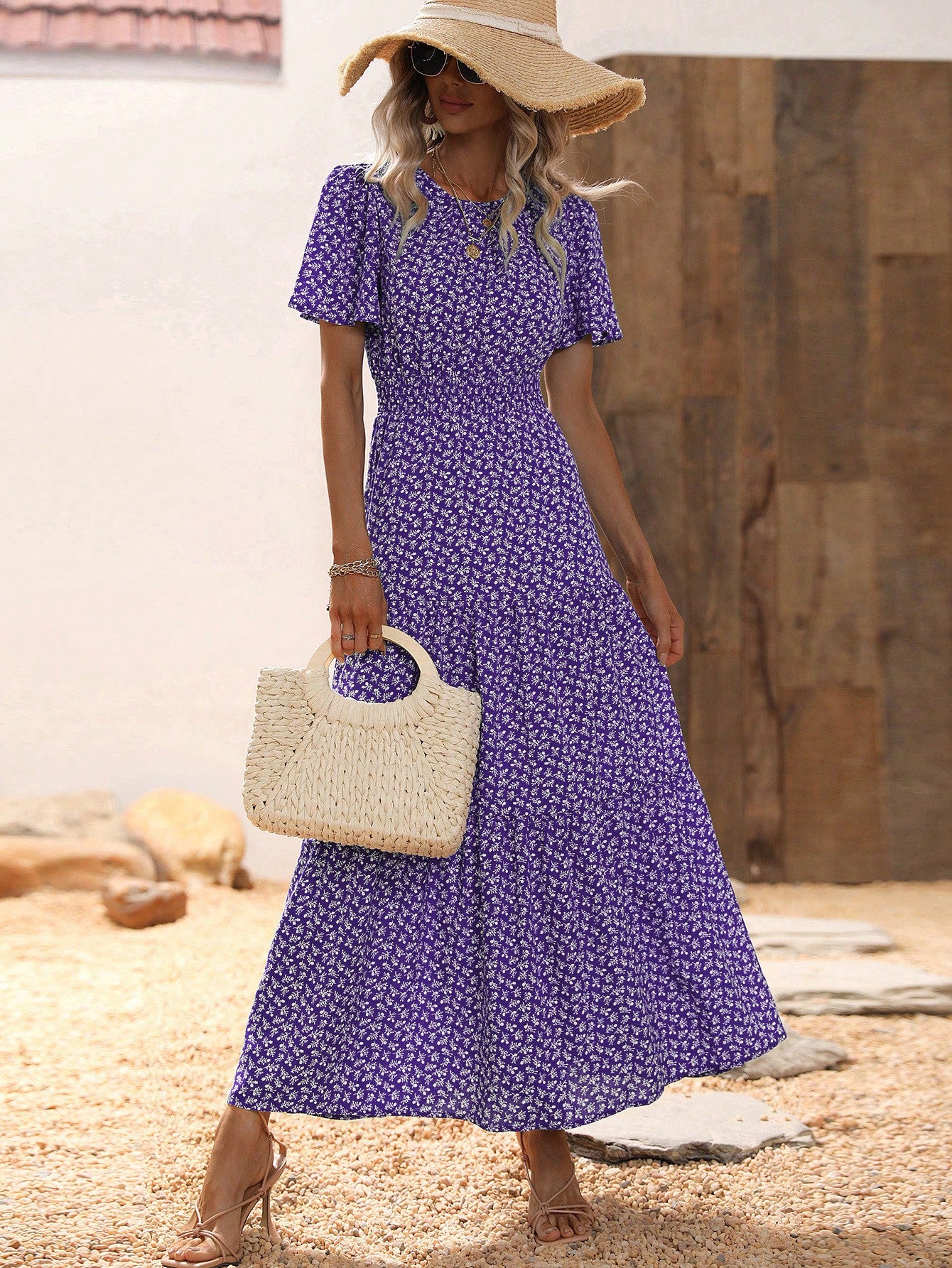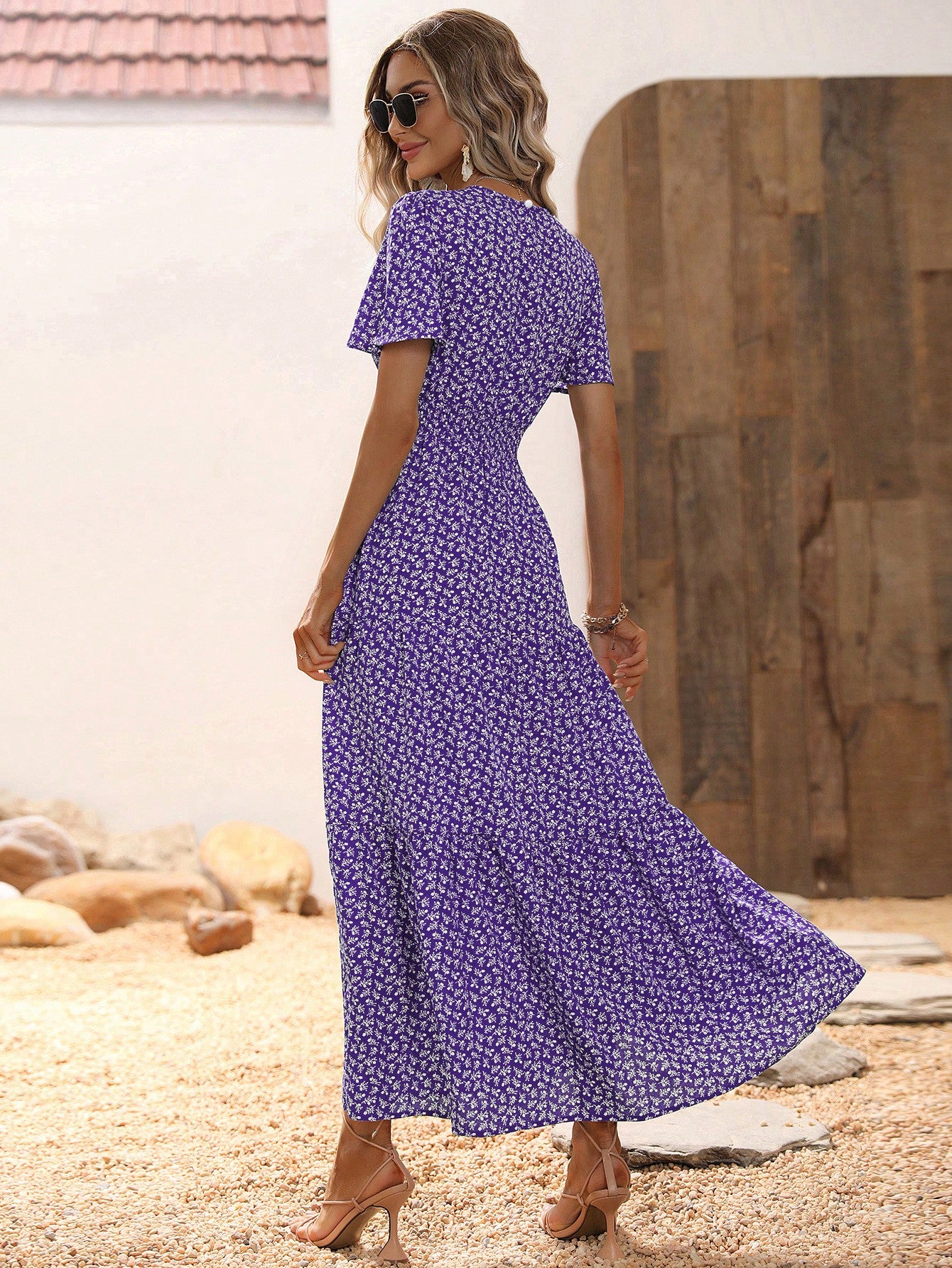 Flirty in Florals: Purple Floral Print Ruffle Hem Dress