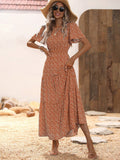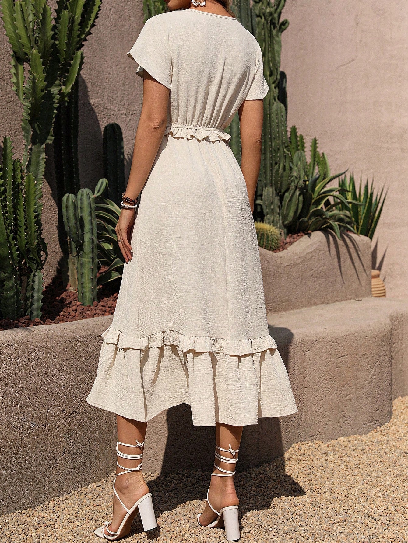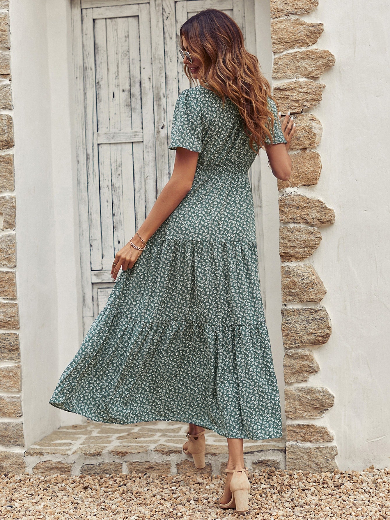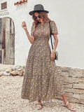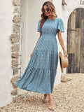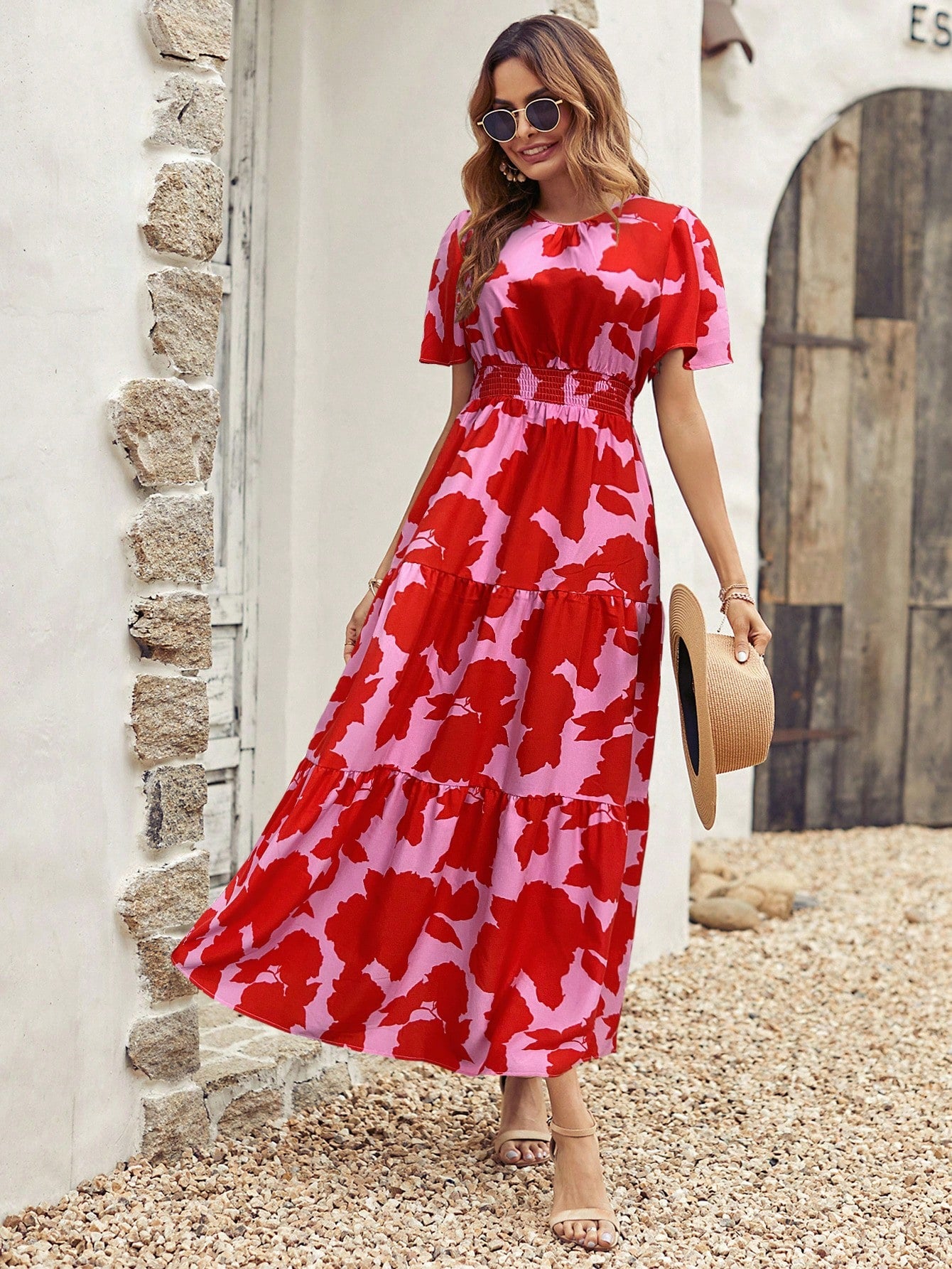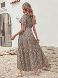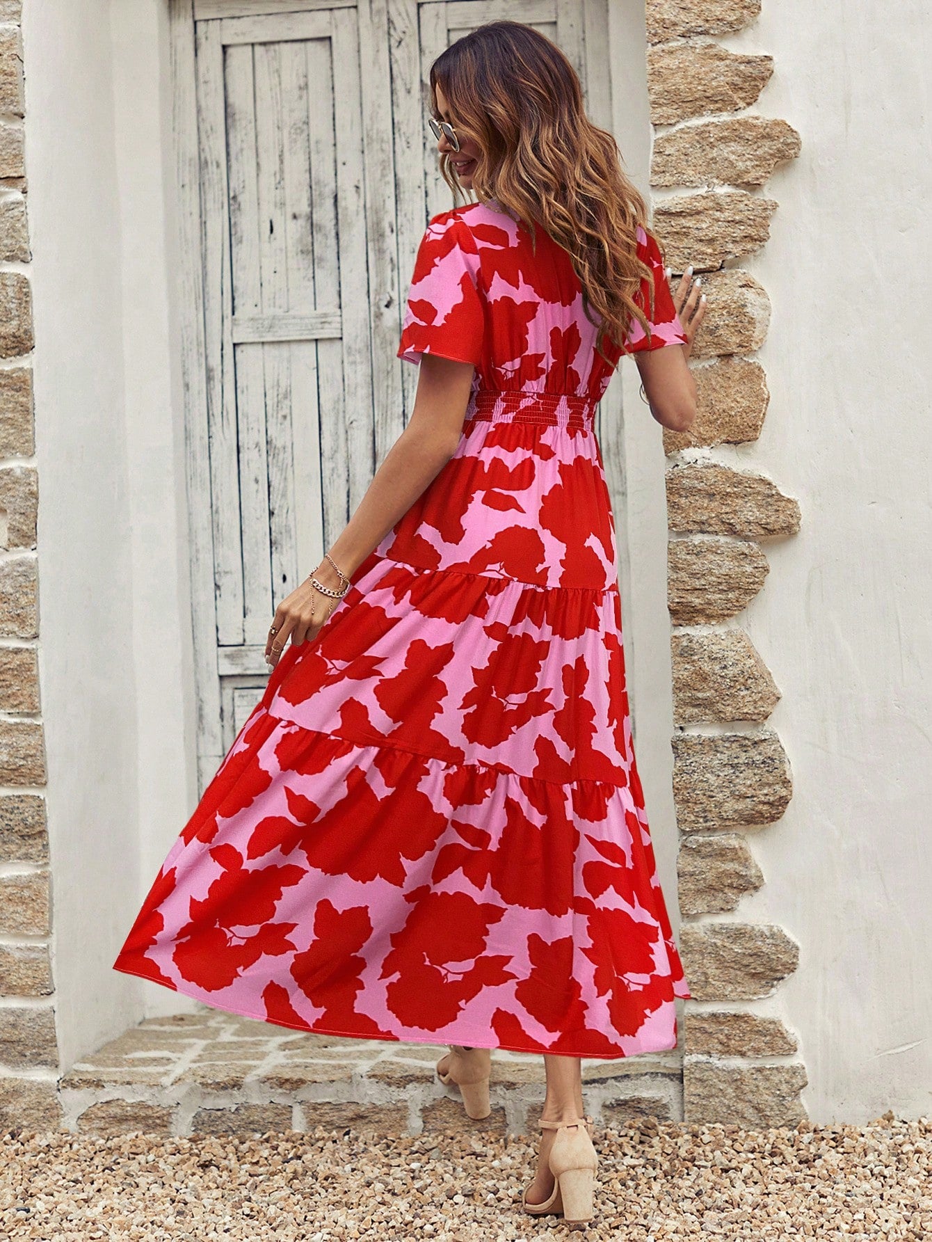 Flirty in Florals: Purple Floral Print Ruffle Hem Dress