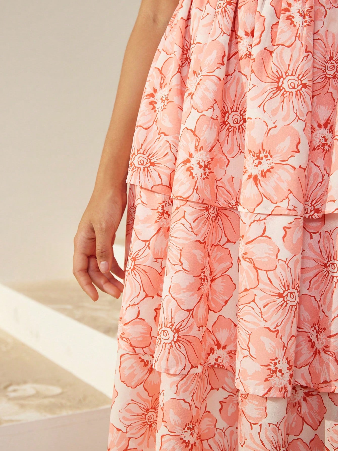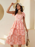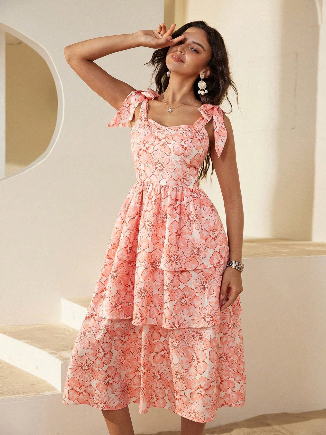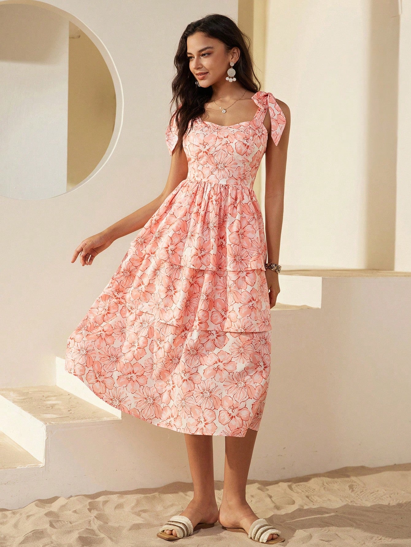 Floral Bliss: Vacation Beach Cami Strap Maxi Dress with Bowknot Detail