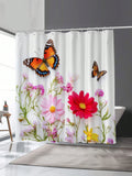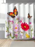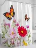 Floral Butterfly Digital Printed Shower Curtain - Mildew Proof & Waterproof with Hooks & Eyelets