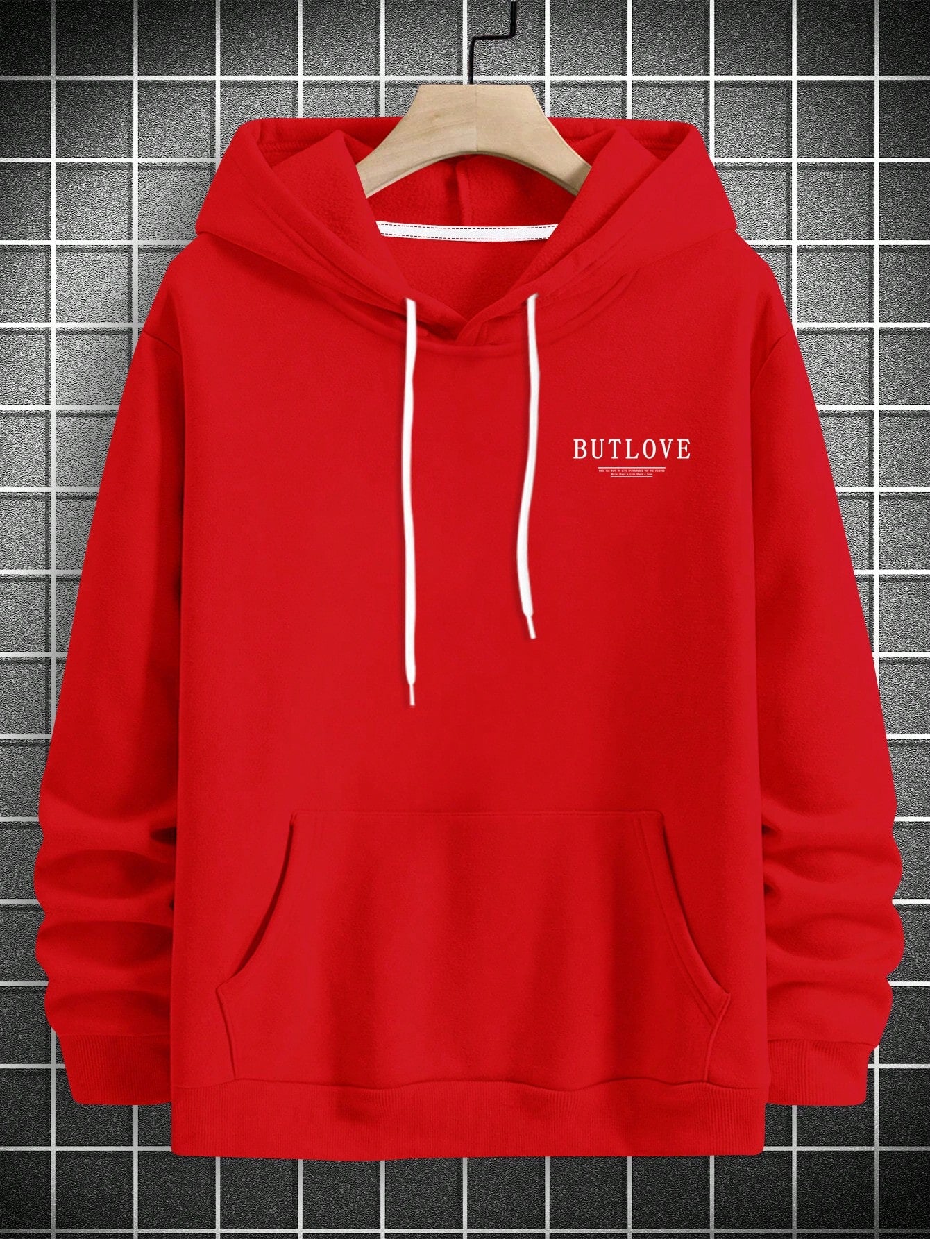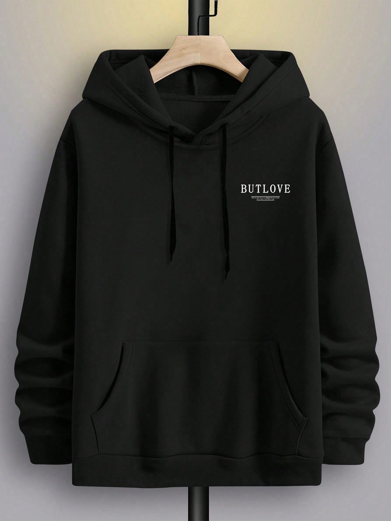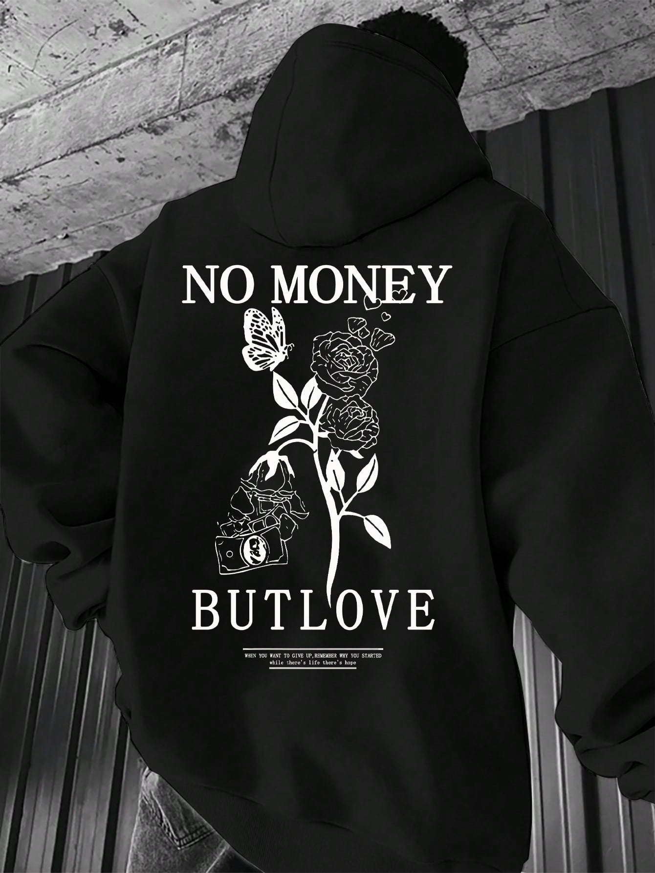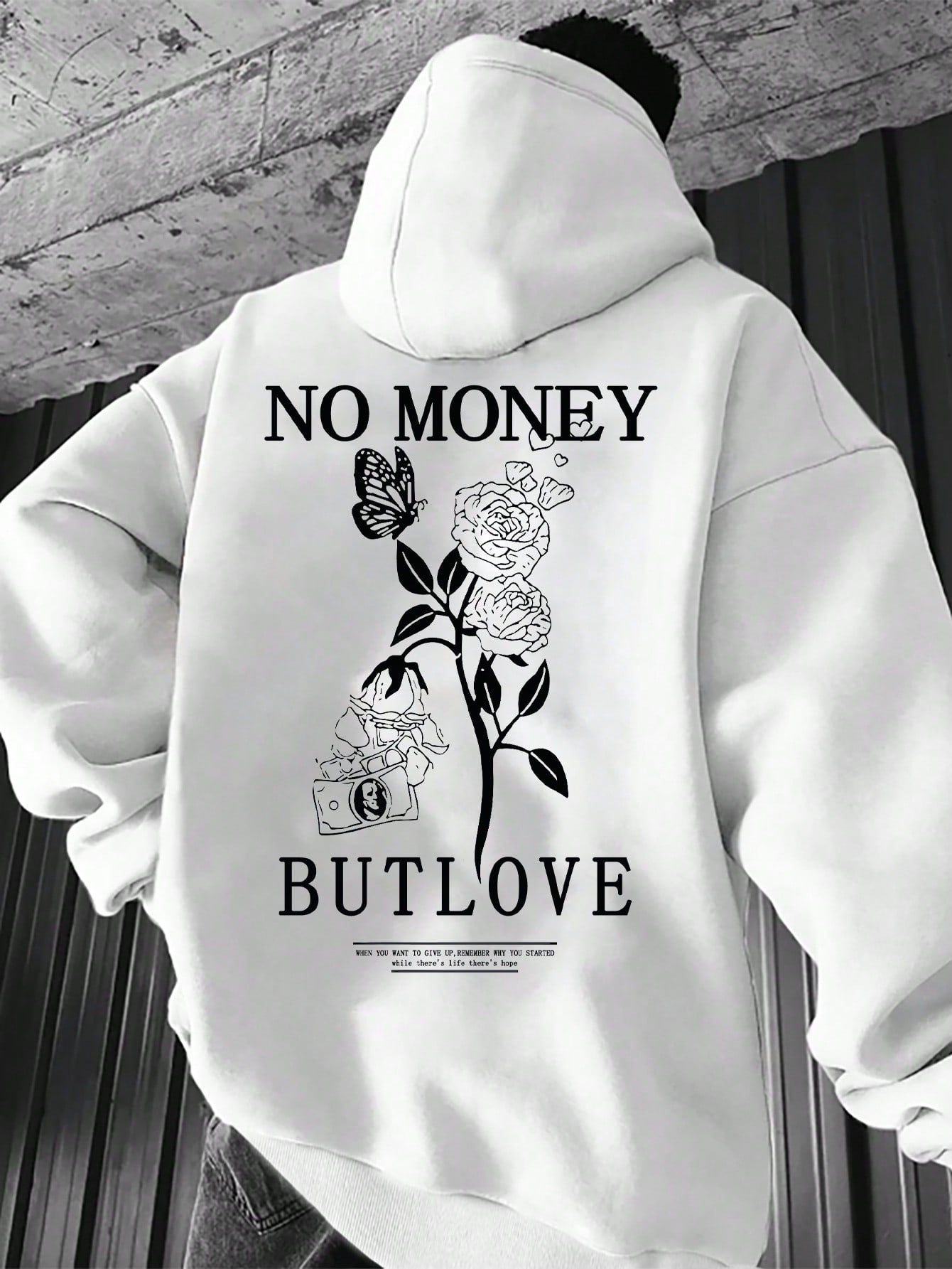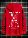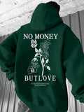 Floral Comfort: Men's Hooded Sweatshirt with Printed Slogan and Flowers