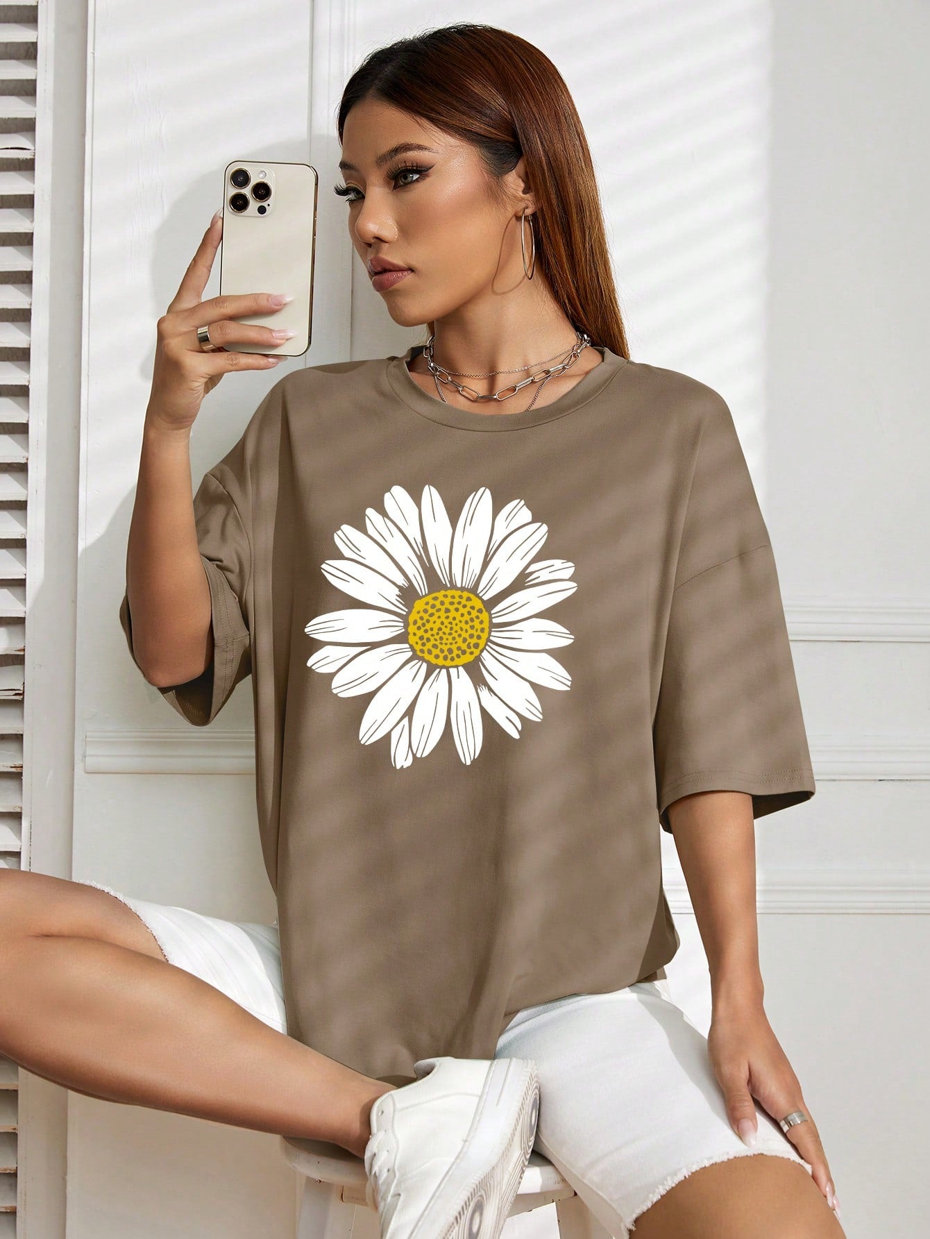 Floral Delight: Women's Loose Fit Round Neck T-Shirt