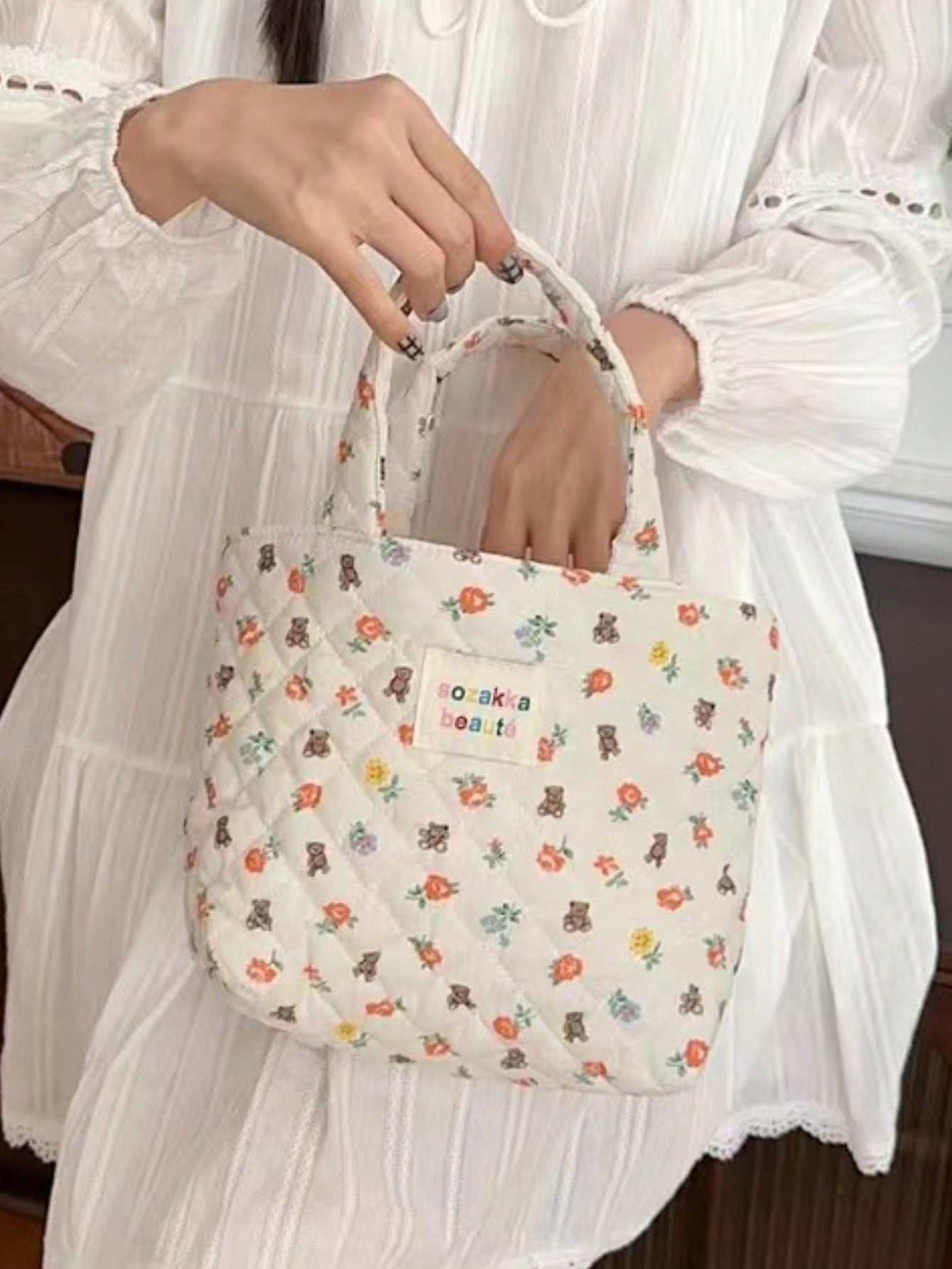 Floral Elegance: Embroidered Handbag with Padded Flowers