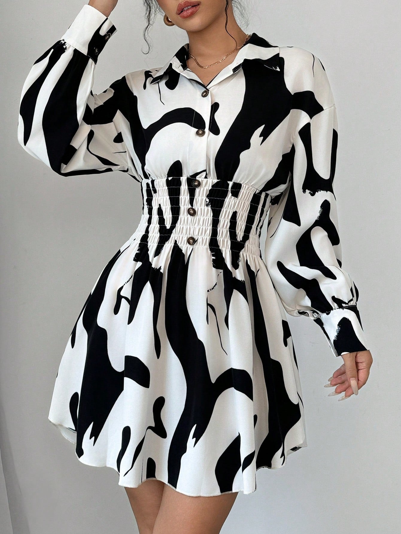 Floral Elegance: Long Sleeve Button-Up Casual Dress
