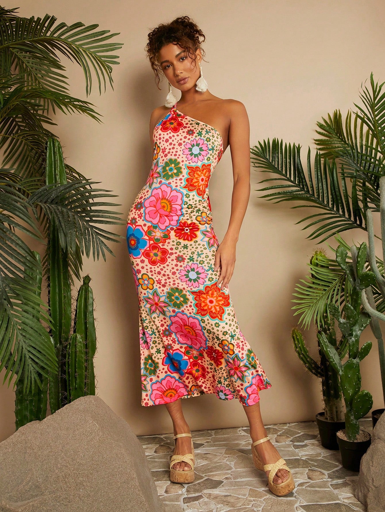 Floral Elegance: Neckline Backless Mermaid Hem Bodycon Dress