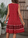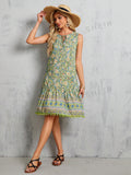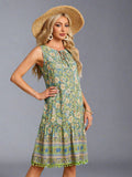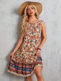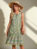 Floral Elegance: Women's Sleeveless Dress with Knotted Collar