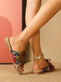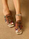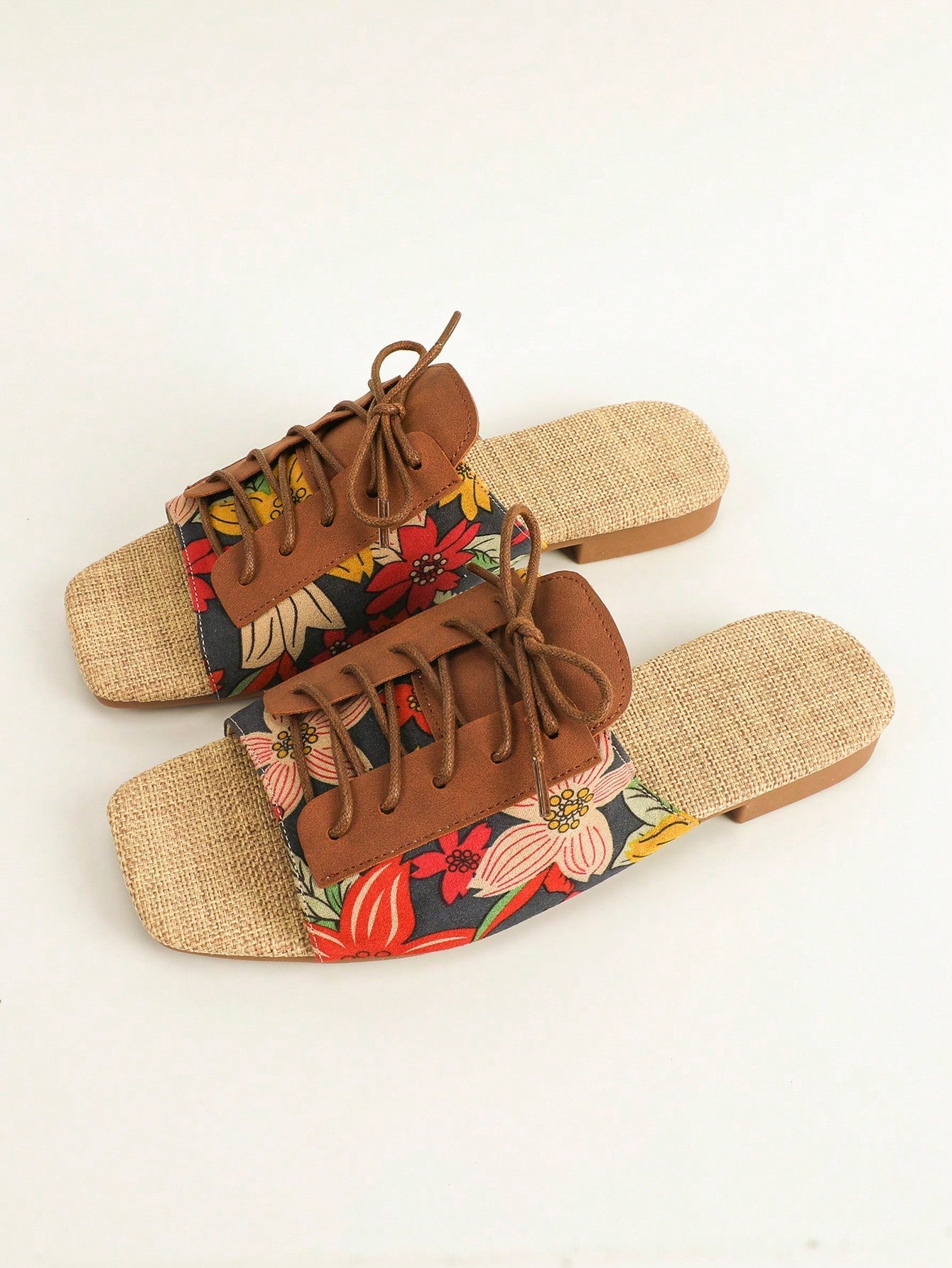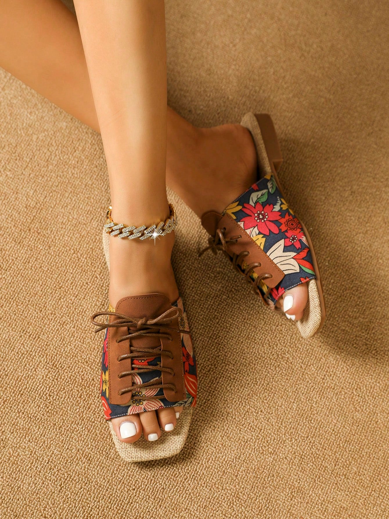 Floral Fantasy: Lace-up Front Slide Sandals for Fashion-forward Women