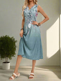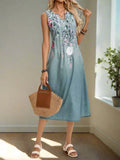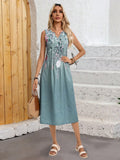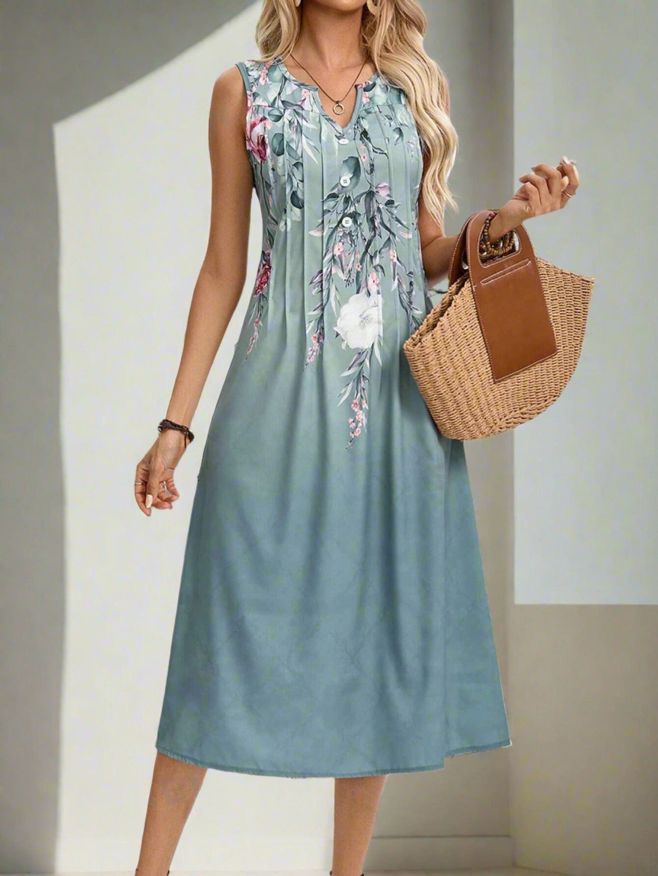 Floral Pattern Print Pocket Pleated V-Neck Casual Women's Summer Dress
