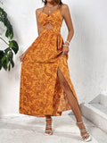 Floral Twist-Knot Hollow-Out Split Dress - Effortless Summer Elegance