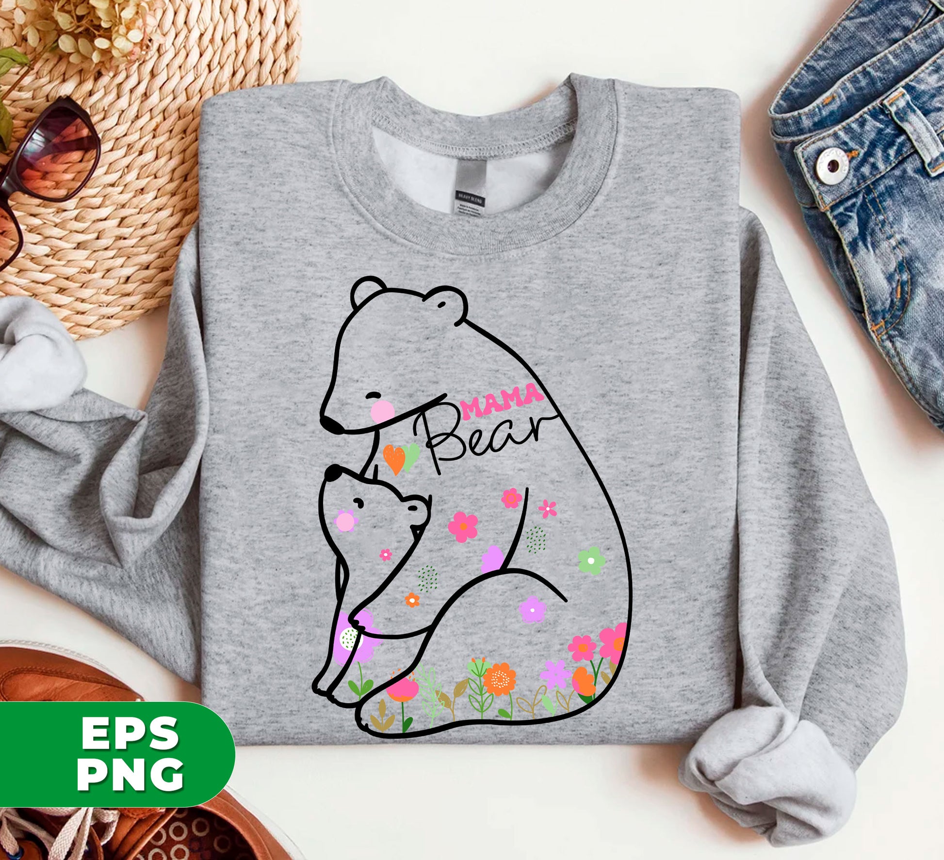 Flower Bear, Mama Bear, Mama Gift, Mother's Day Gift, Digital Files, Png Sublimation