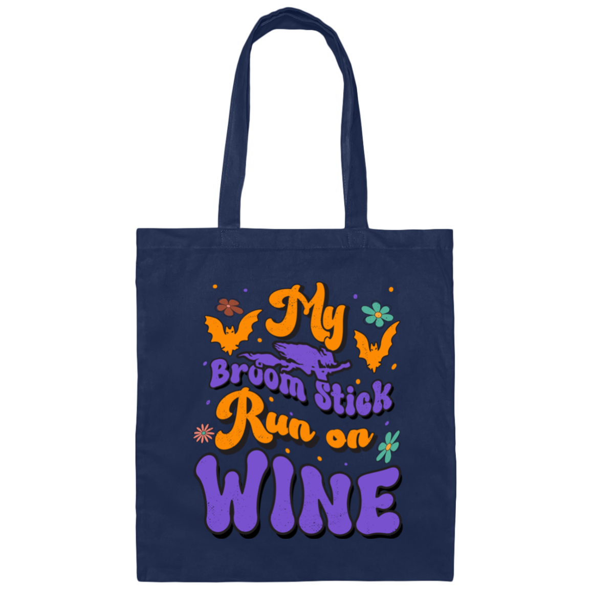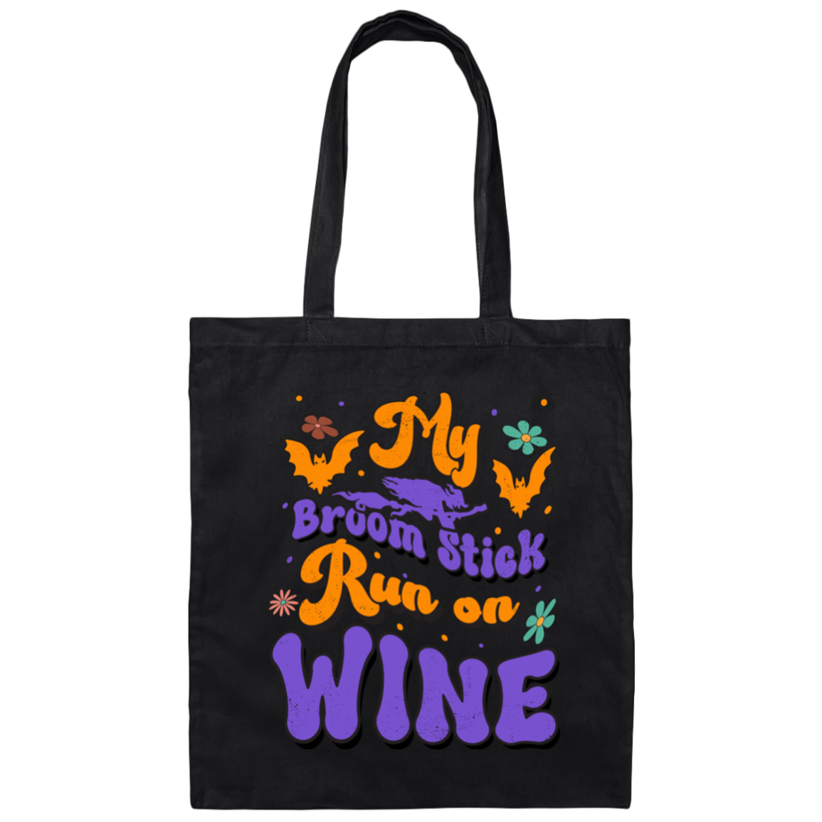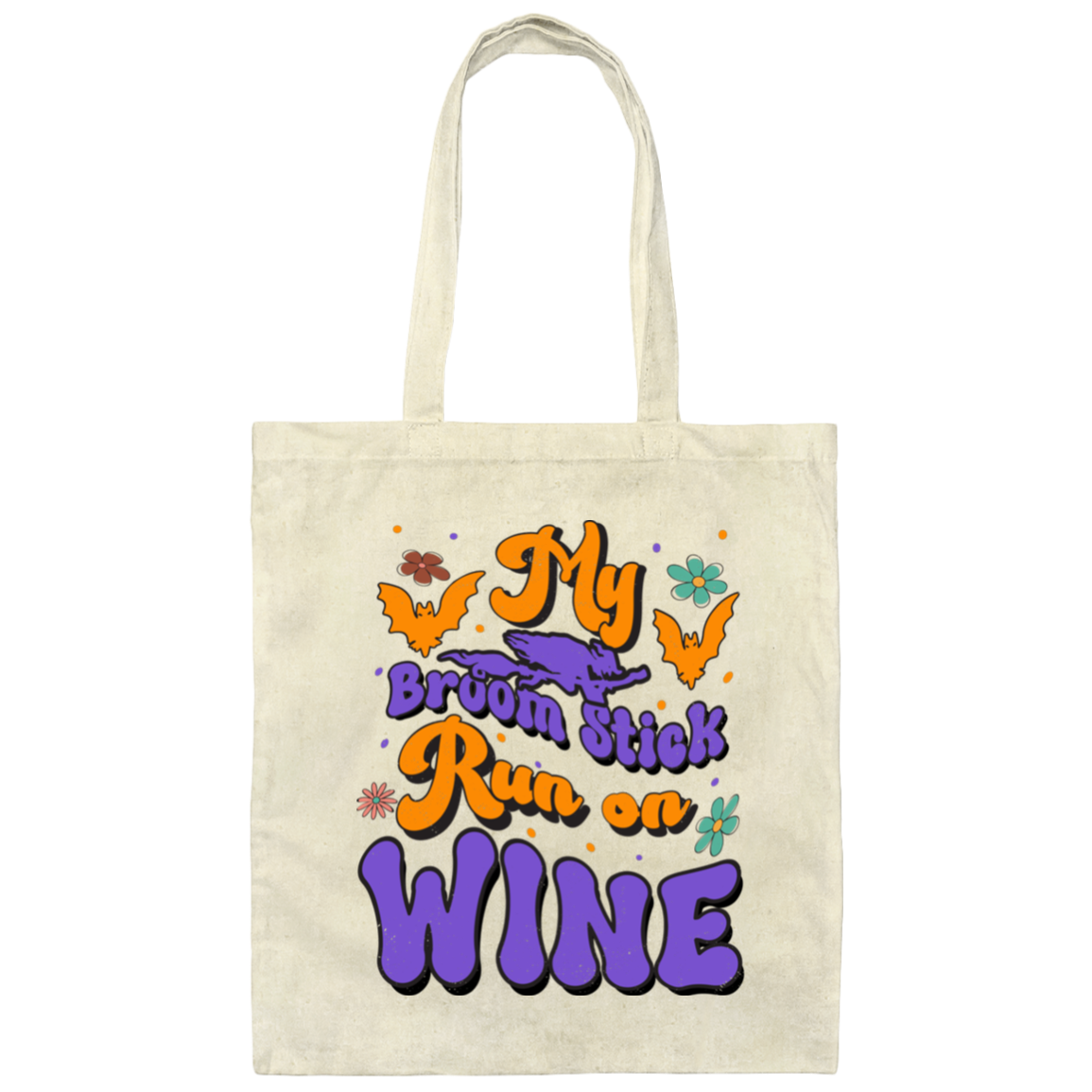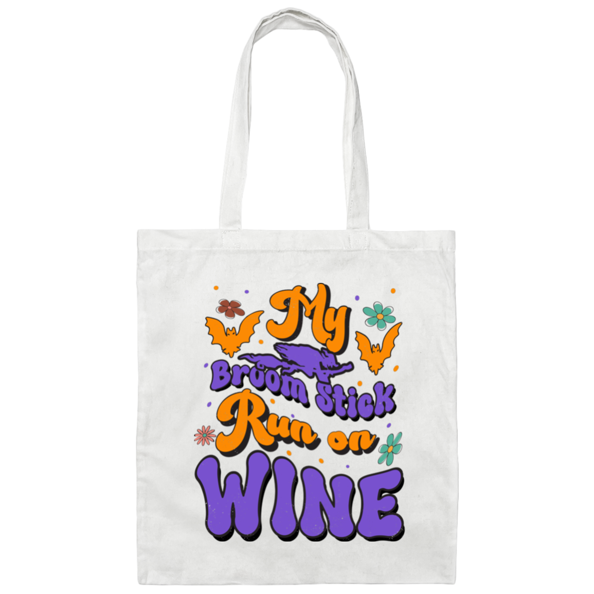 Fly Broom Stick, Run On Wine, Halloween's Day Canvas Tote Bag