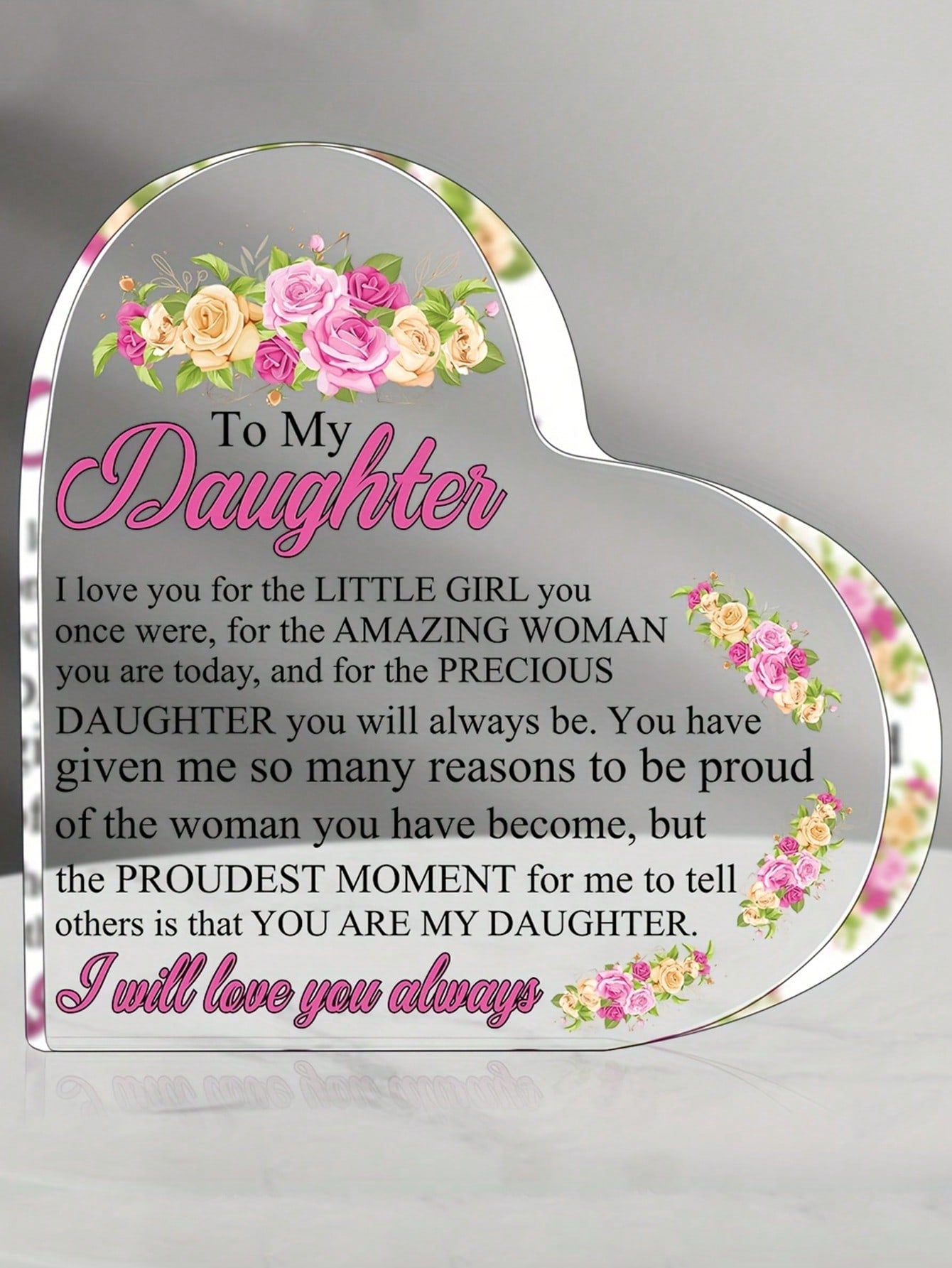 Celebrate the everlasting bond between a mother and daughter with our beautiful desk plaque. Made of elegant acrylic, it makes the perfect gift for daughters of any age. Show your love with this sentimental and stylish piece.