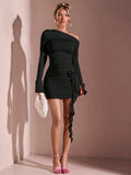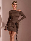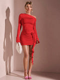 Frenchies Pink Brunch Beauty: Off-Shoulder Floral Ruffle Dress for Fall Celebrations