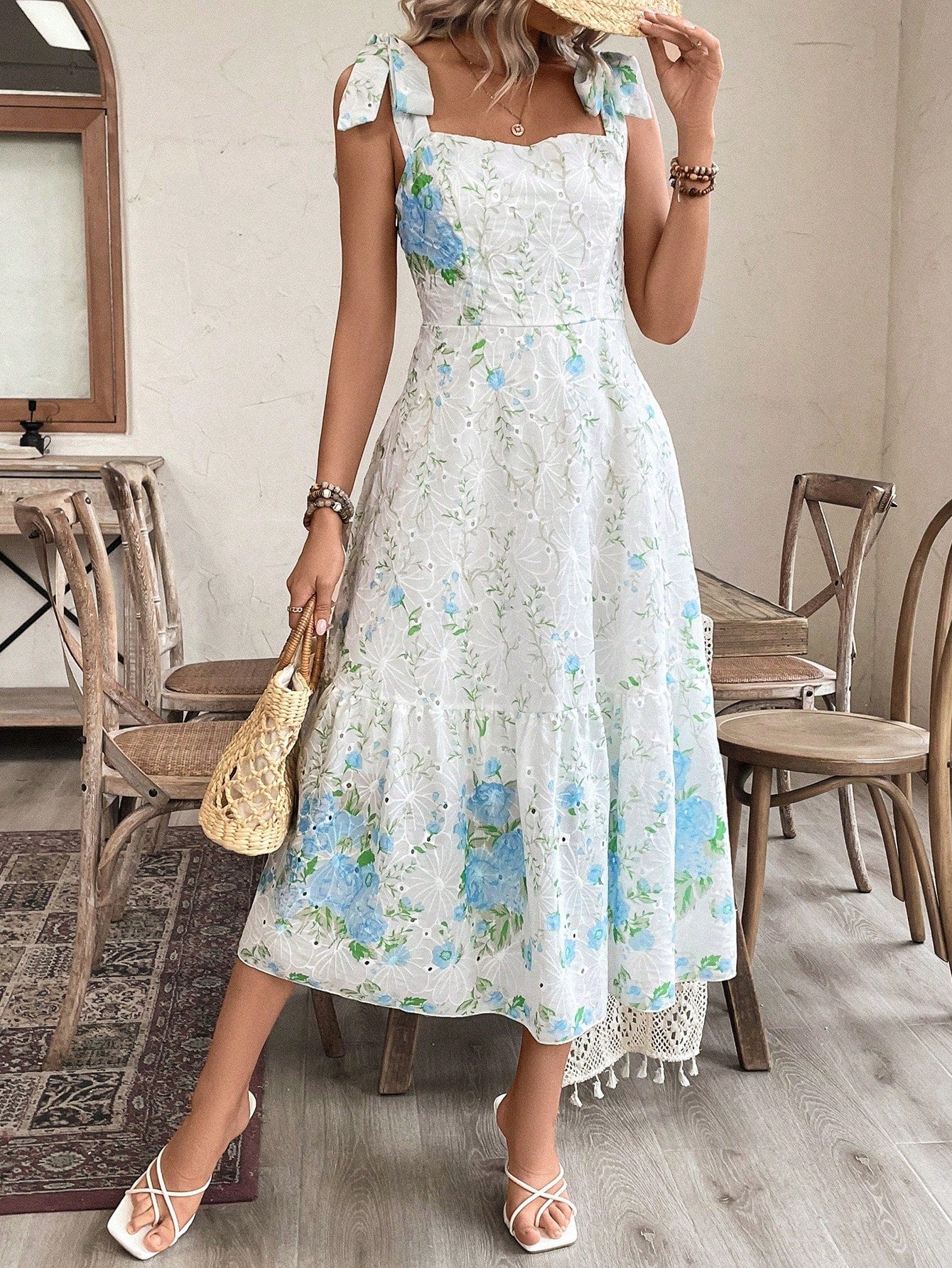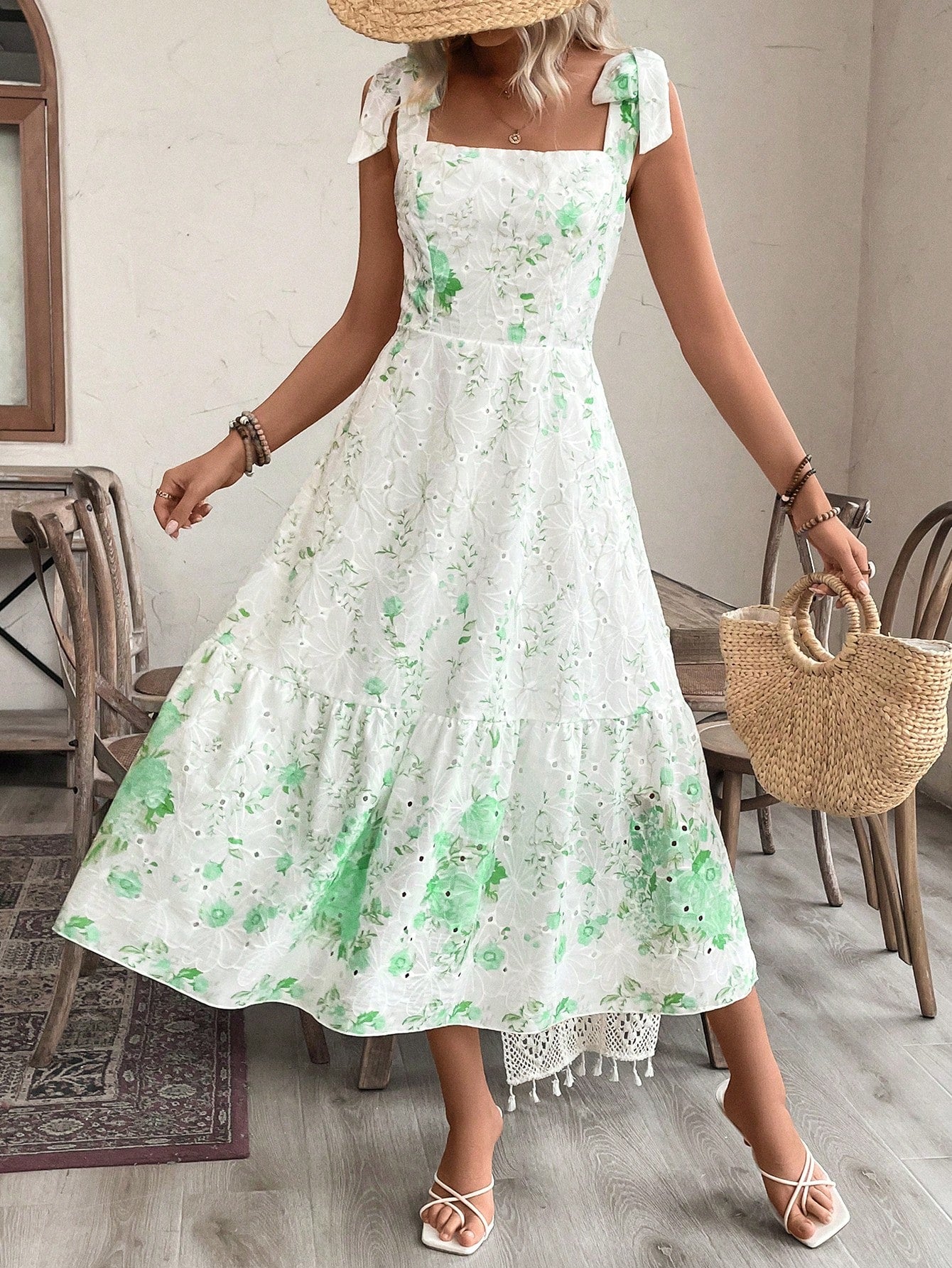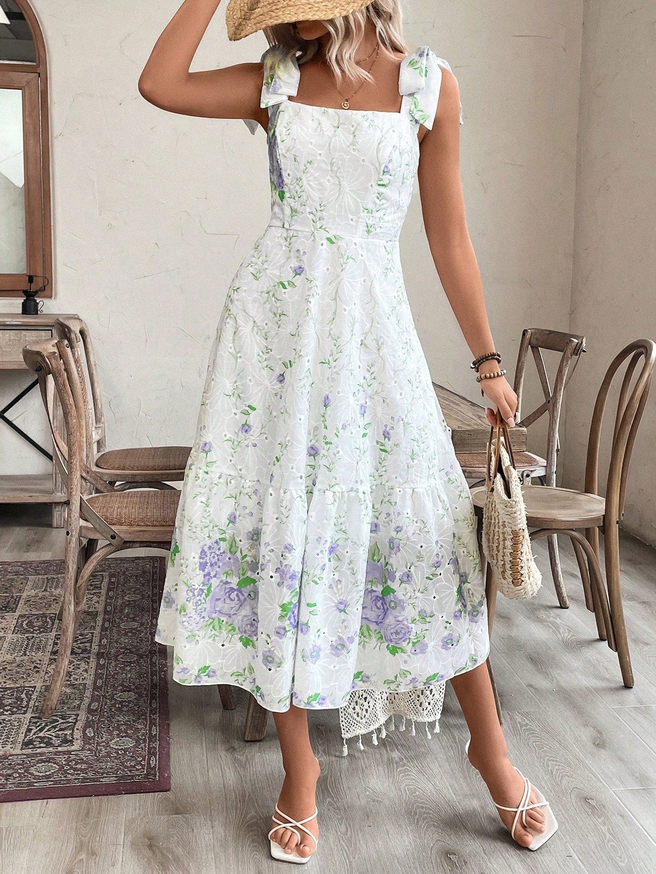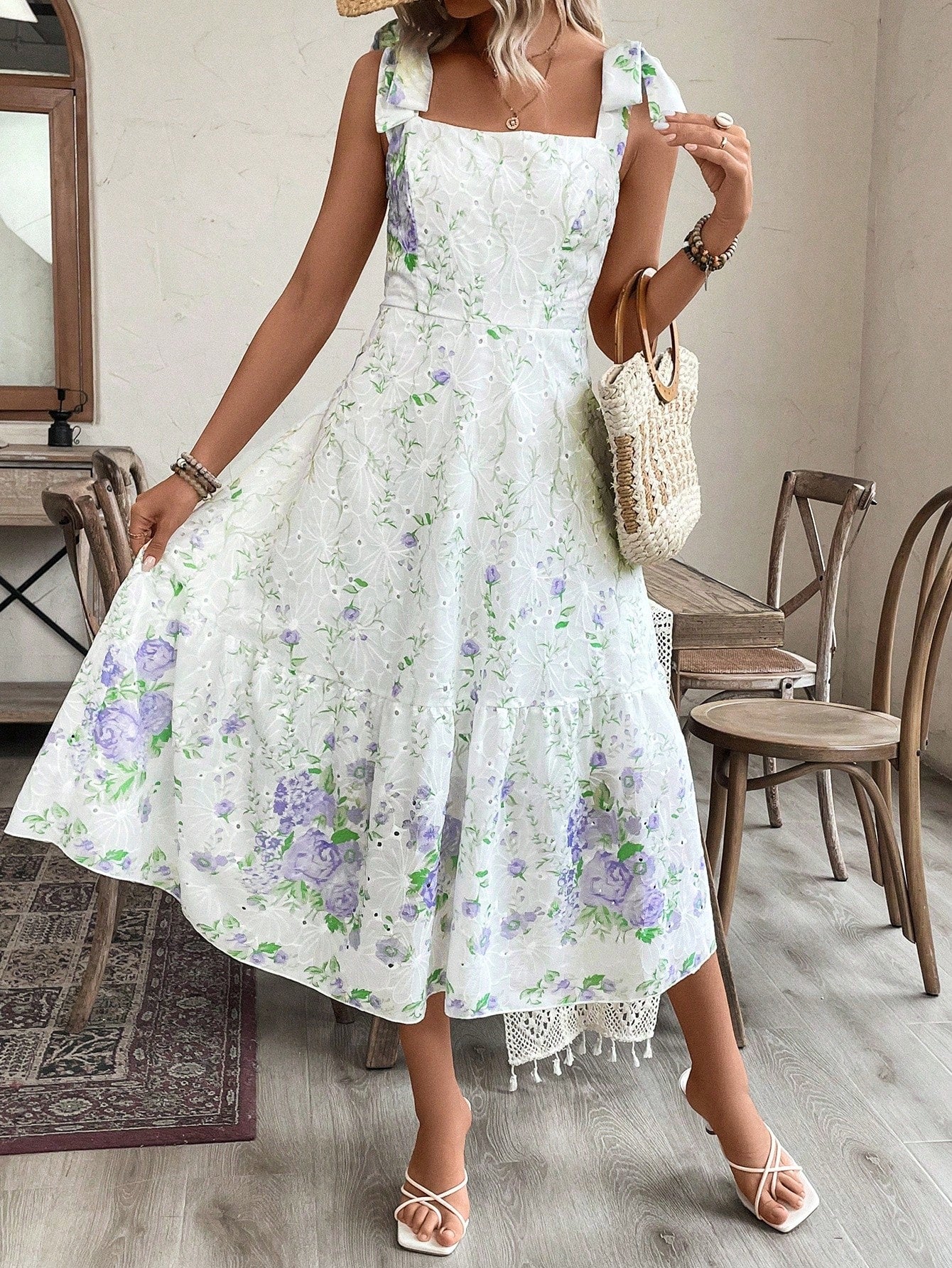 Freshen up Your Wardrobe with the Simple Daily Wear Random Floral Pattern Dress