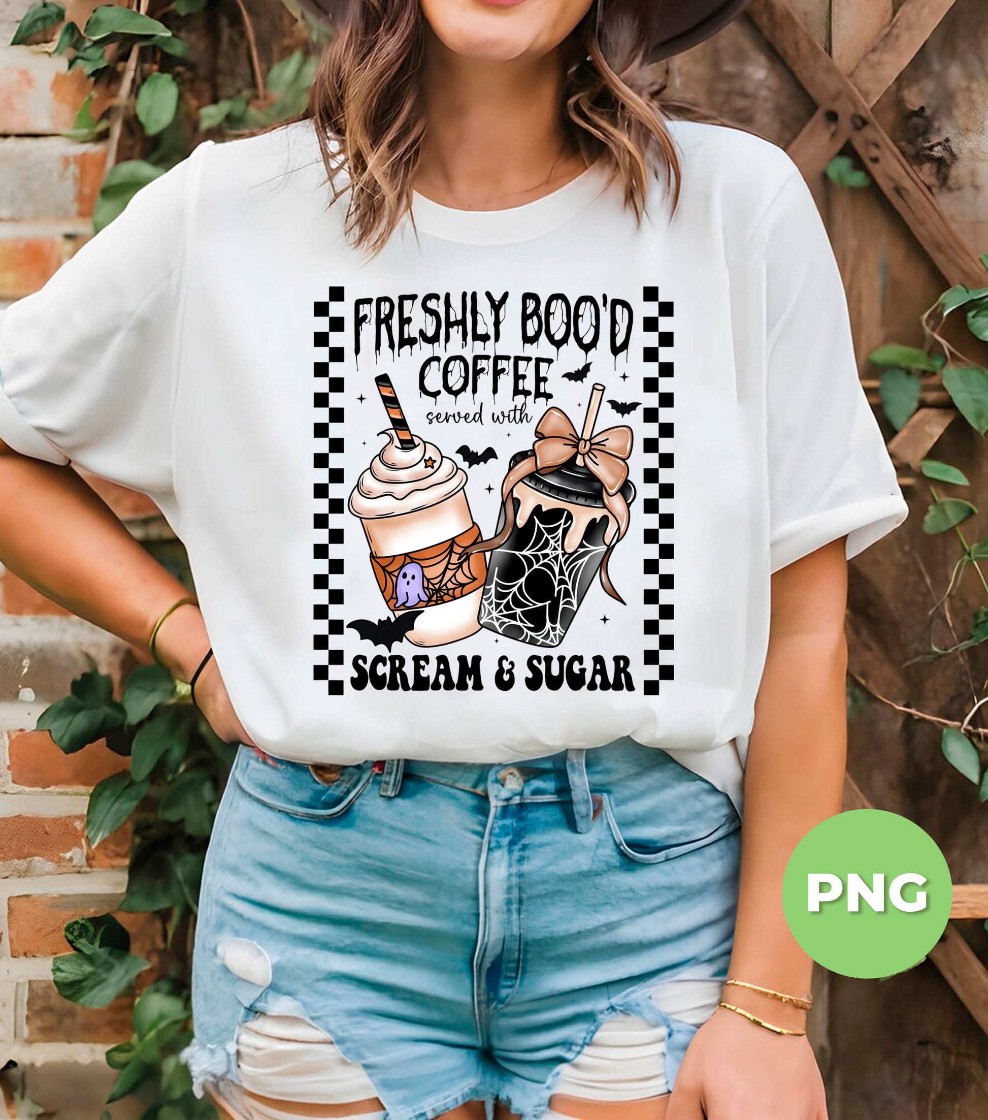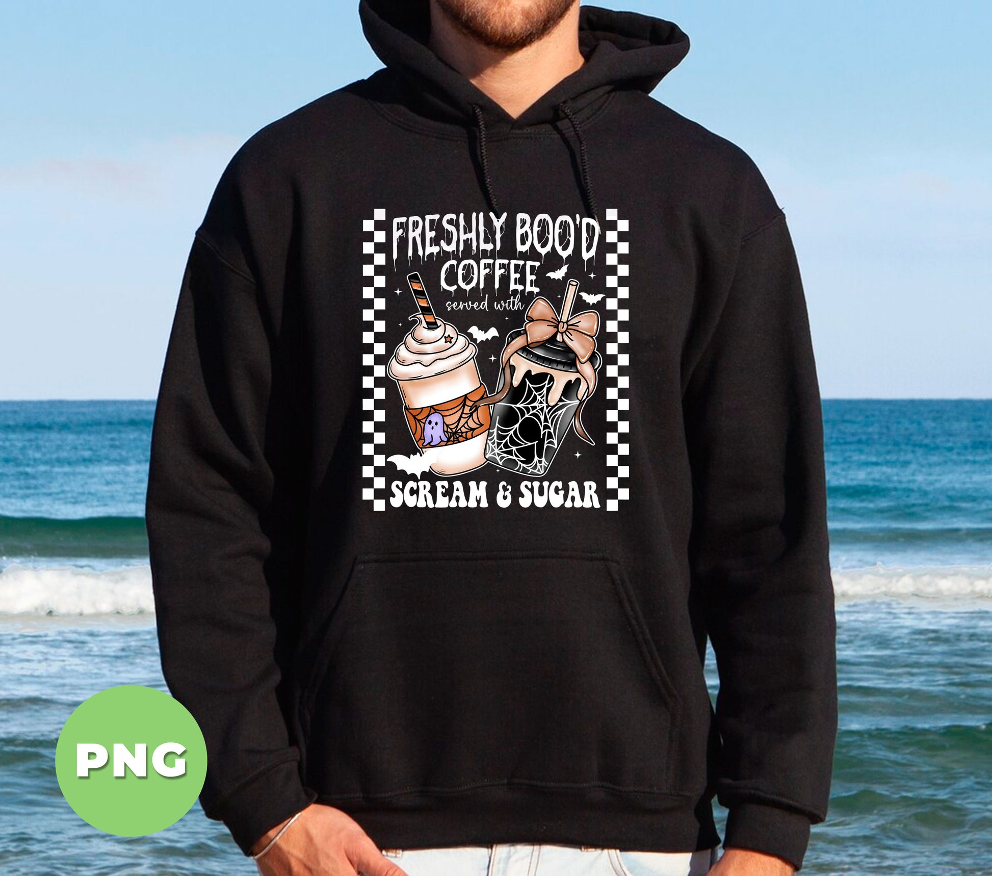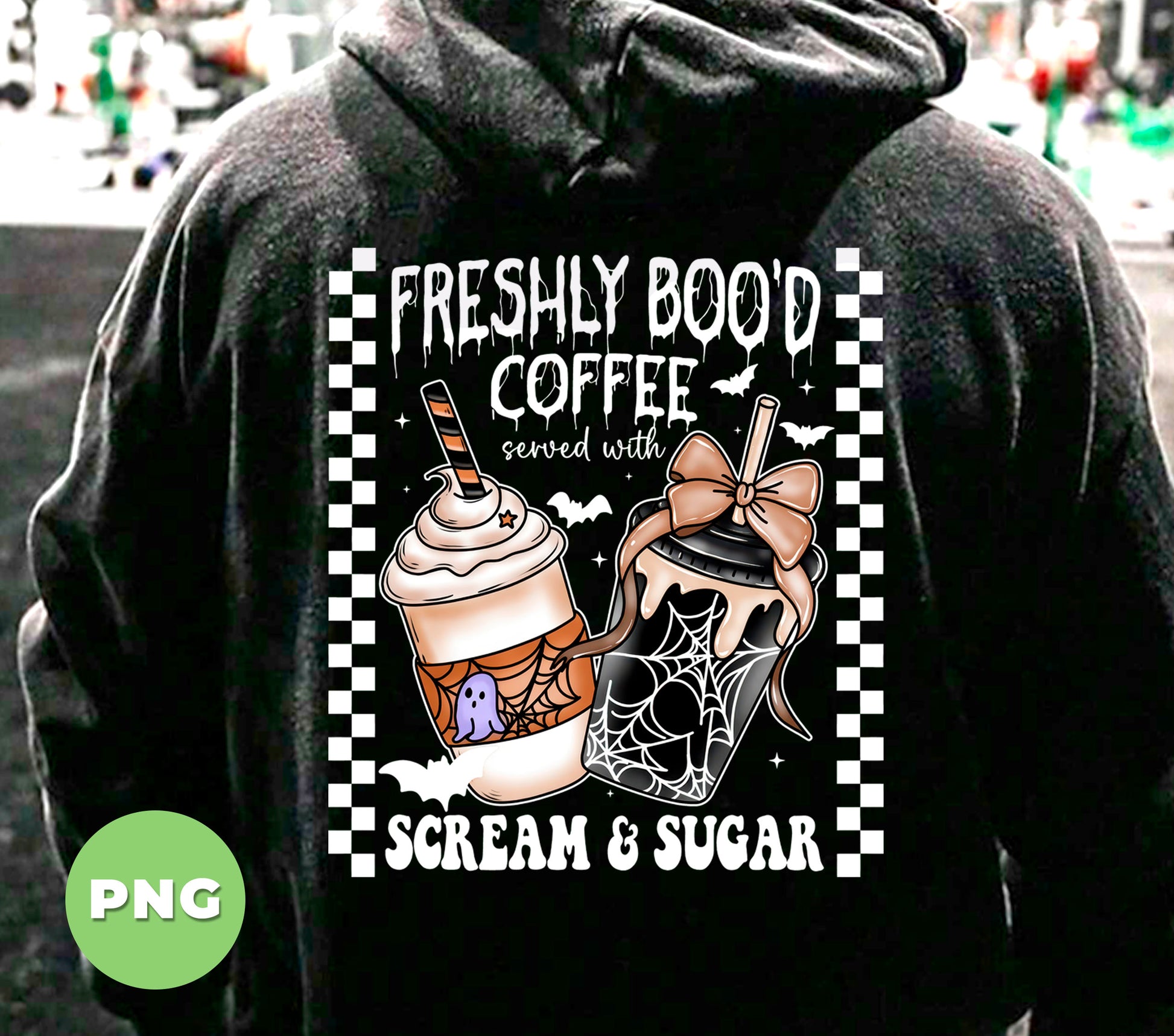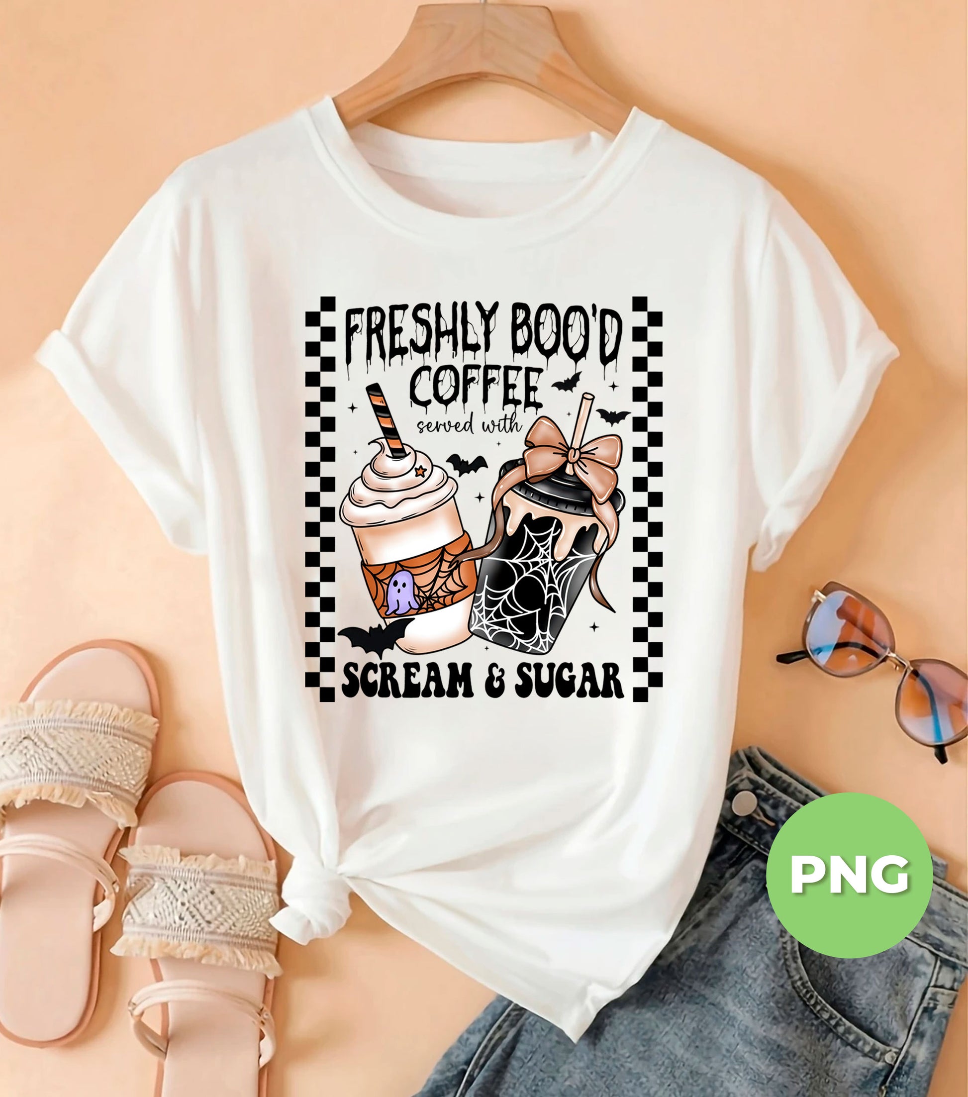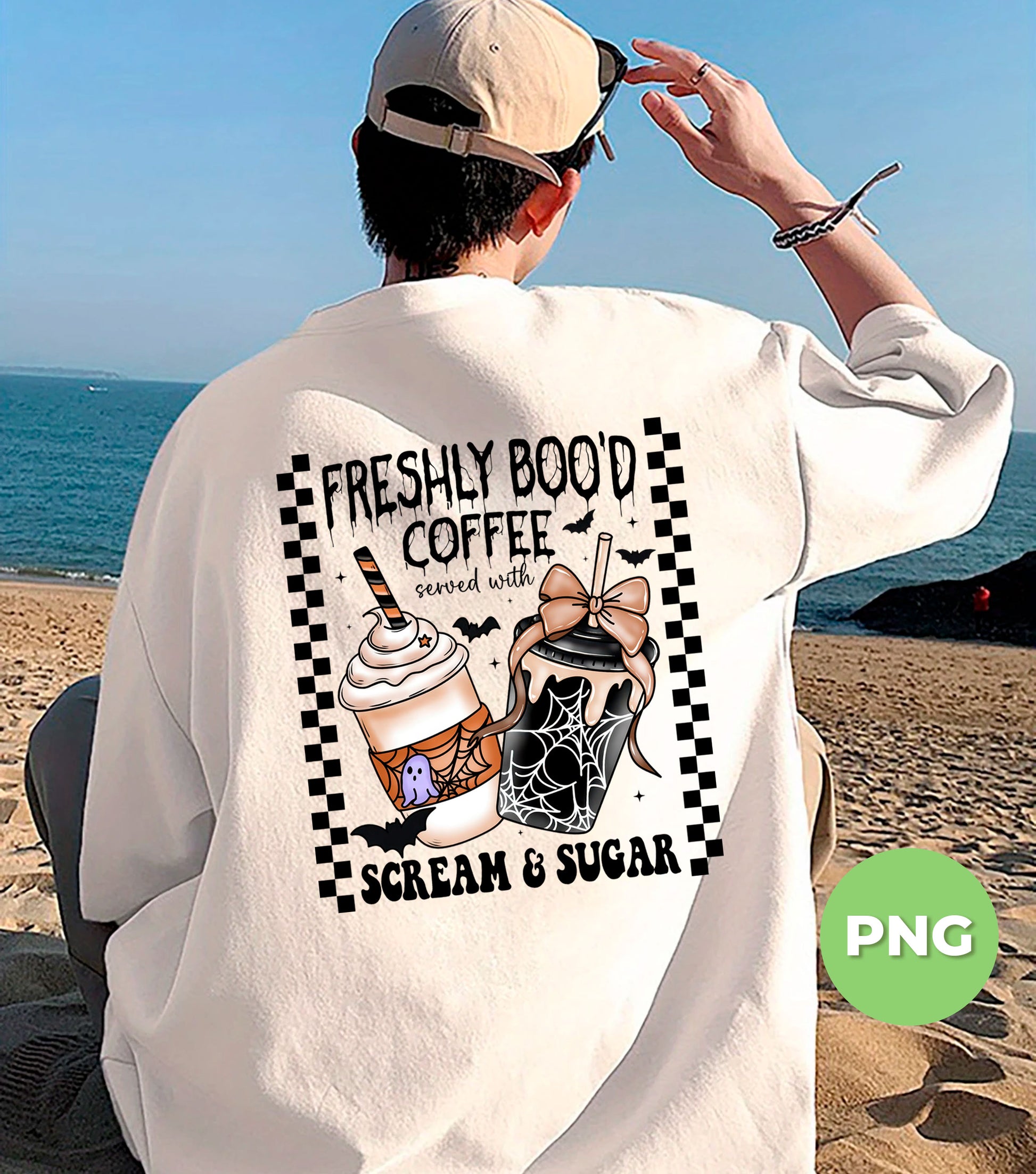 Freshly Boo’d Coffee PNG, Halloween Iced Coffee Sublimation, Scream And Sugar Clipart, Cute Spooky Drink Print, Ghost Bat Spiderweb Design