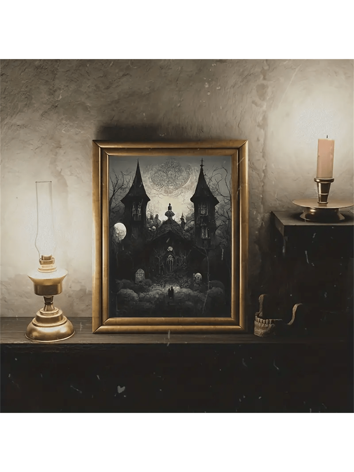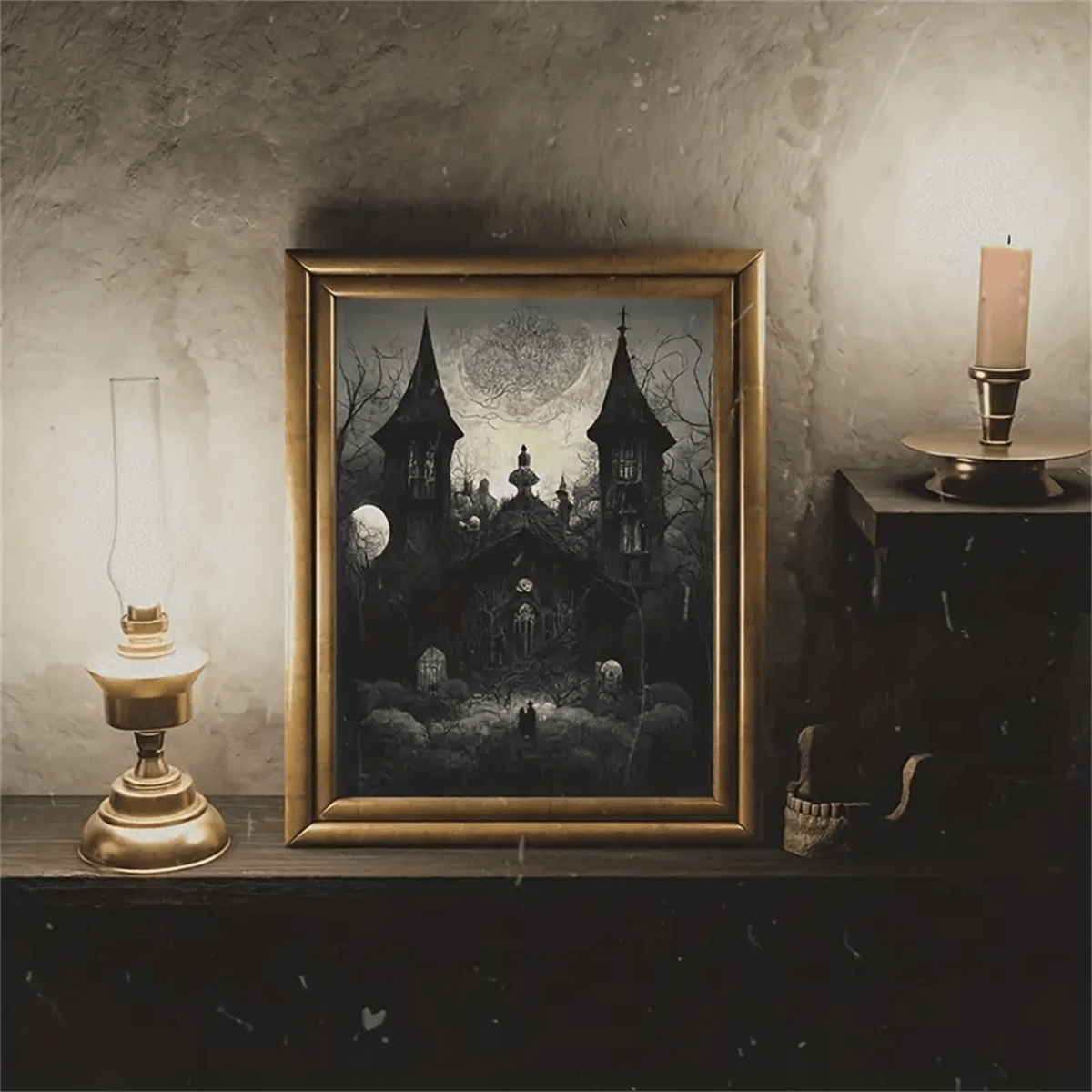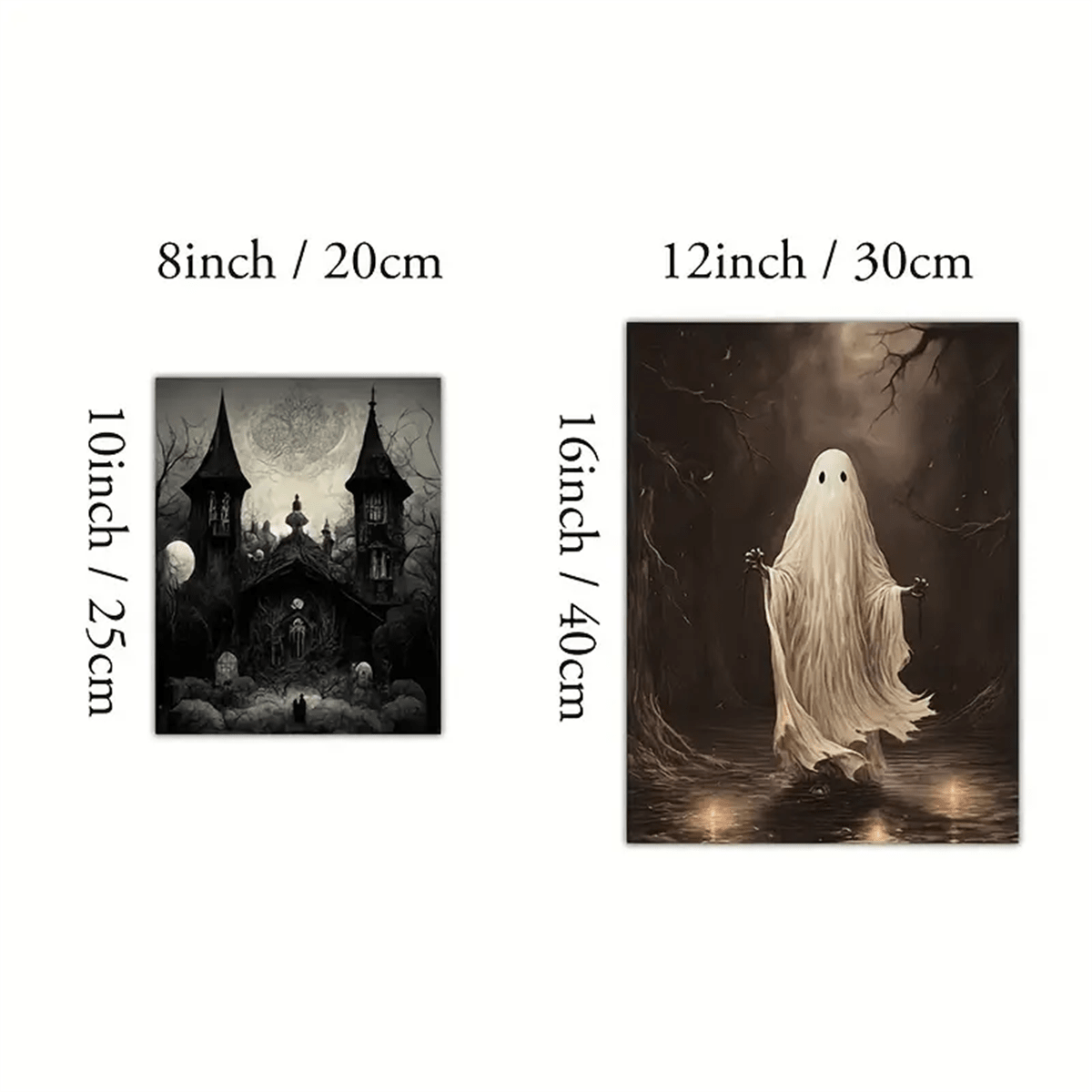 Frightful Delight: Haunted House Canvas Poster Set - Perfect Halloween Decor for Bedroom and Living Room