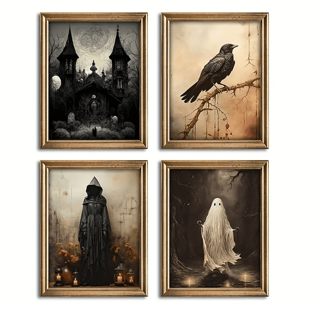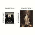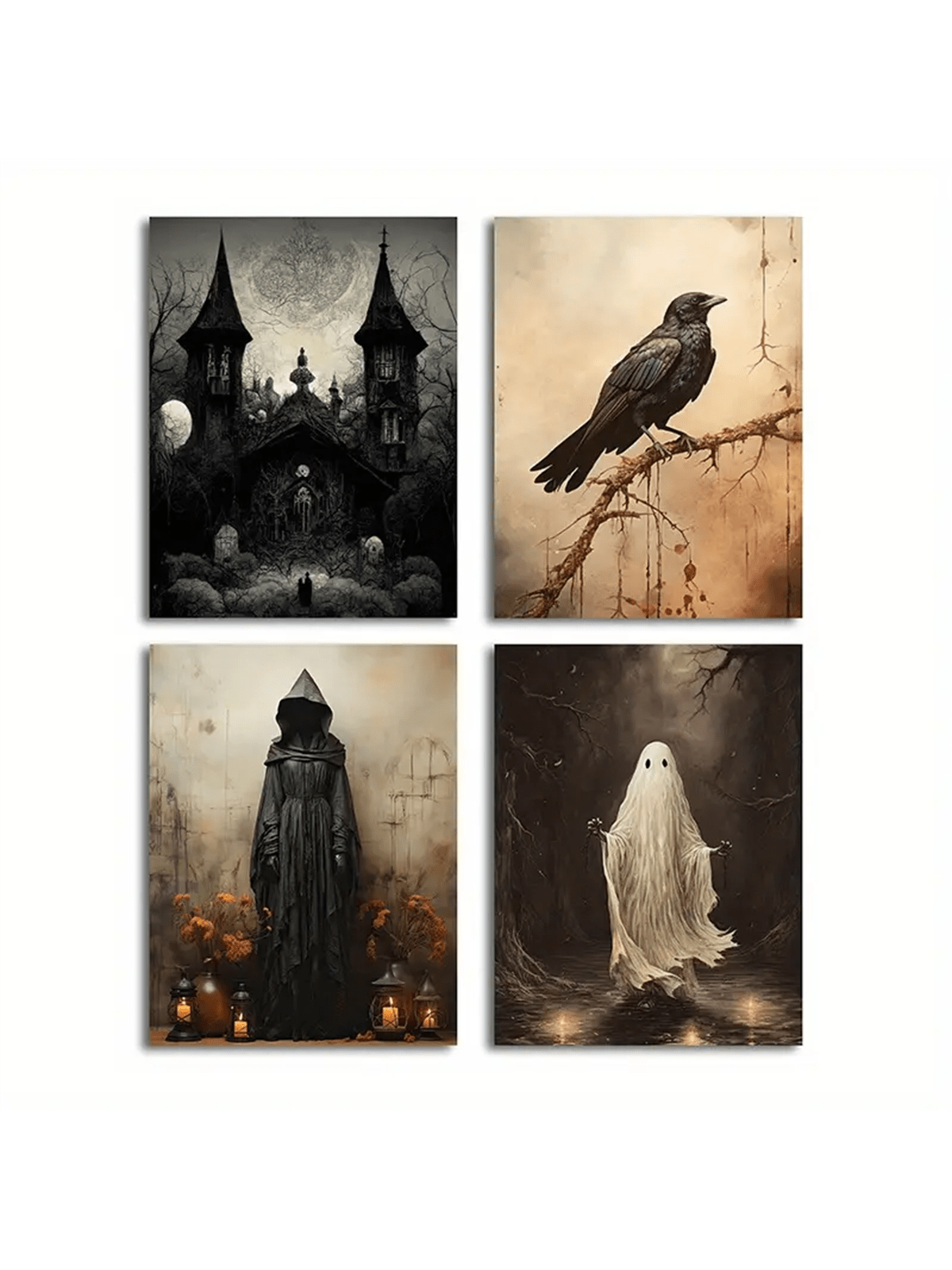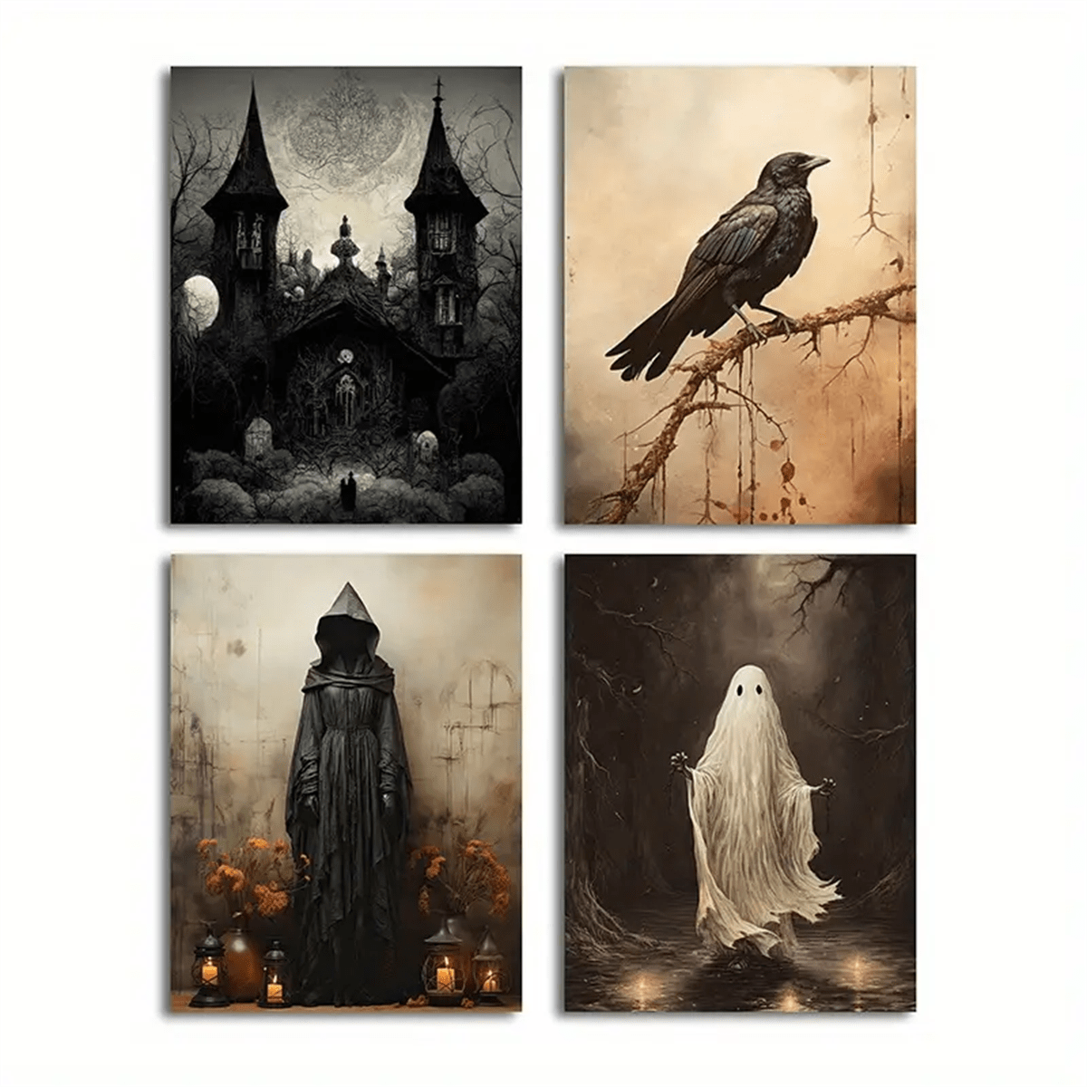 Frightful Delight: Haunted House Canvas Poster Set - Perfect Halloween Decor for Bedroom and Living Room