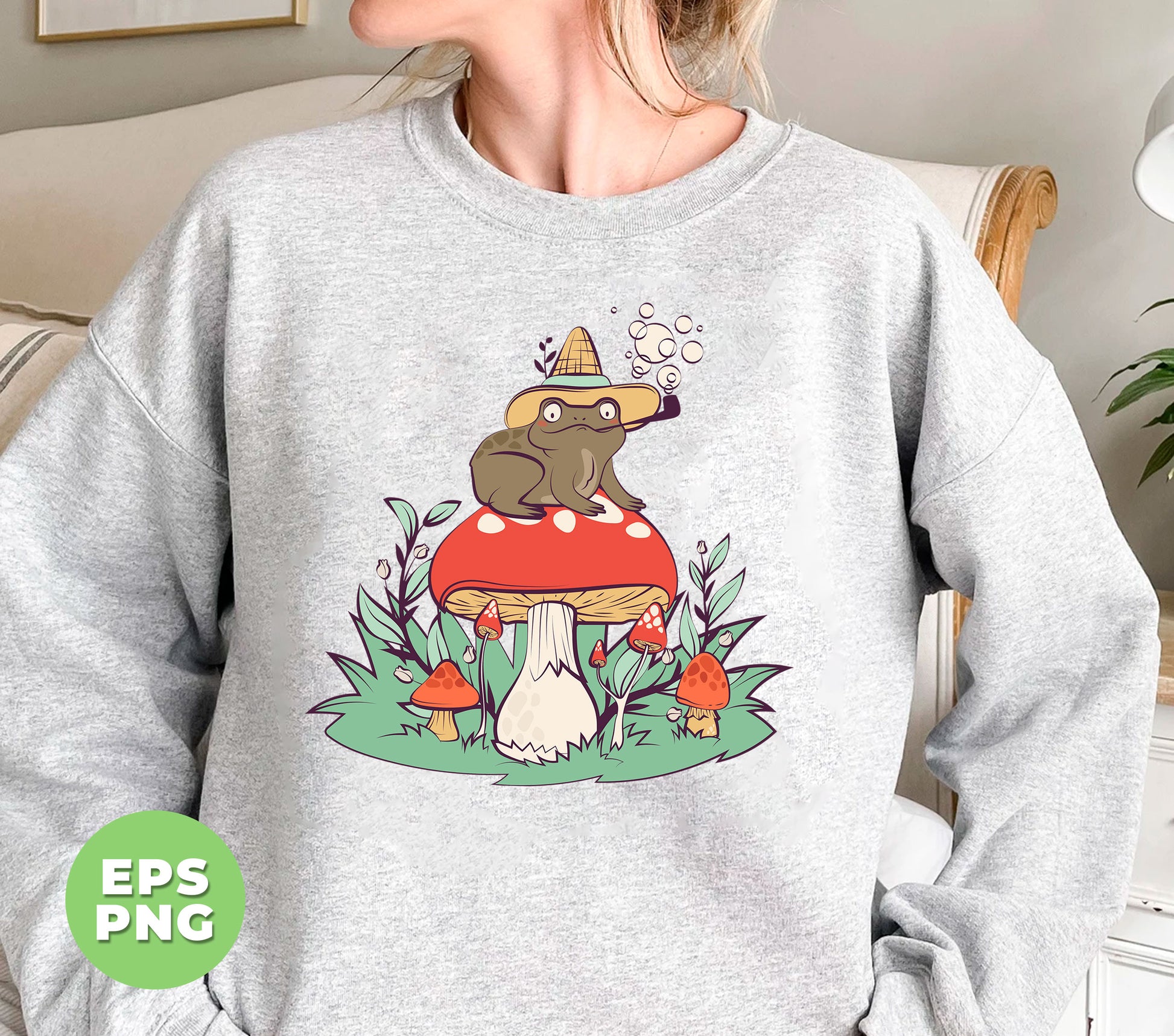 Frog Sit On Mushroom, Man I Love Frog, MILF, Froggy, Digital Files, Png Sublimation