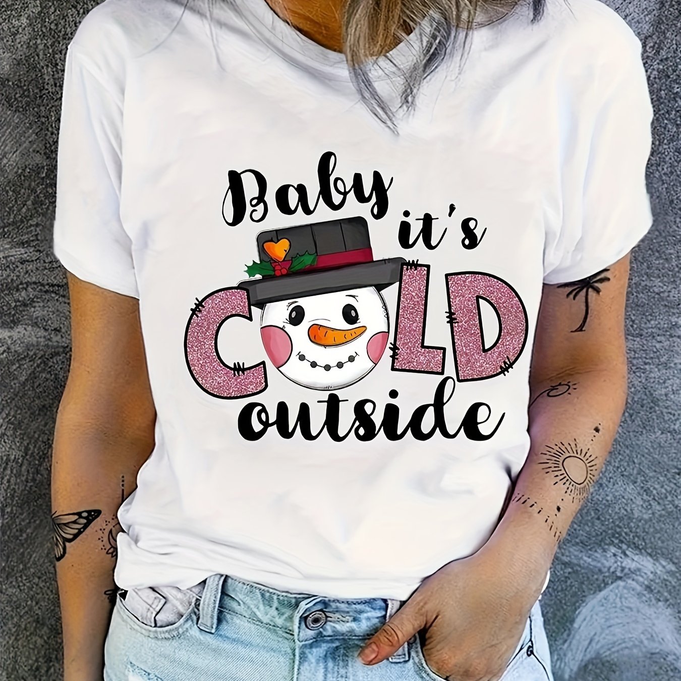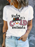 Frosty Delight: Snowman Letter Print T-Shirt – A Casual and Stylish Addition to Women's Clothing