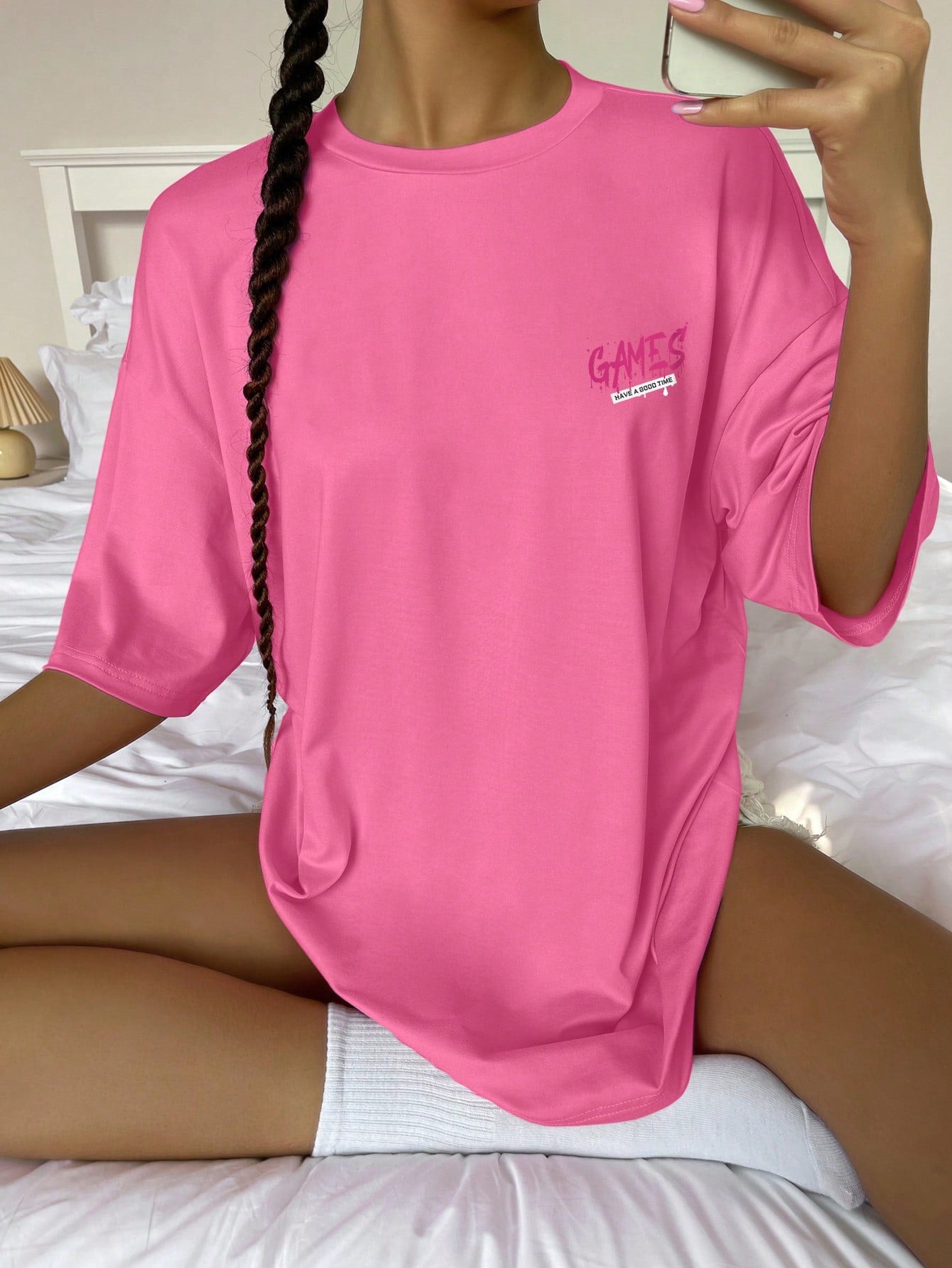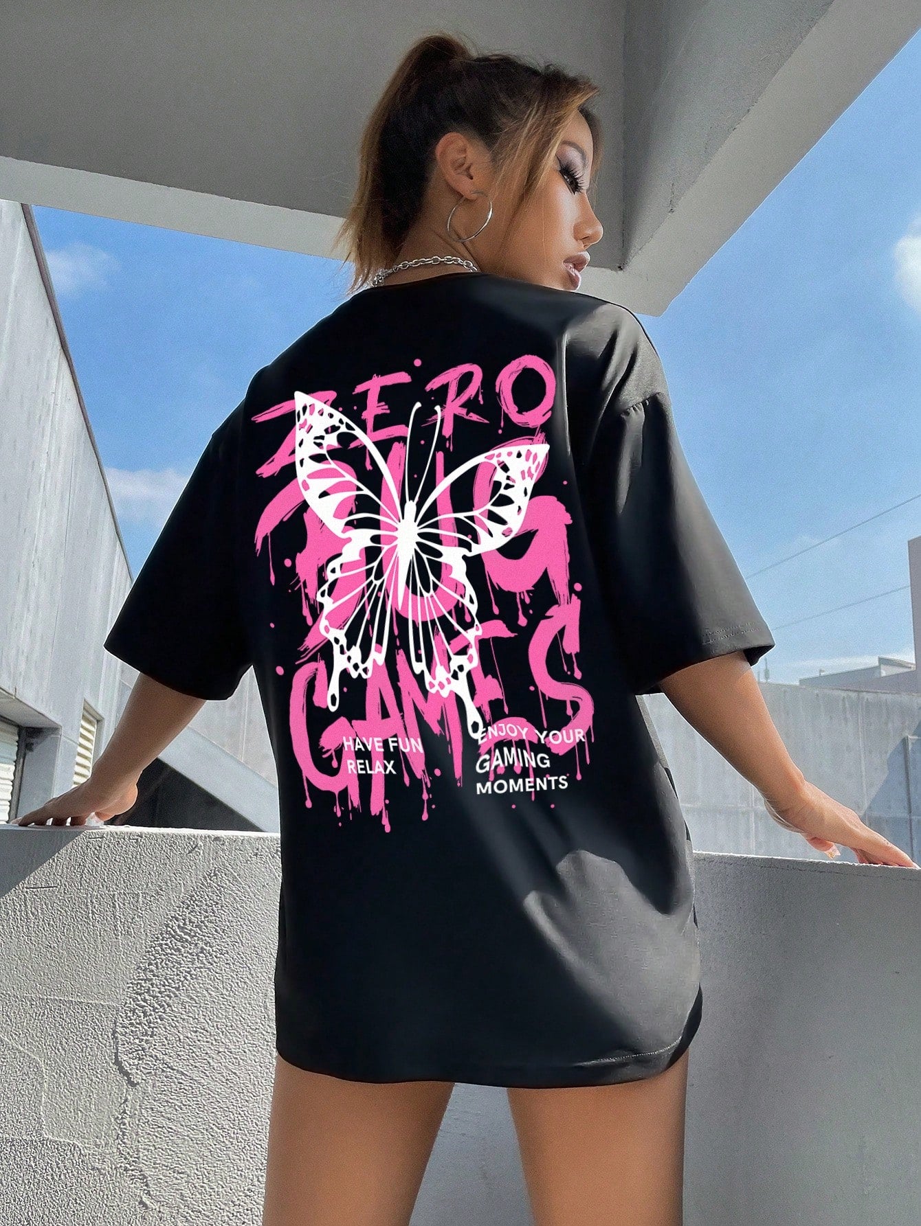 Fun & Relaxation: Butterfly Slogan Graphic Drop Shoulder Tee