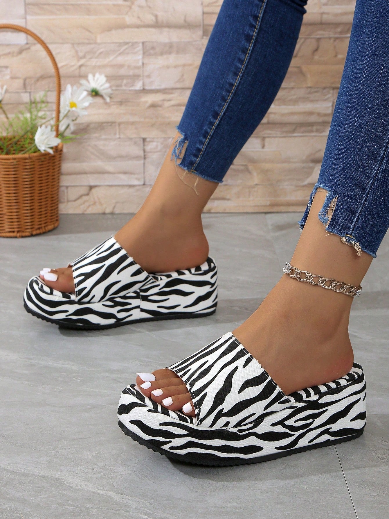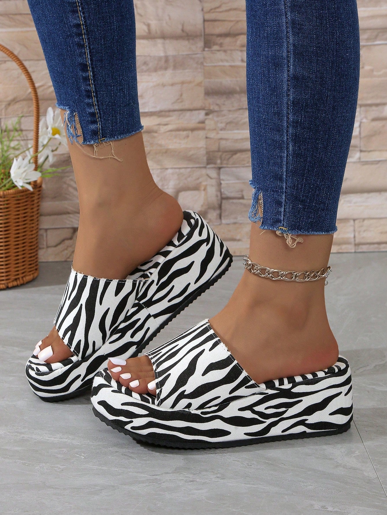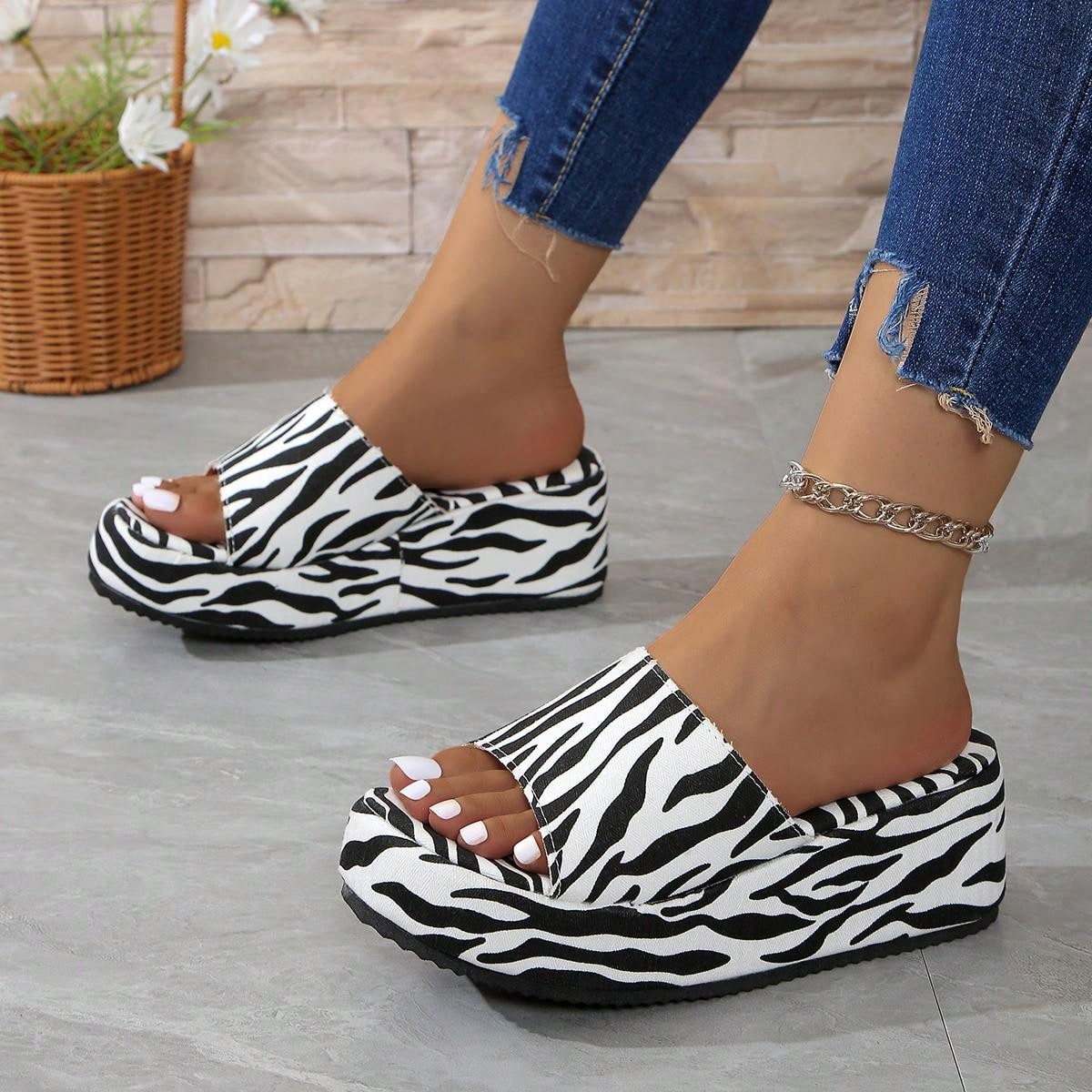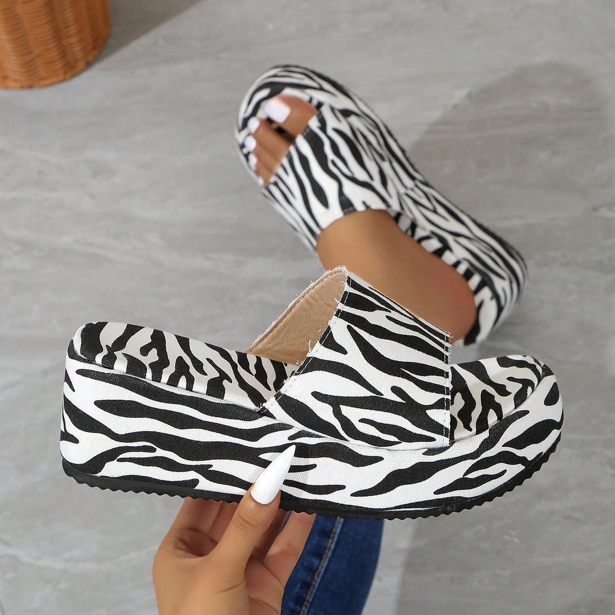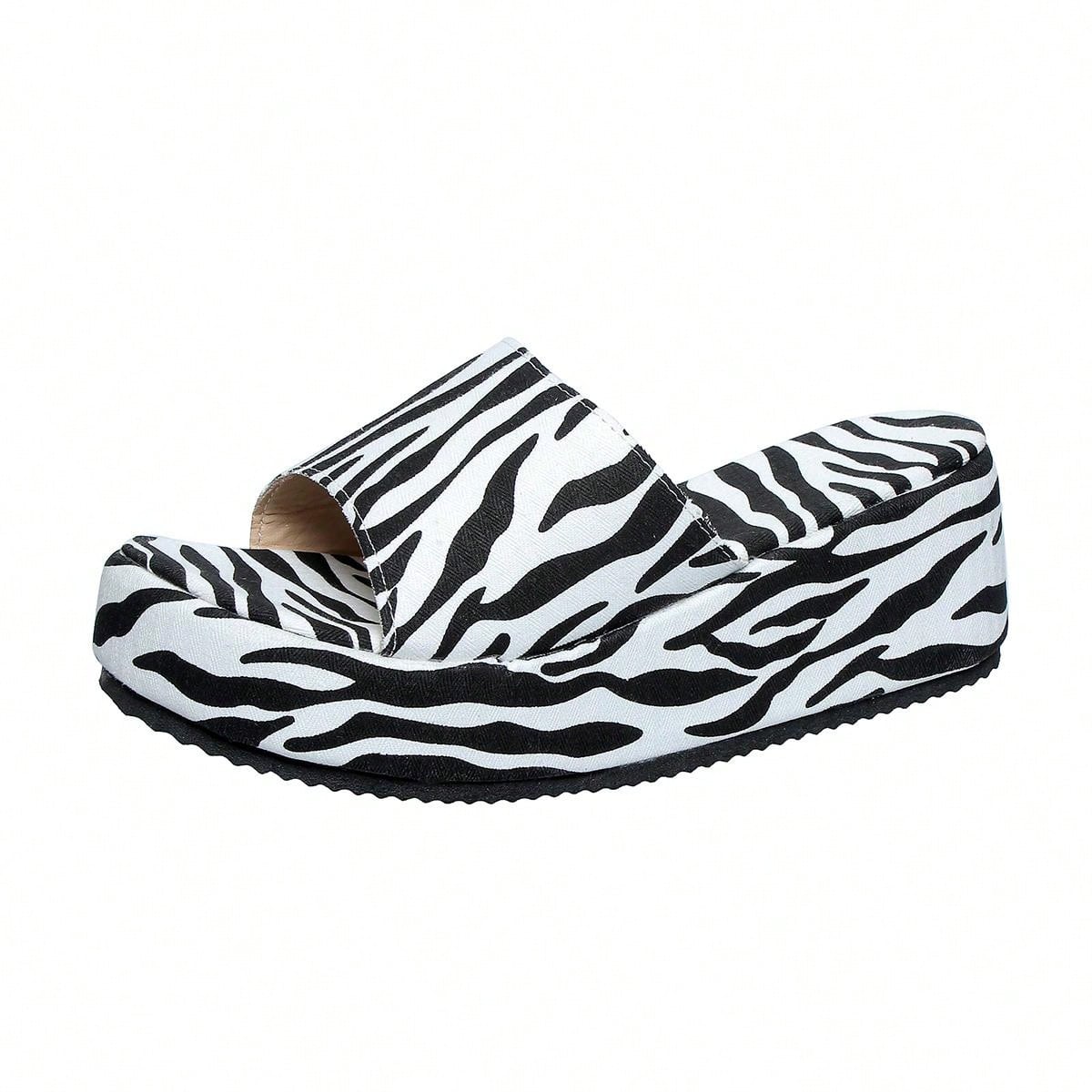 Funky Zebra Print Platform Wedge Slippers: A Stylish Addition to Your Shoe Collection