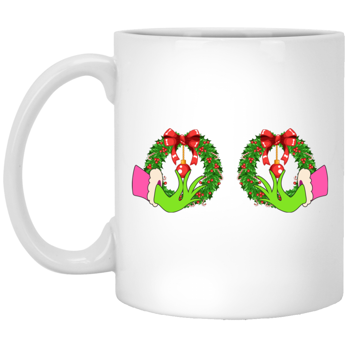 Funny Christmas, Grinch's Hands On The Boobs, Merry Titsmas, Merry Christmas, Trendy Chrismas White Mug