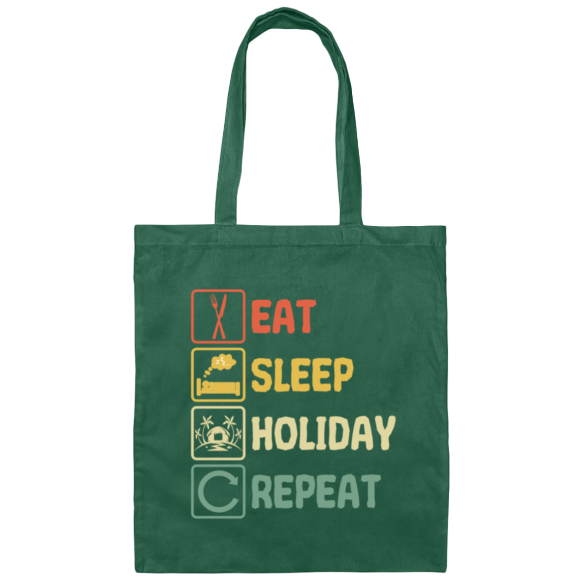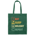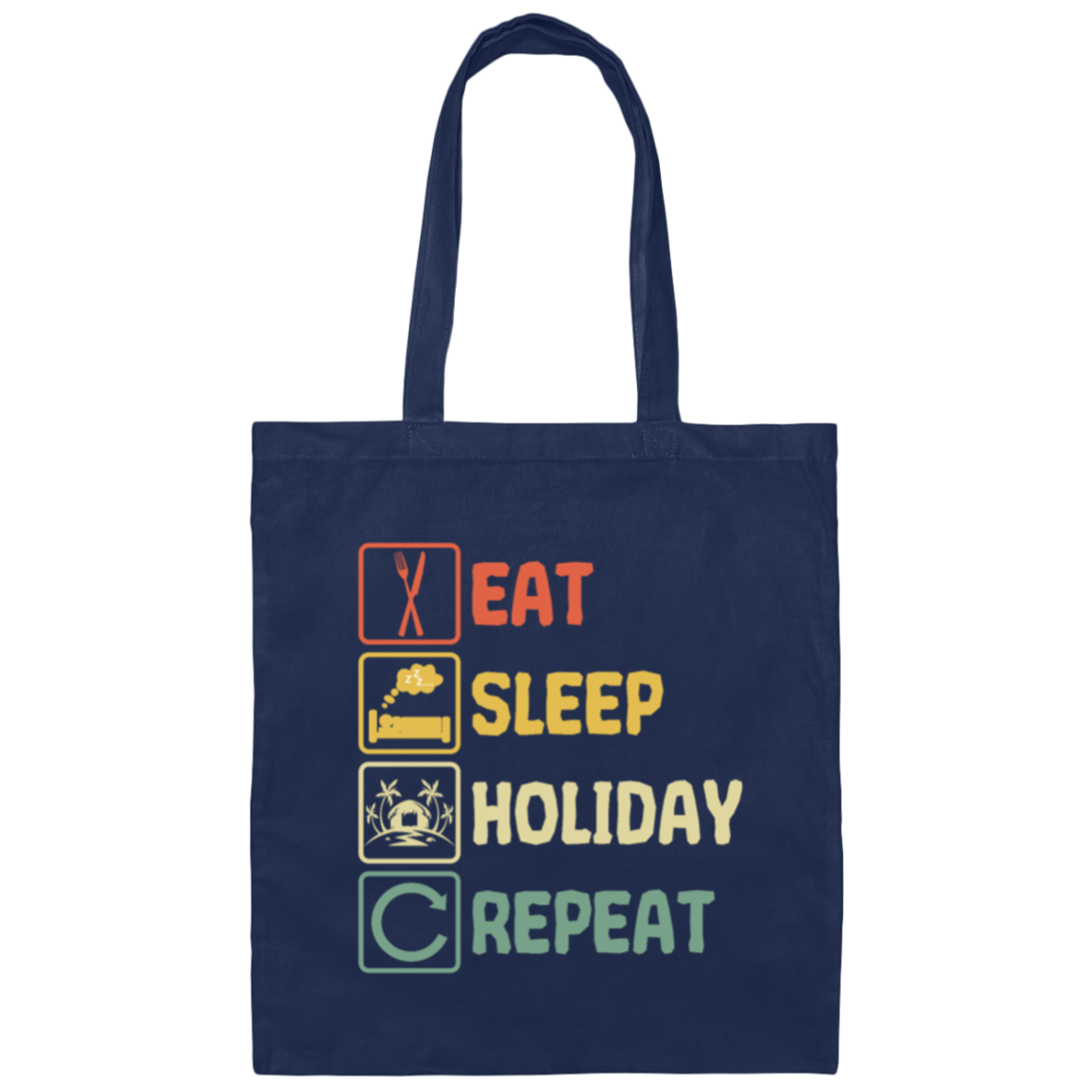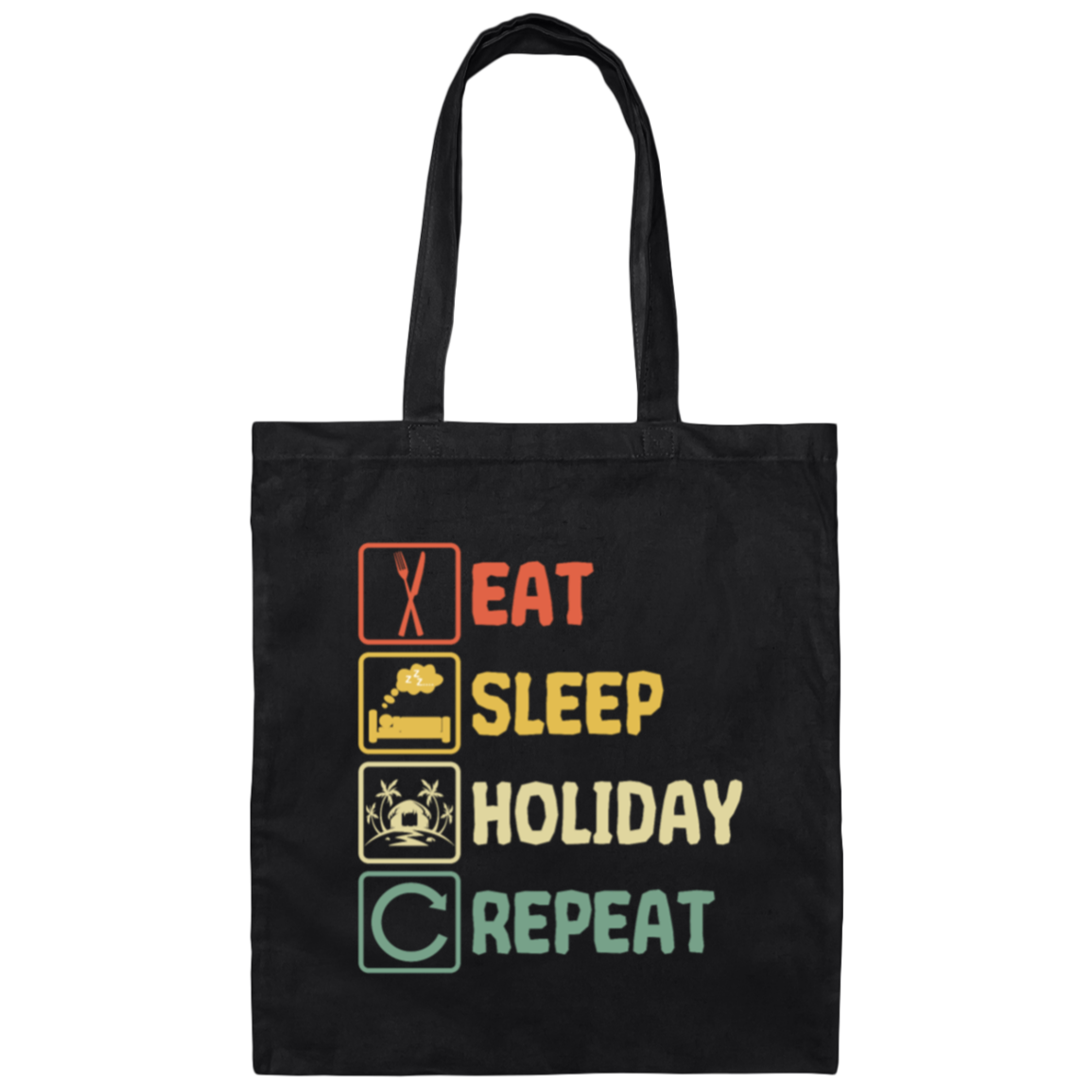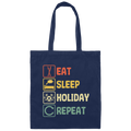 Funny Holiday Travel Eat Sleep Repeat Retro Style Canvas Tote Bag