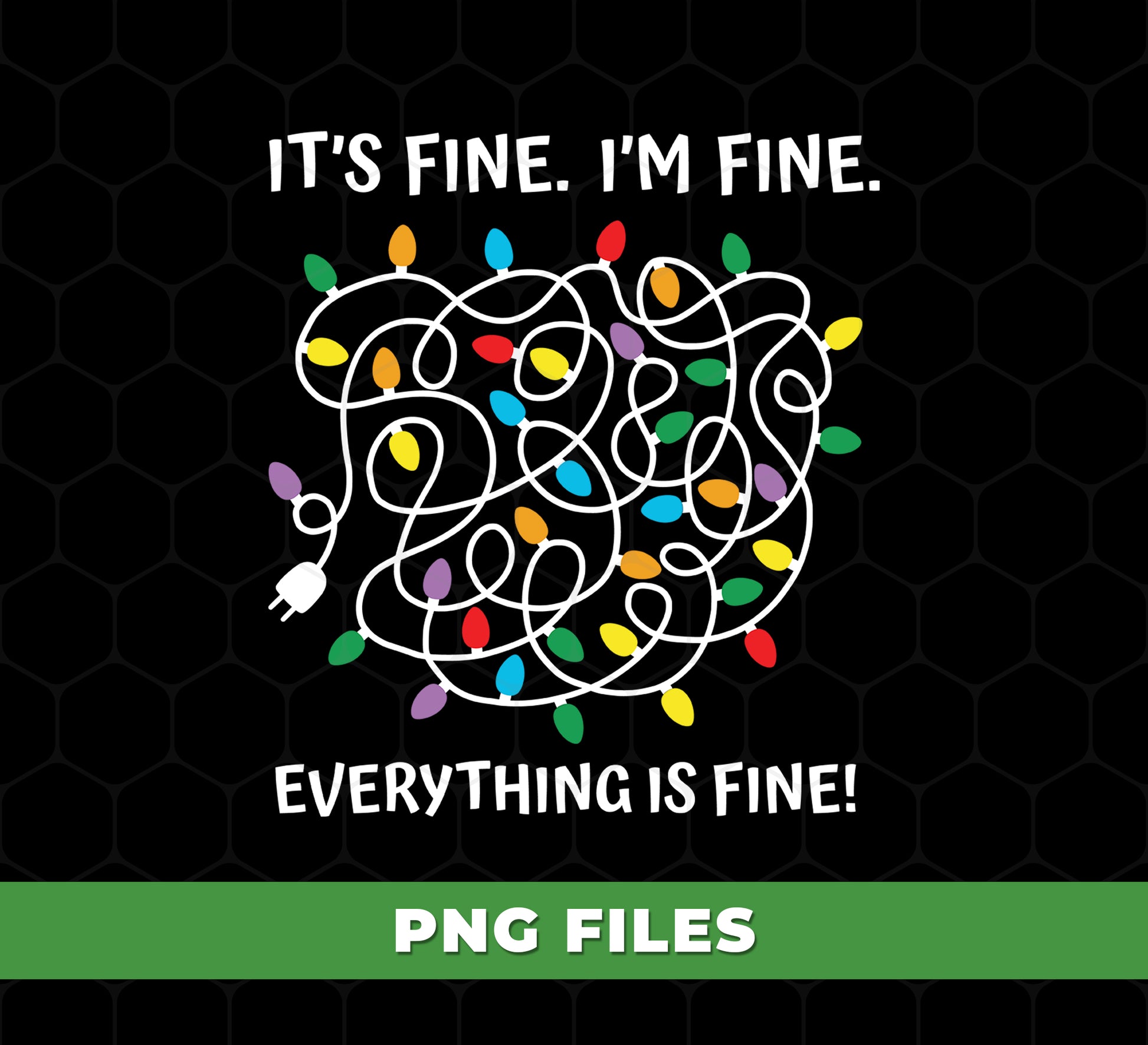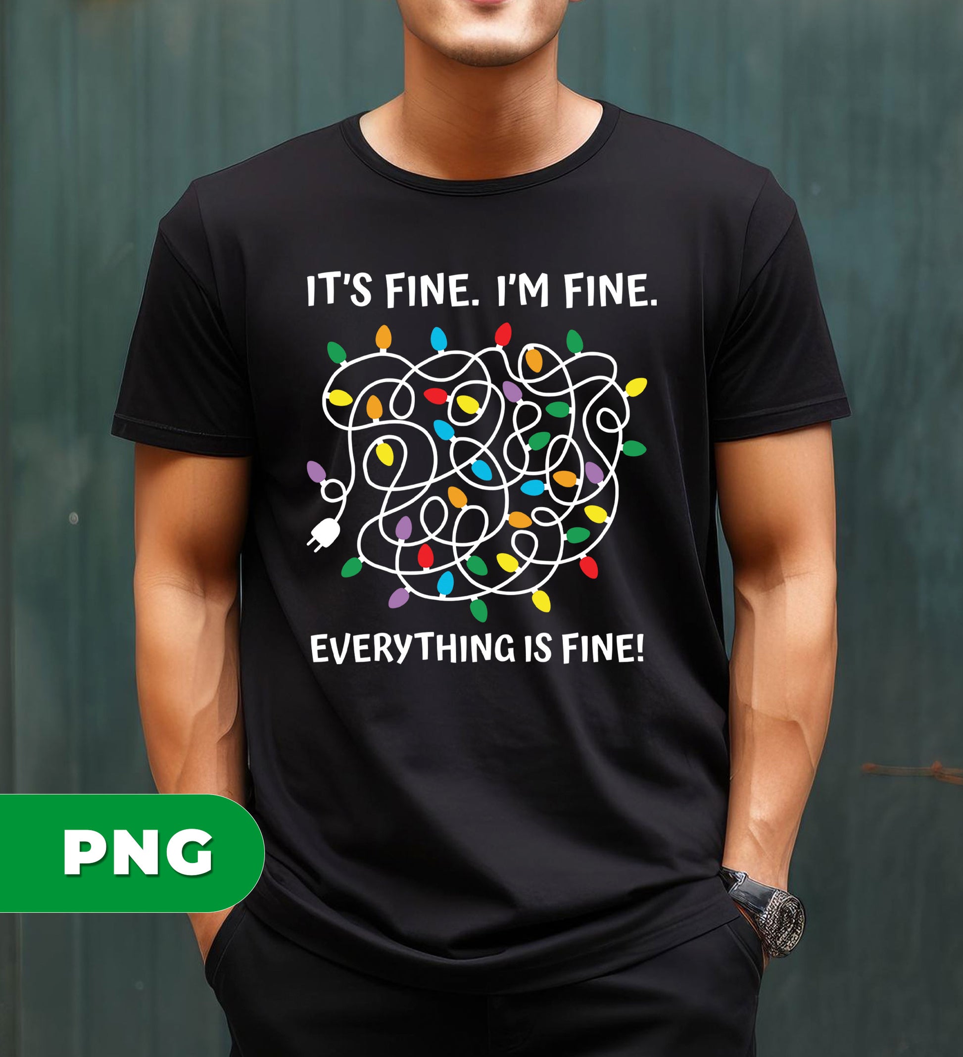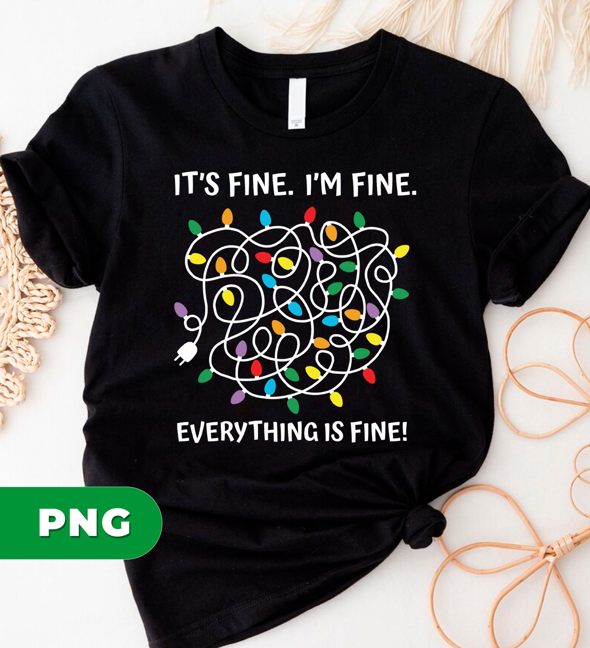 Funny Tangled Lights PNG, Holiday Humor Digital Art, Christmas Chaos Clipart, Messy String Lights Design, It_s Fine I_m Fine Quote