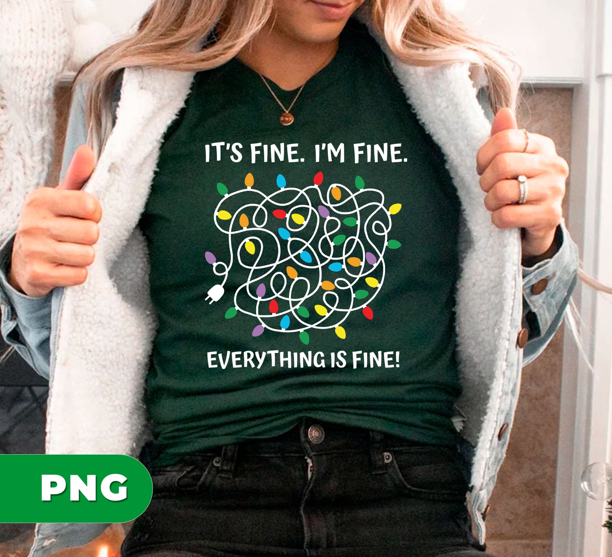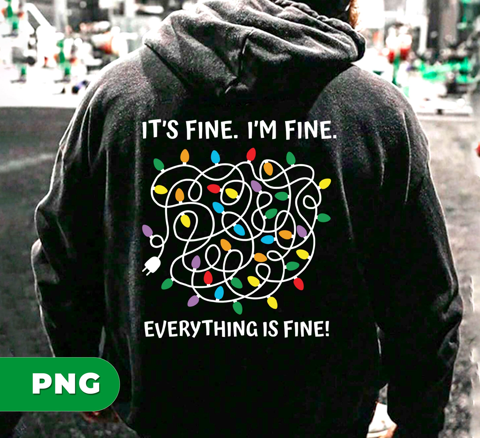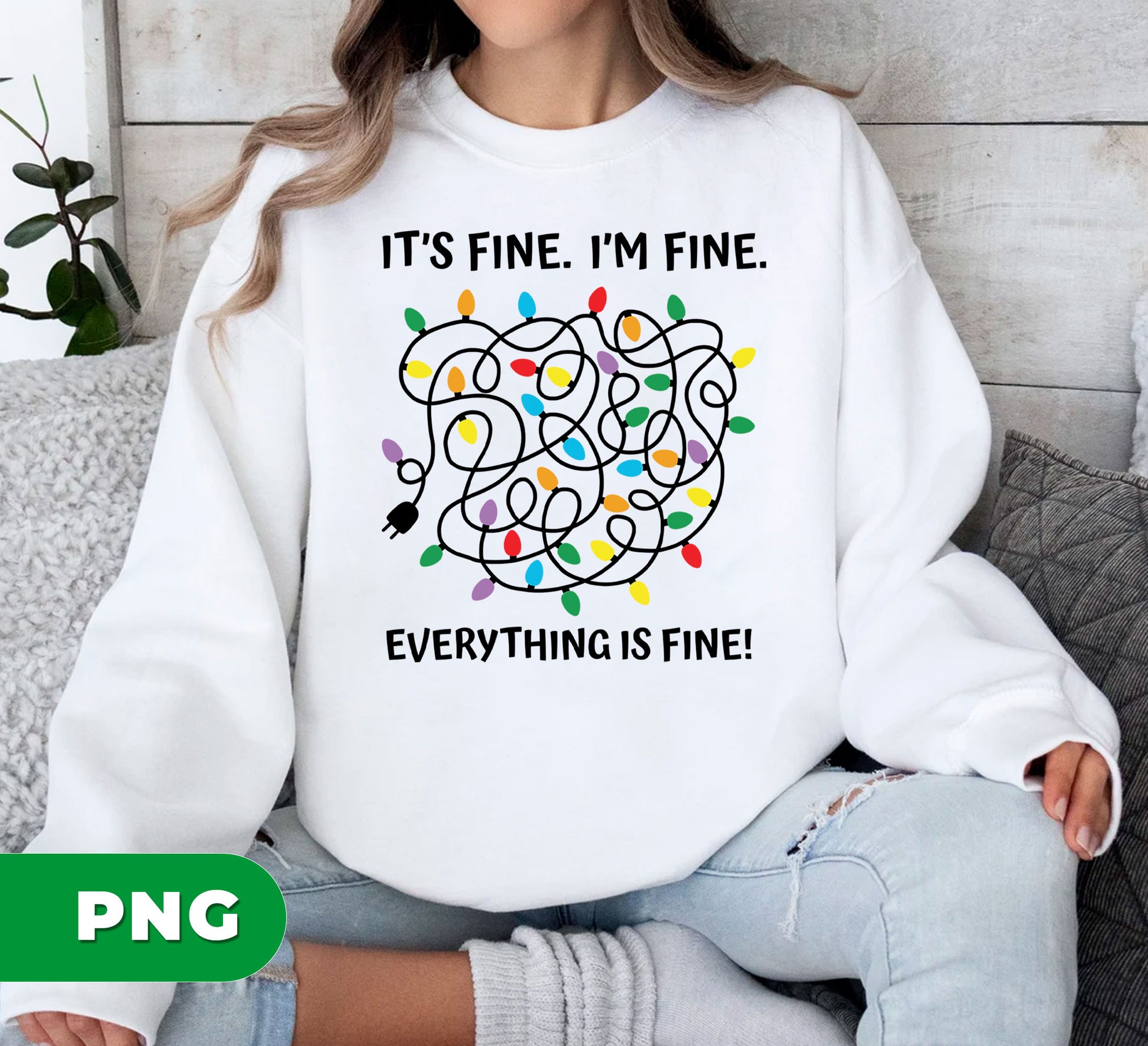 Funny Tangled Lights PNG, Holiday Humor Digital Art, Christmas Chaos Clipart, Messy String Lights Design, It_s Fine I_m Fine Quote