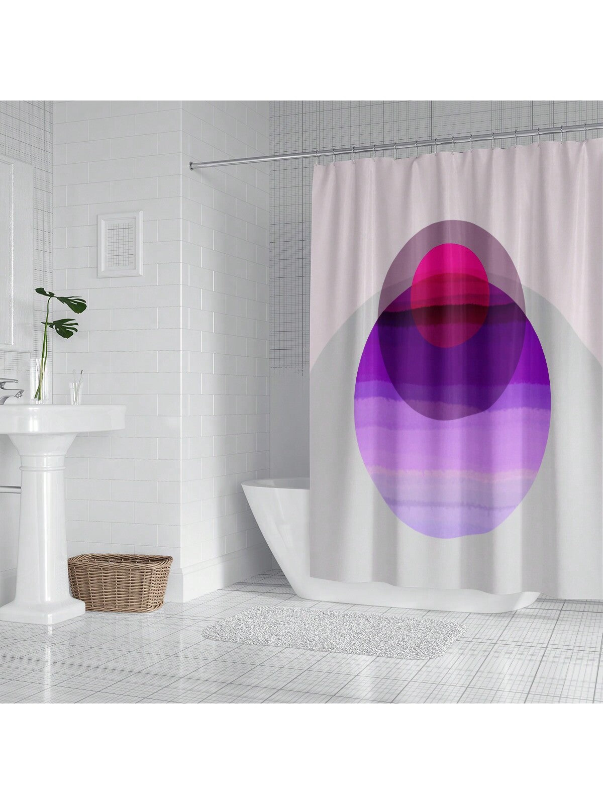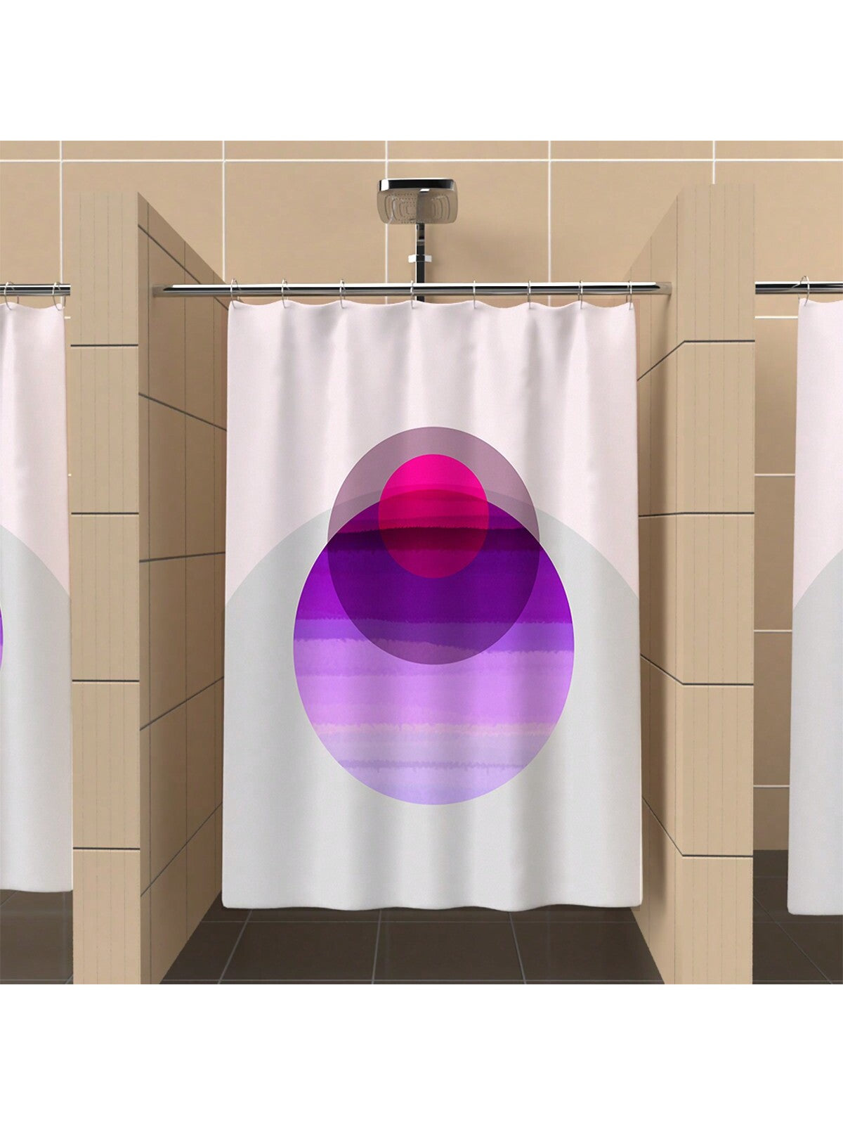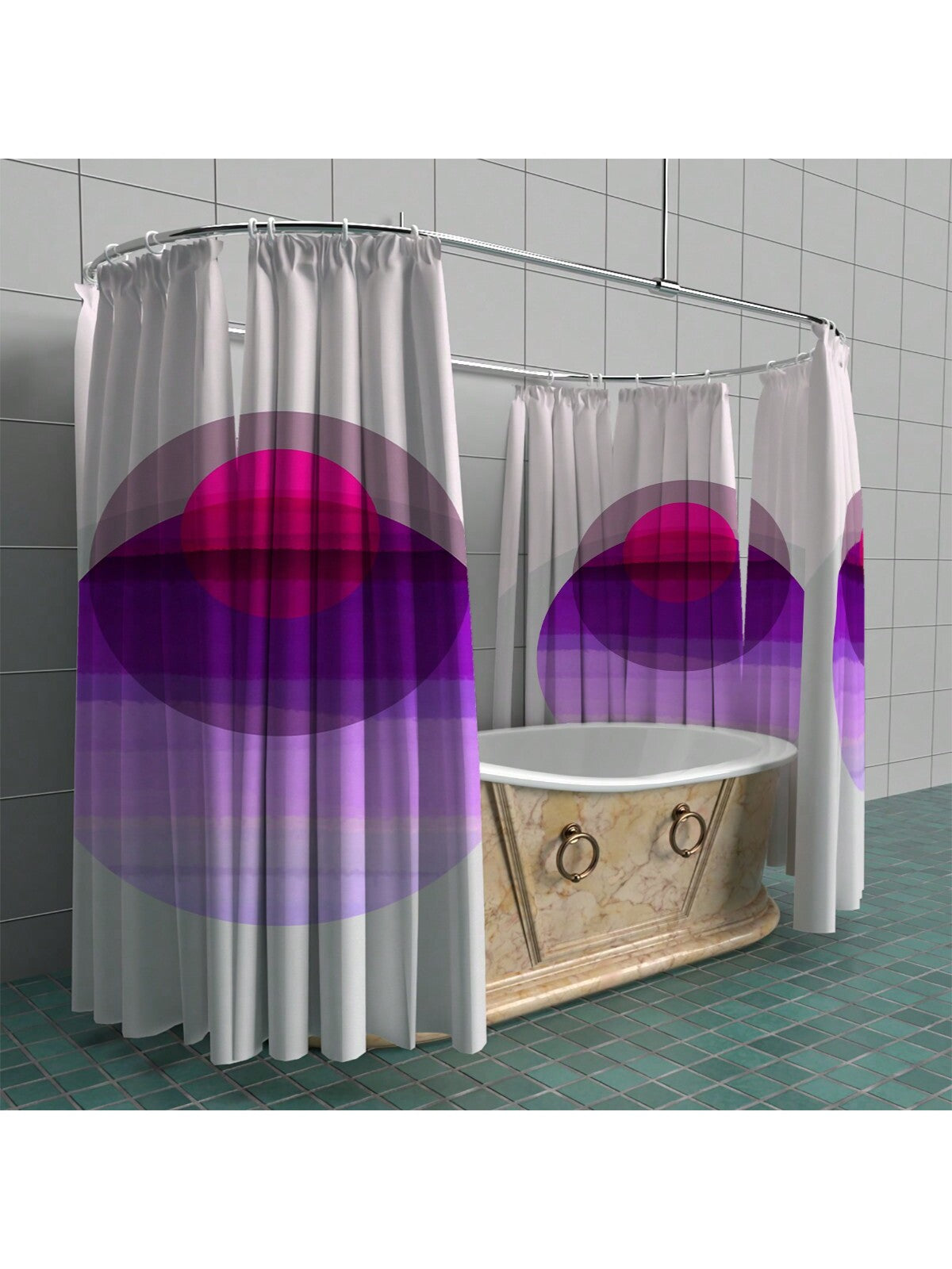 Geometric Circular Overlapping Pattern Waterproof Shower Curtain with Hooks - White & Purple