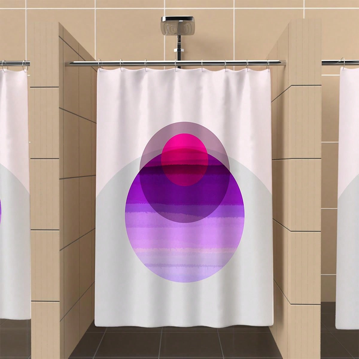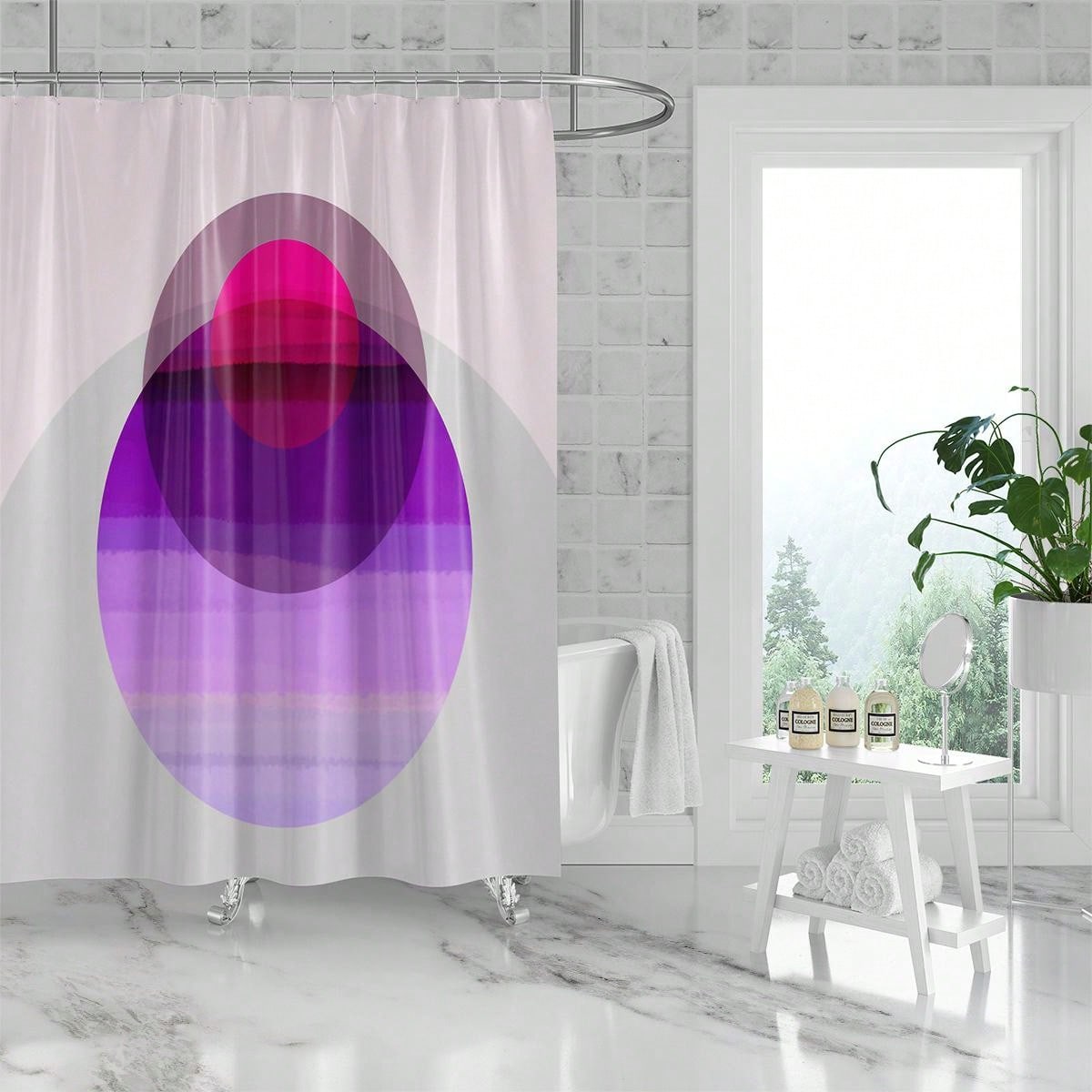 This geometric shower curtain features a circular overlapping pattern in a stylish white and purple color. Not only does it add a touch of modern design to your bathroom, but it is also waterproof to protect your floors and comes with hooks for easy installation. Enjoy a cleaner, more stylish shower experience.