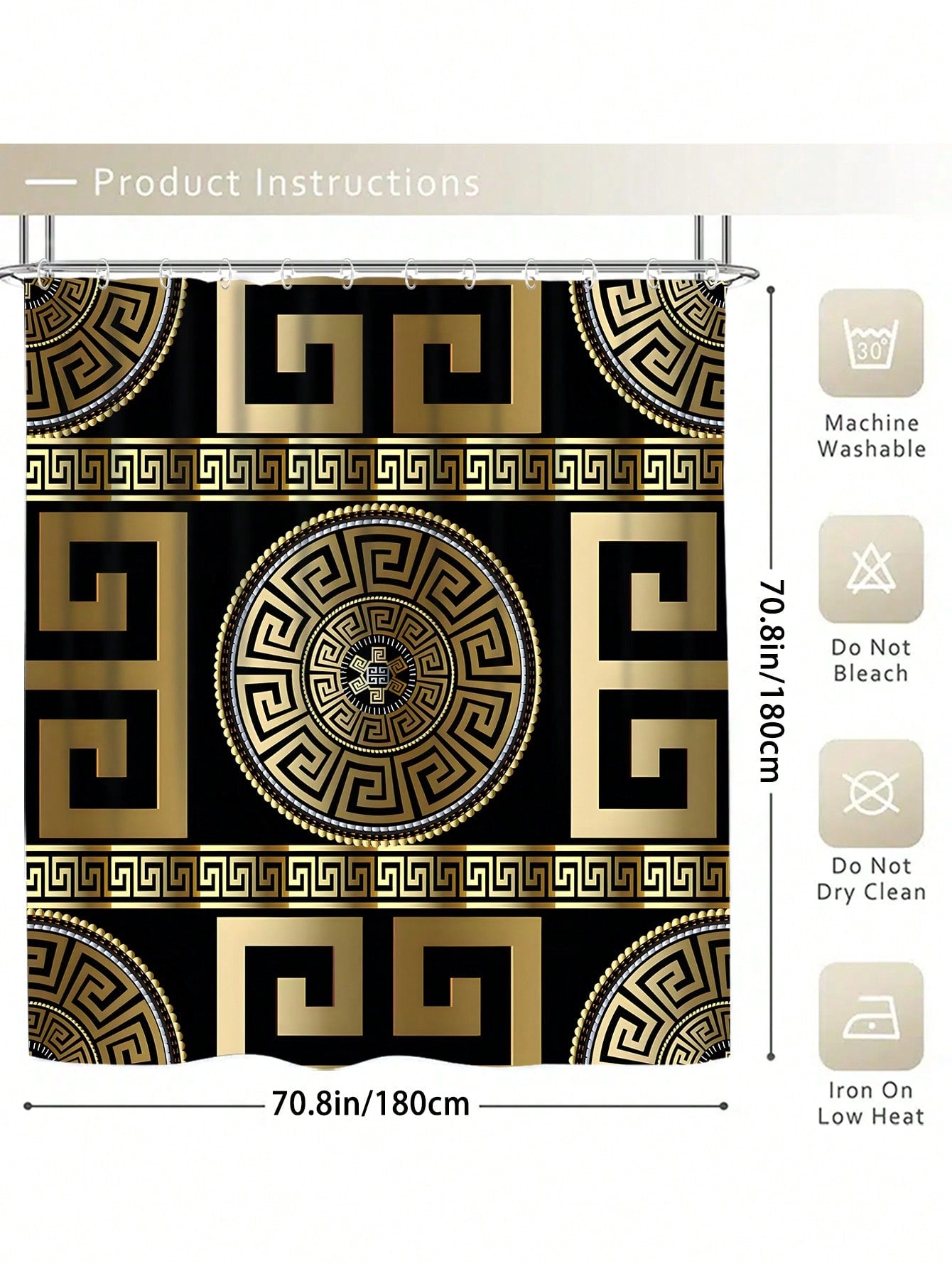 Geometric Pattern Printed Bathroom Set: Waterproof Shower Curtain with 12 Hooks
