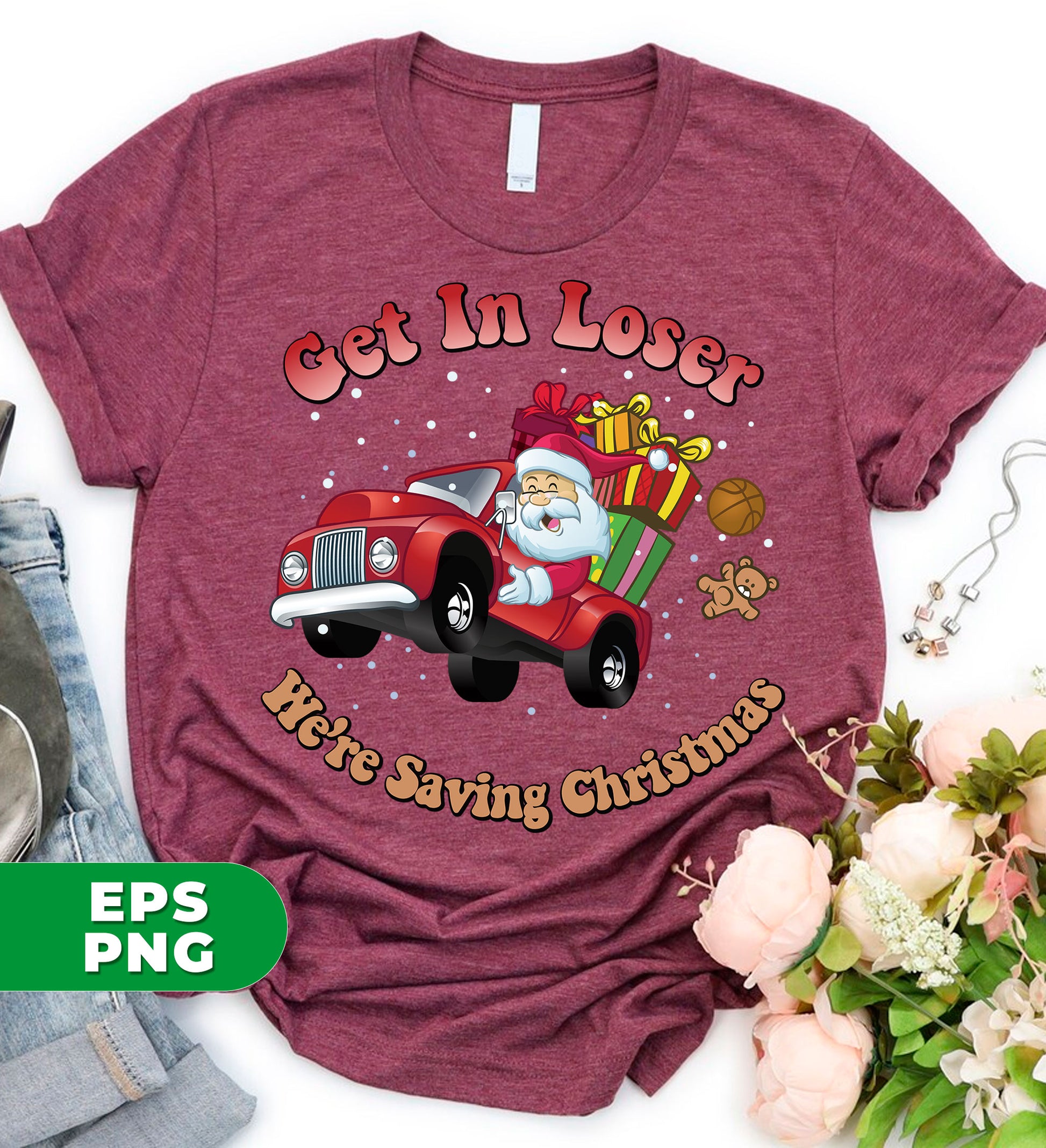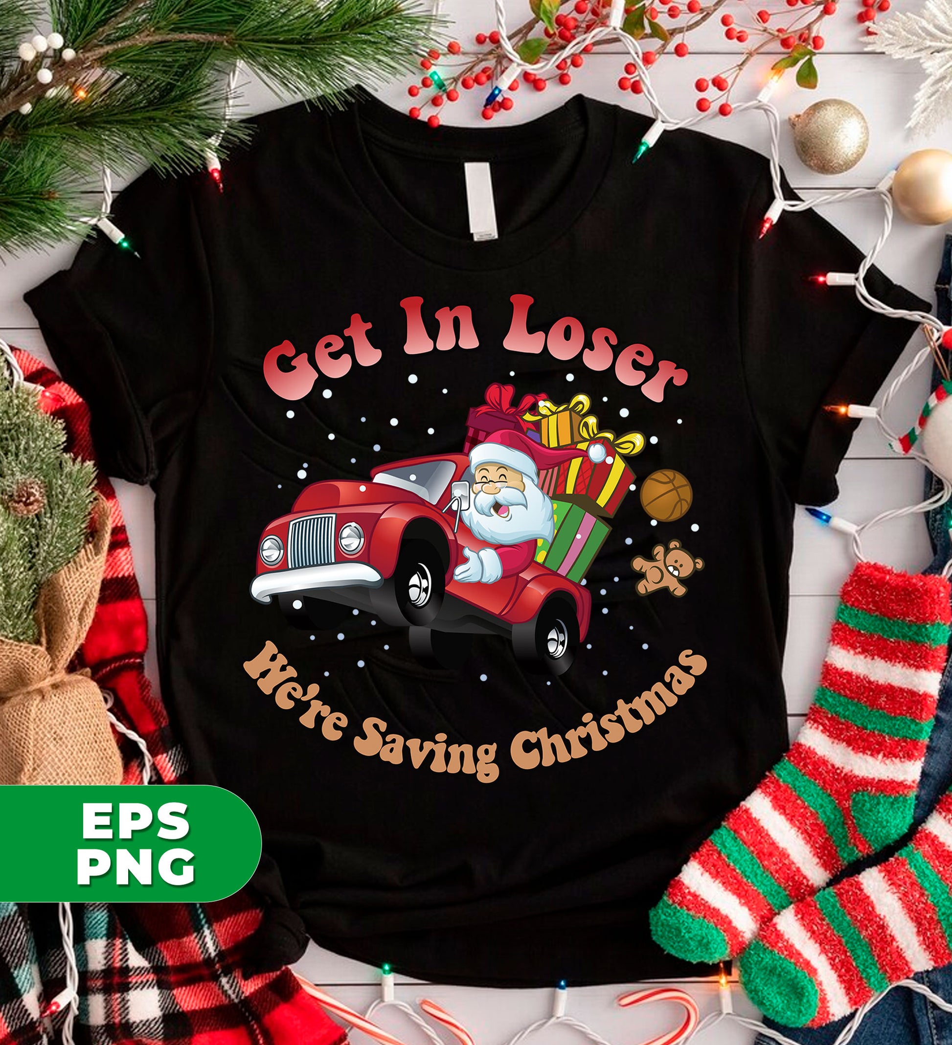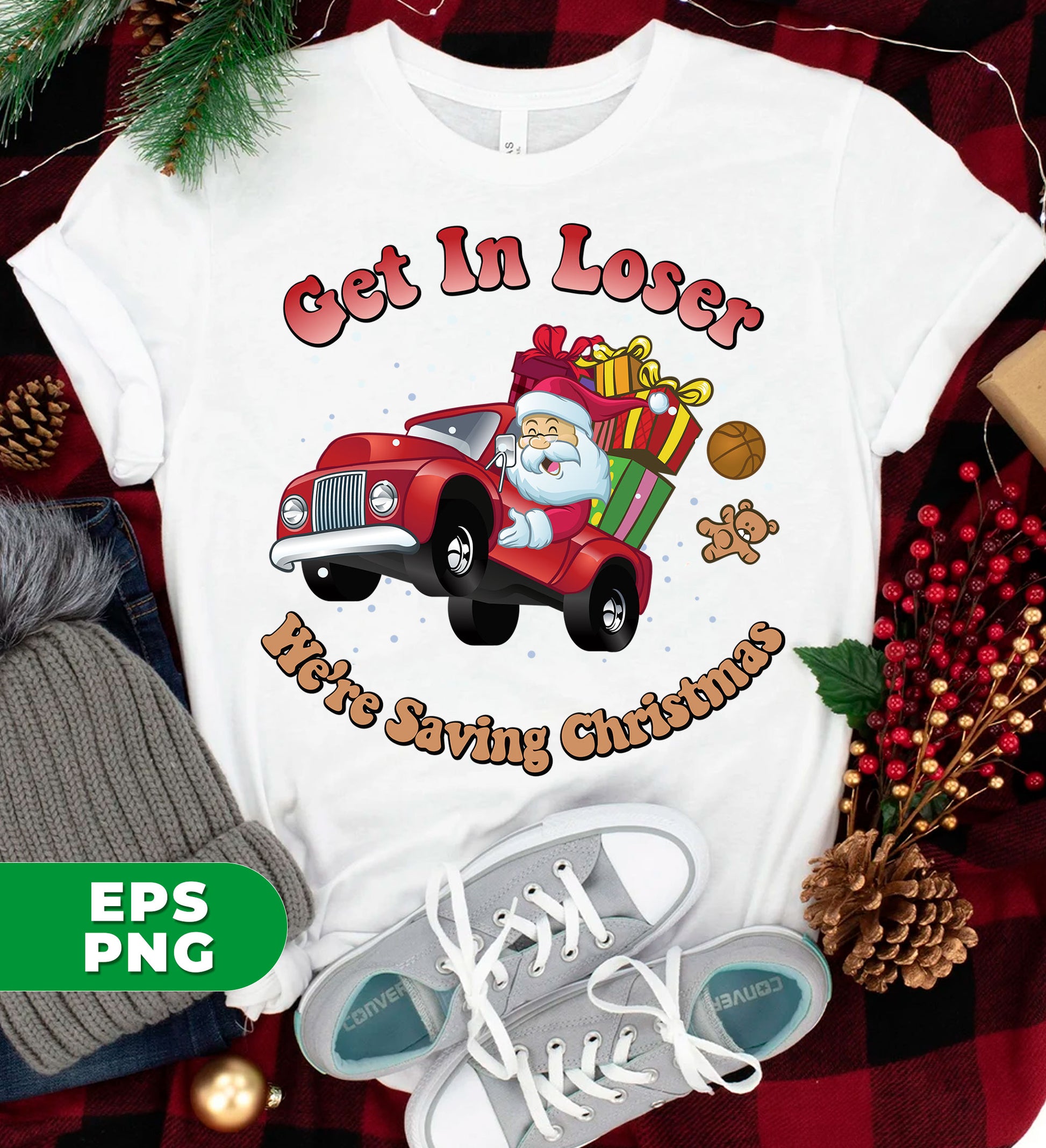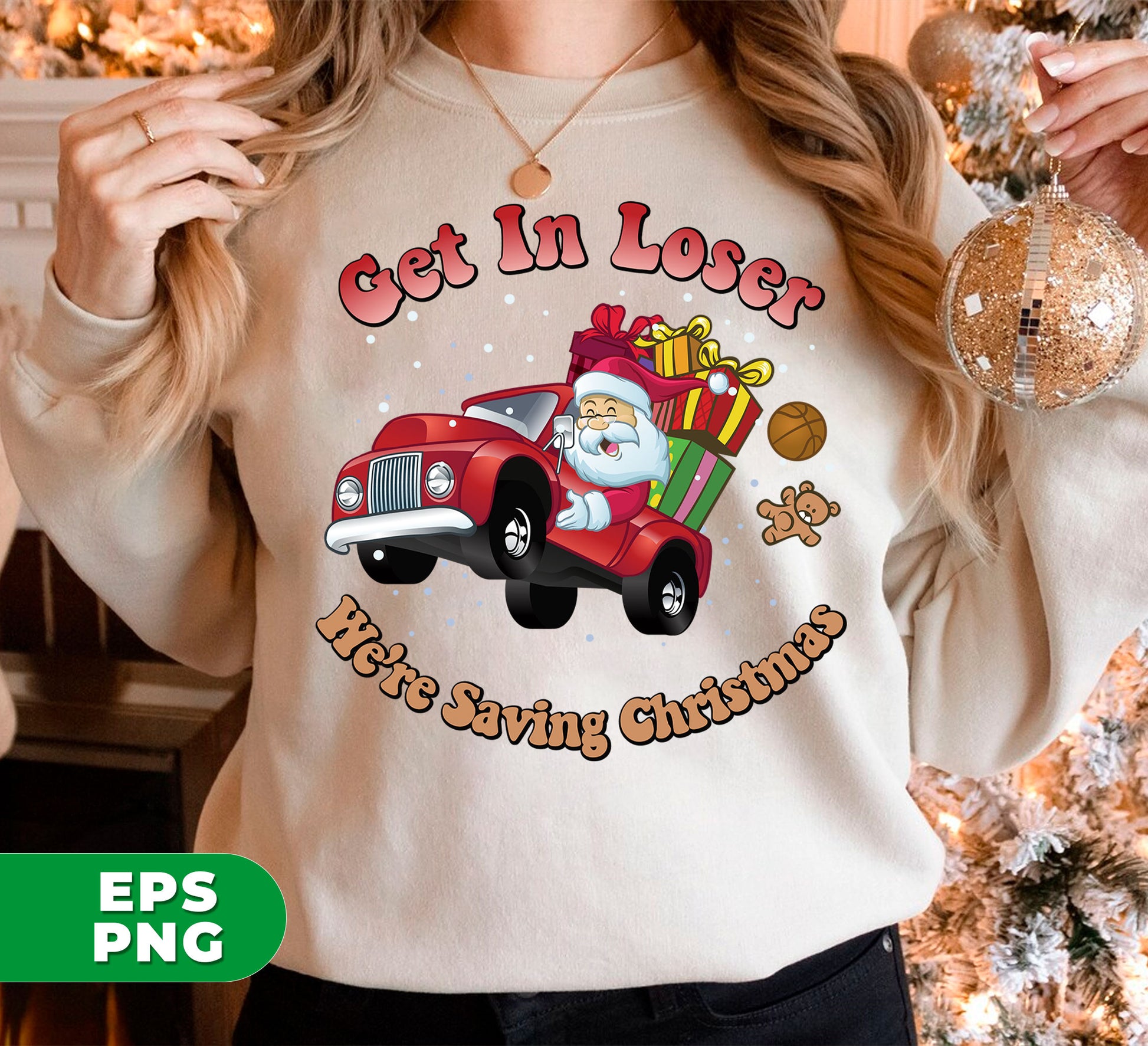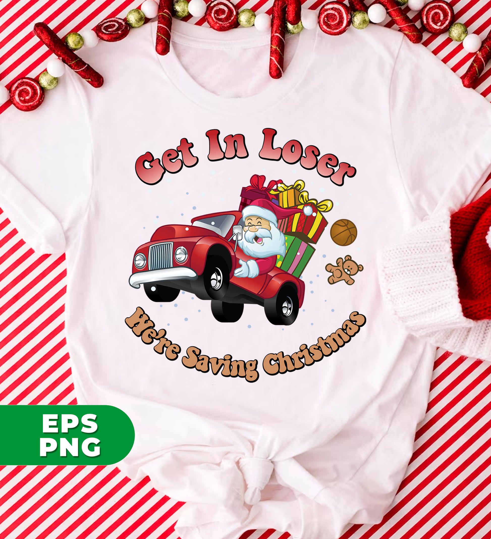 Get In Loser, We're Saving Christmas, Santa Drive Red Car, Digital Files, Png Sublimation