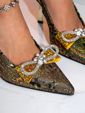 Glamorous Gold Electroplated Stiletto Heels with Snake Skin Design - Perfect for Evening Banquets!