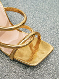 Glamorous Gold Heeled Sandals: Metallic Lizard Embossed Twist-Strap Mule Sandals for Women