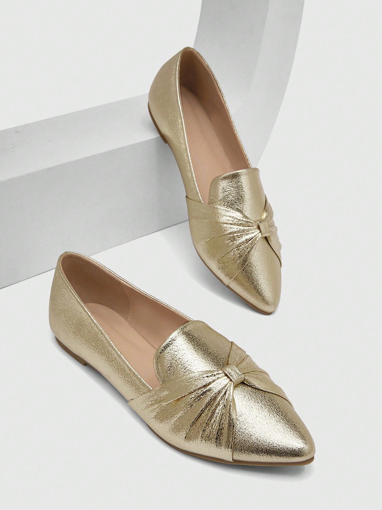 Elevate your summer style game with our Glamorous Gold Knot-Decorated Pointed Toe Flat Loafers. These chic and versatile shoes feature a stylish knot decoration and pointed toe design, adding a touch of sophistication to any outfit. Made from high-quality materials, they provide both comfort and fashion for a flawless summer look.