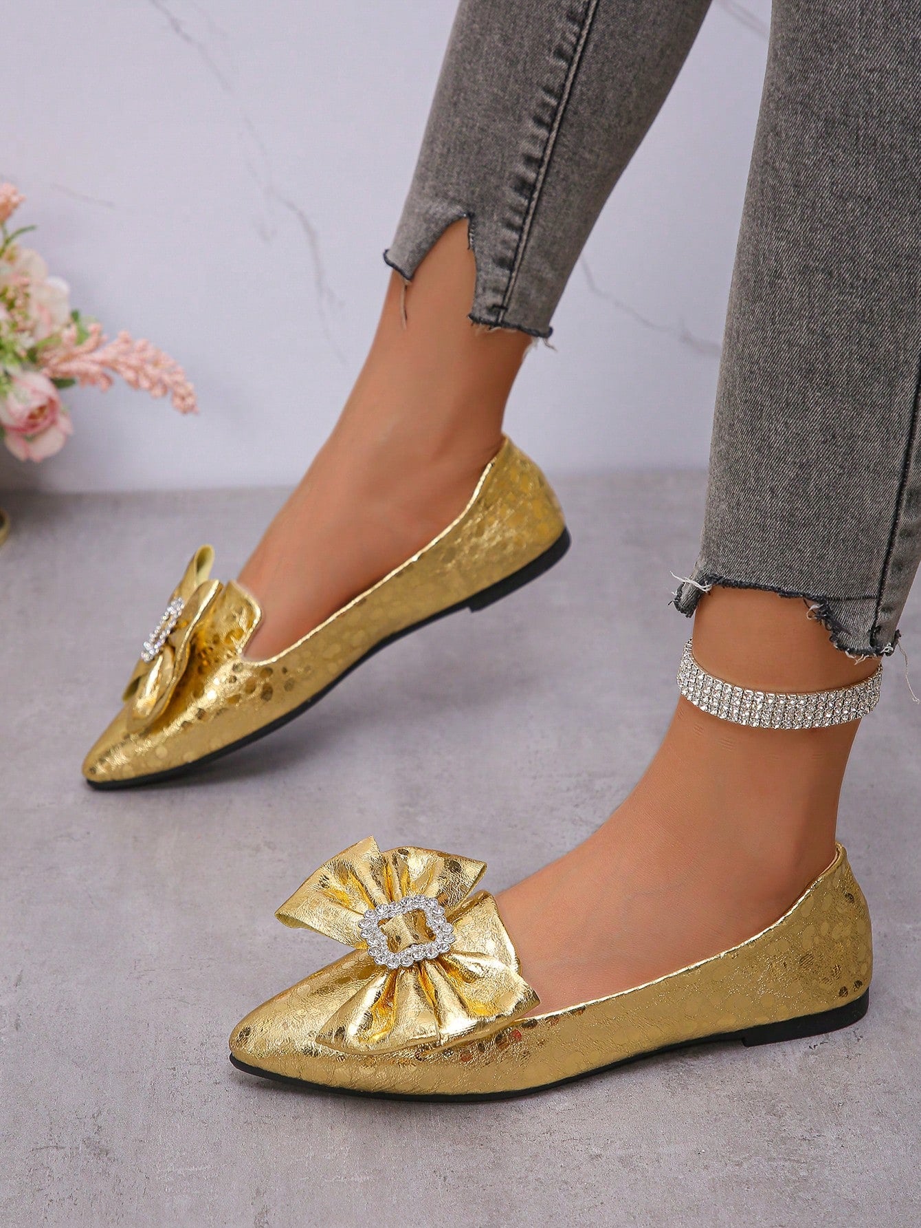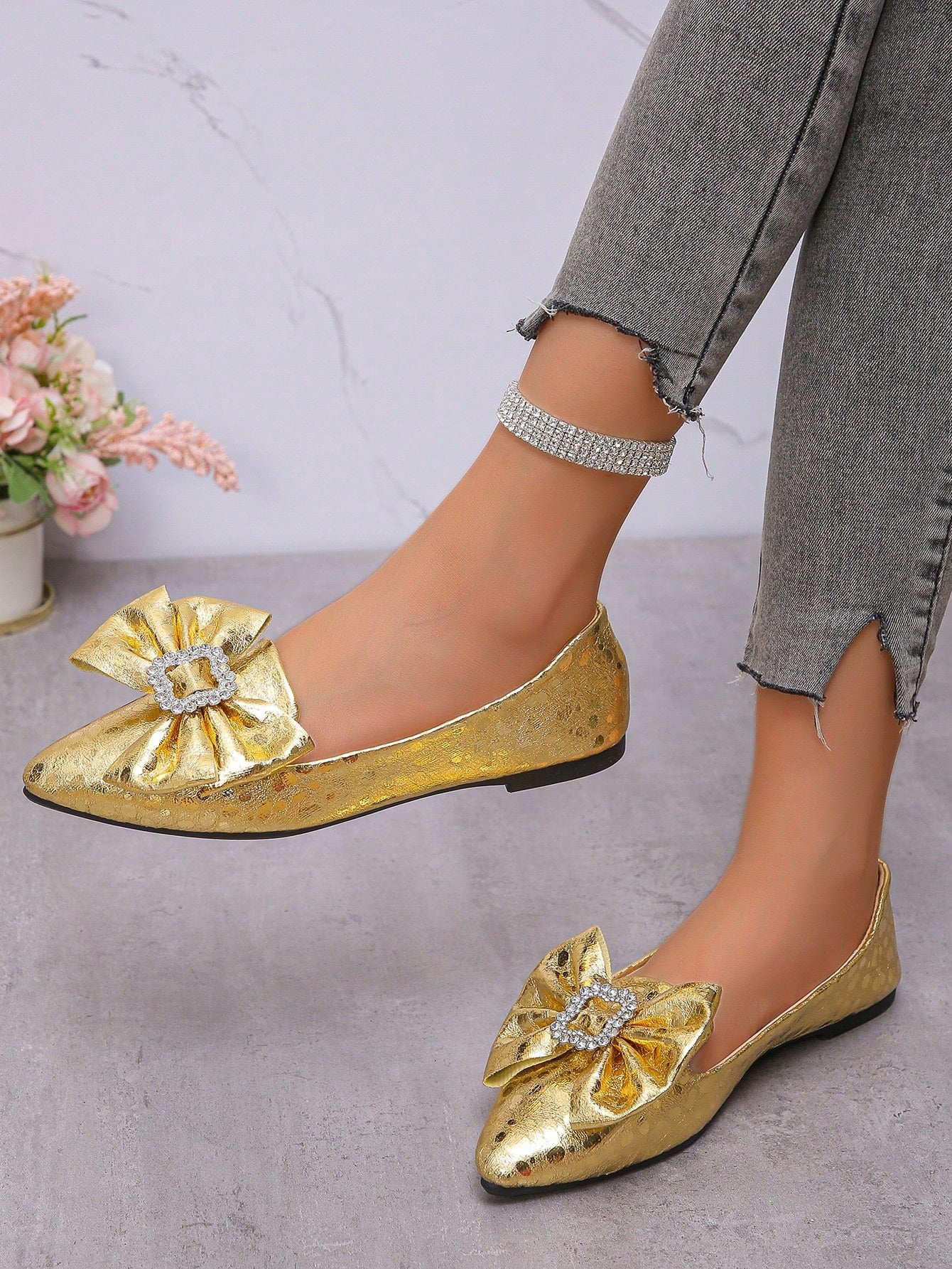 Glamorous Rhinestone Bow Knot Flats: Perfect for Party and Formal Events