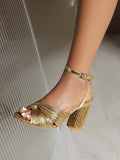 Glamorous Summer: Women's Metallic Twist-Decor Sculptural Heeled Ankle Strap Sandals